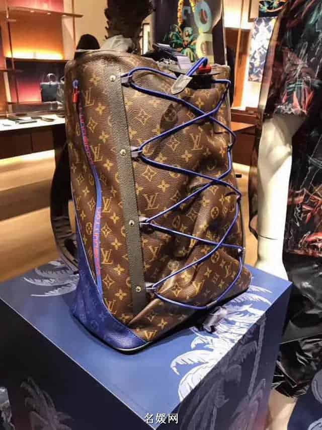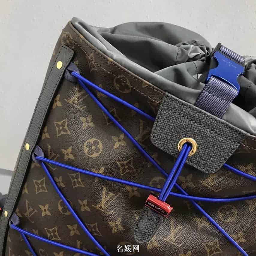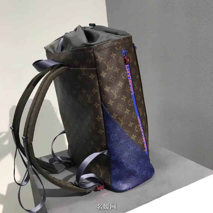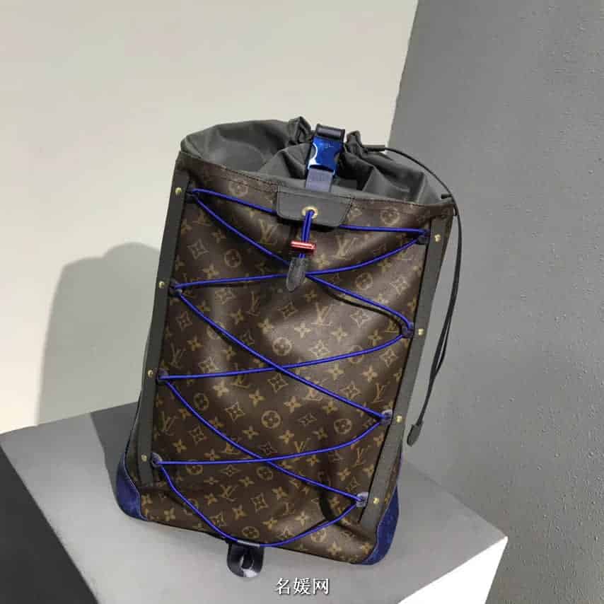 亮相2018春夏时装秀的Backpack Outdoor双肩包,涂层帆布搭配编织带、防水拉链、抽绳与金属饰件,展现运动风范。为热带户外探险装备注入路易威登的时尚气质,个性十足的包袋新品。