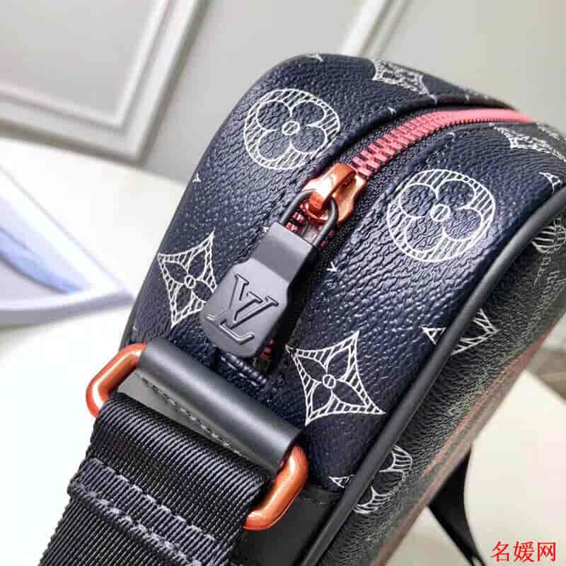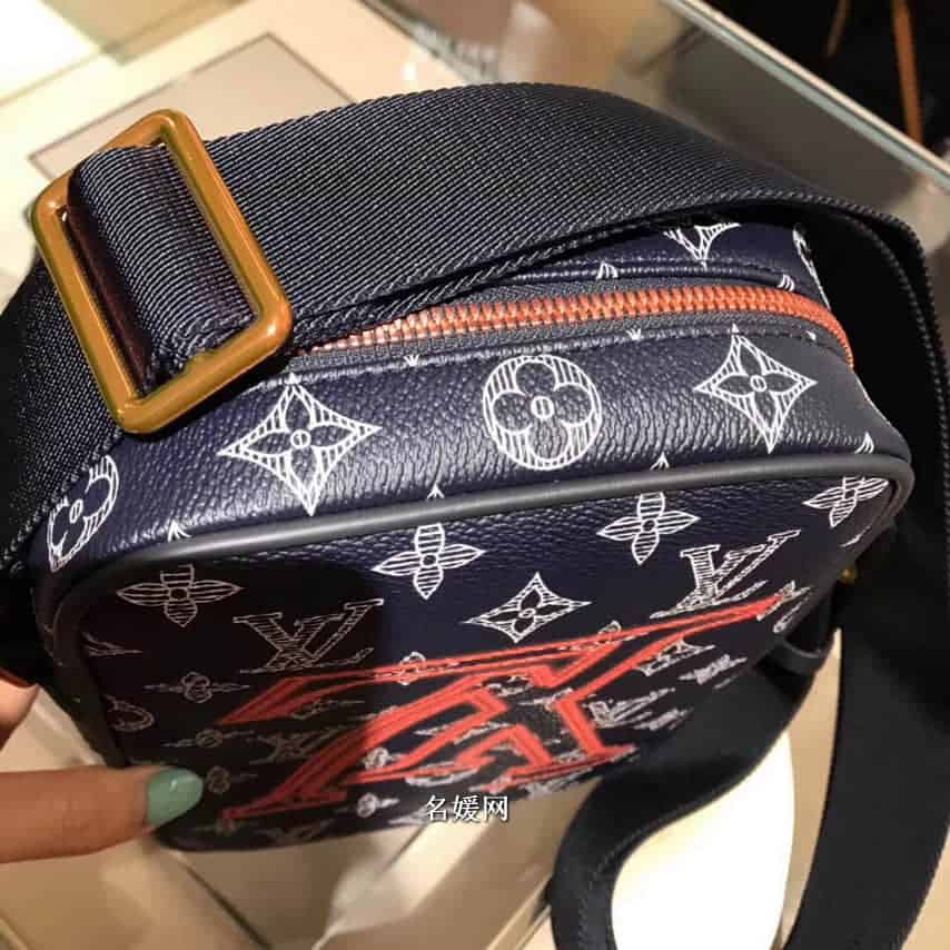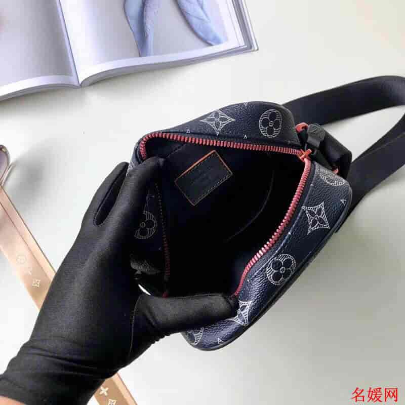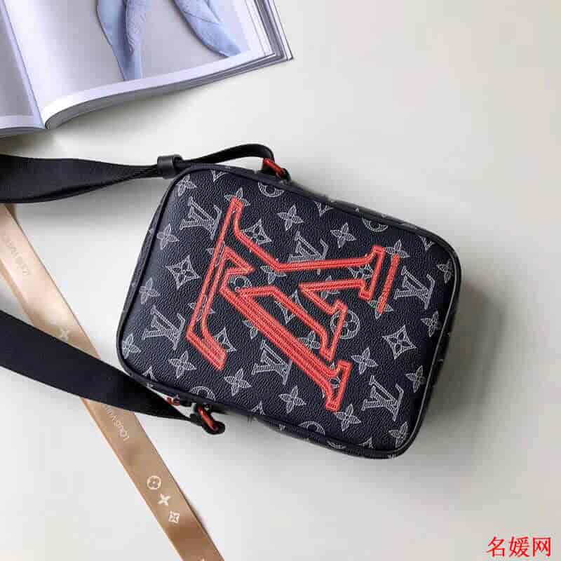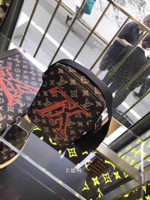 上下颠倒的LV Initials标识为2018秋季季前展示系列男装设计的特色元素。此款Danube小号都市手袋由Monogram Ink帆布裁制而成,出自男装艺术总监Kim Jones之手的亮粉logo引人注目。外形小巧而容量充盈,足可存放私人必备物品,可调节包带便于肩背或斜挎。
