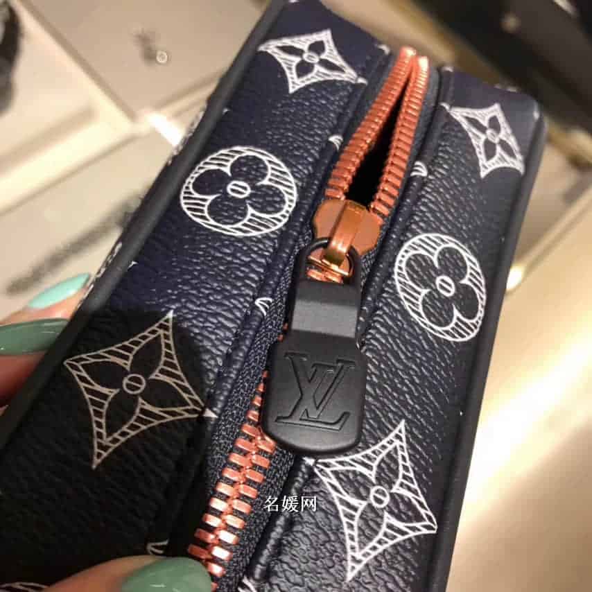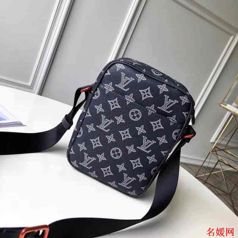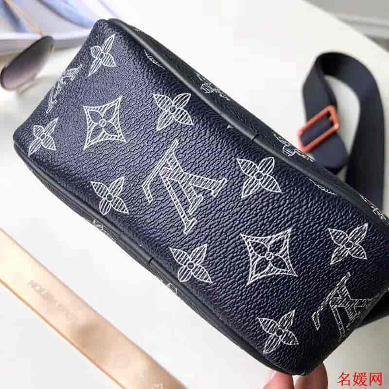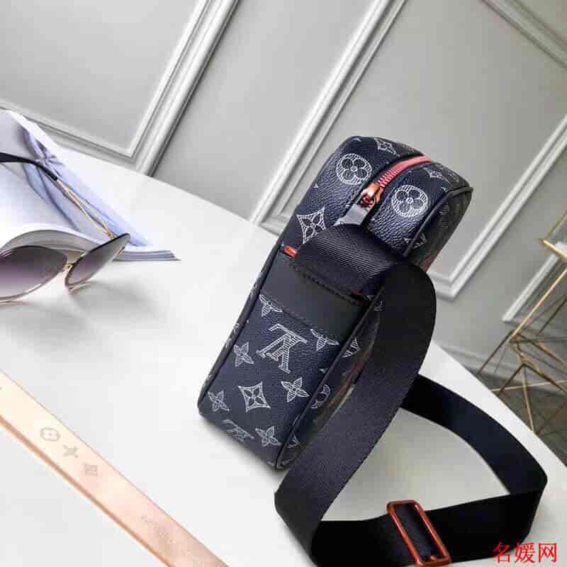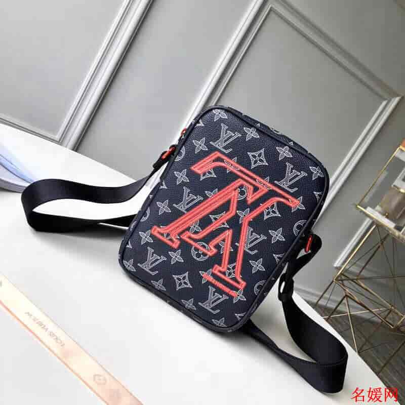 上下颠倒的LV Initials标识为2018秋季季前展示系列男装设计的特色元素。此款Danube小号都市手袋由Monogram Ink帆布裁制而成,出自男装艺术总监Kim Jones之手的亮粉logo引人注目。外形小巧而容量充盈,足可存放私人必备物品,可调节包带便于肩背或斜挎。