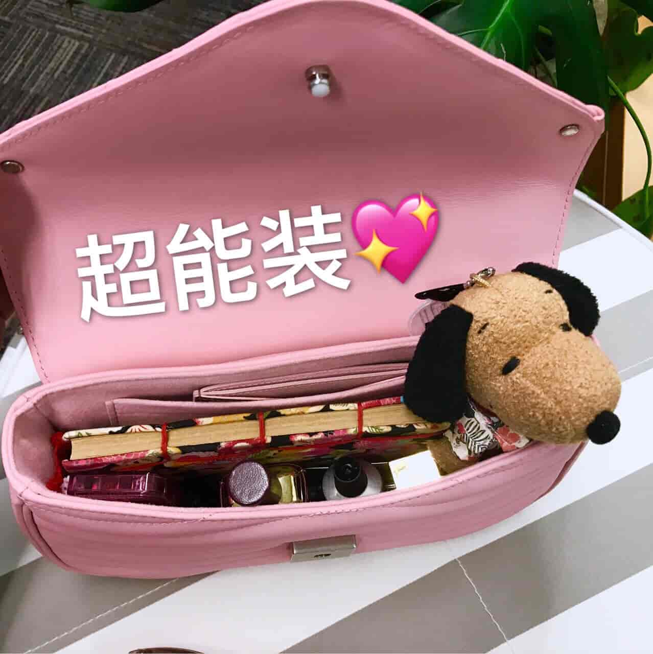 ? 中号的尺寸,一句话描述:超!能!装!手帐,口红,气垫,护手霜,小香水,口香糖,卡包 统统装下毫不费力!还能带上自己最心爱的狗子玩偶?