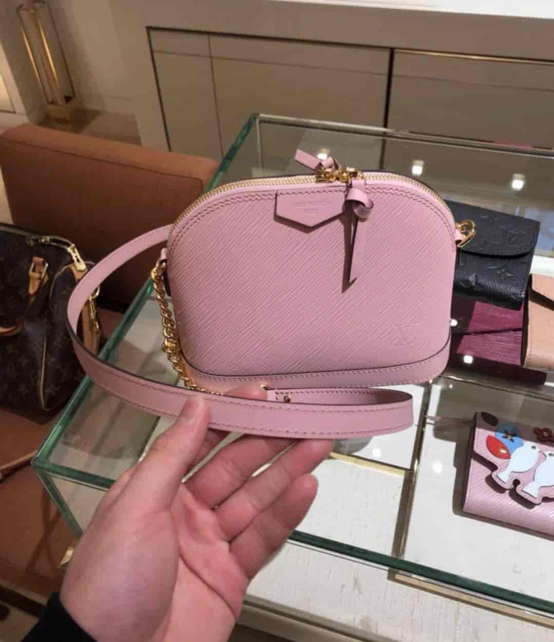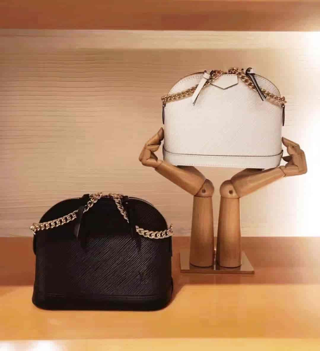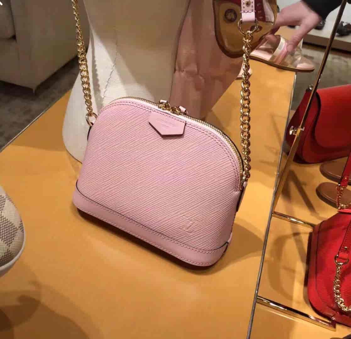 此款小巧可爱的Alma淑女手袋由粒纹Epi皮革裁制而成,全天出行的百搭之选。设计时髦而经典,配有一条饰有金链的长肩带,便于斜挎。融入LV压纹logo与“路易威登巴黎”英文贴饰等标志性元素。
