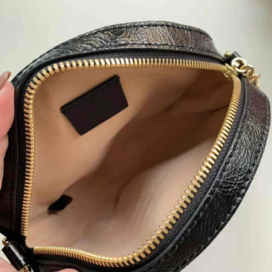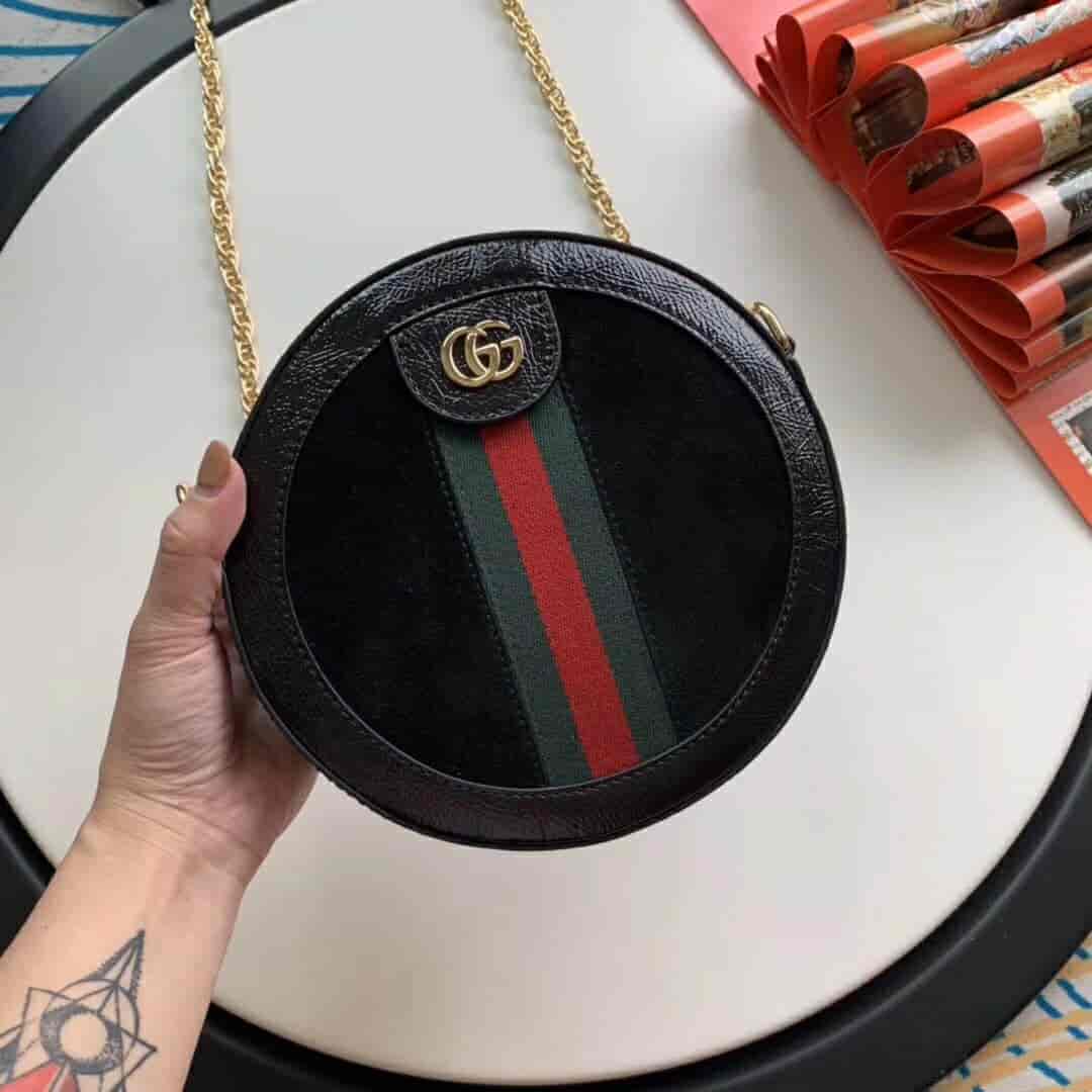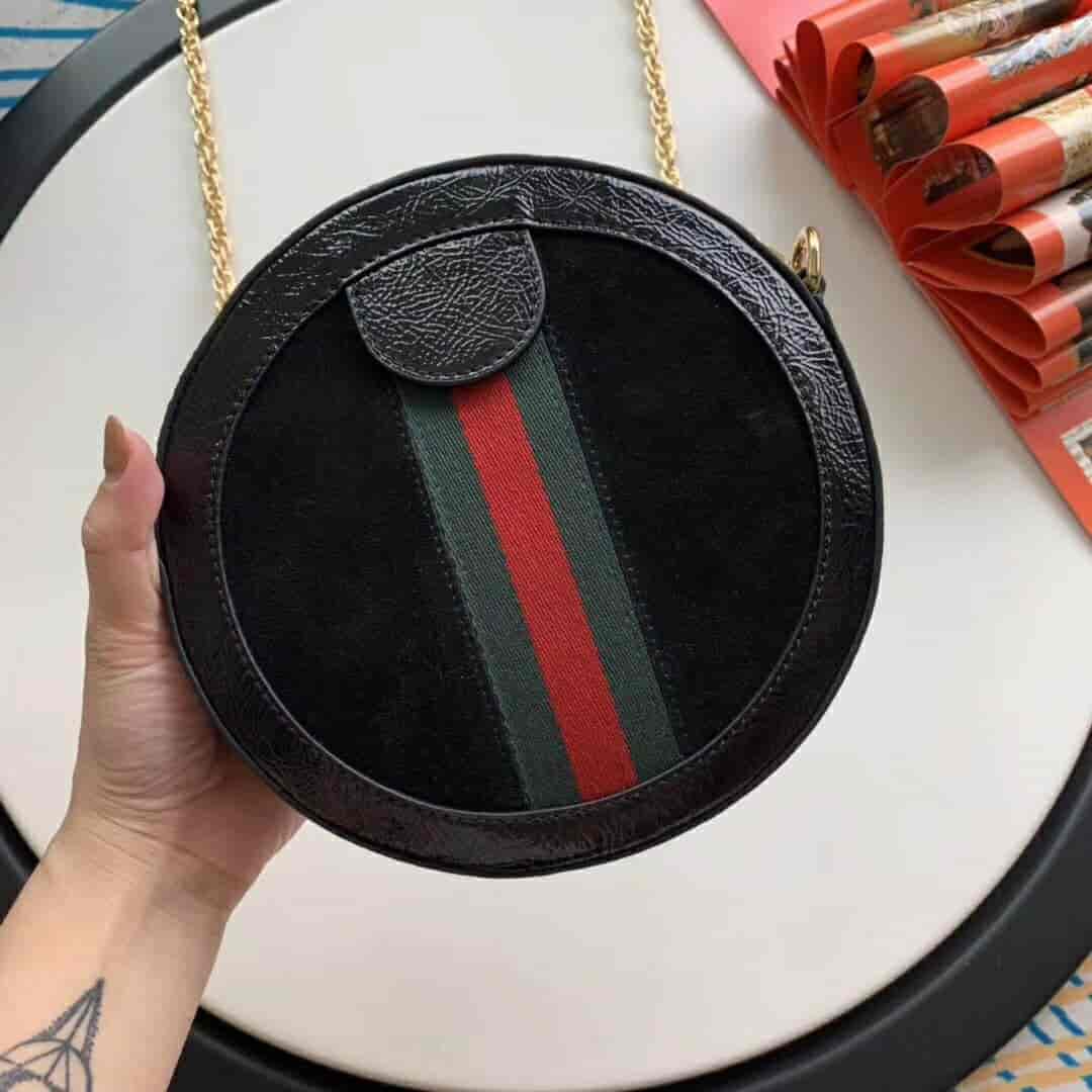 Gucci/古驰 Ophidia系列圆形迷你肩背包 550618 2018年10月25日 18:17:11👜奢侈品评论1,364阅读模式 Ophidia系列迎来圆形迷你手袋这一新成员,配以链式肩带。采用黑色麂皮和漆皮制作,镶嵌红绿条纹织带,小巧玲珑的双G图案是源自70年代的Gucci典藏设计,装饰包身上的饰片细节和拉链头。 黑色麂皮 黑色漆皮滚边 闪亮金色调配件 红绿织带 麂皮质感超细纤维衬里 链式肩带(57厘米高) 饰双G拉链扣 18厘米(宽)x 18厘米(高)x 4.5厘米(深) 意大利创作 款号550618 D6ZYB 1060 点赞 登录收藏 https://www.paizishop.com/shepin/2018/10/25/12157.html 复制链接 复制链接