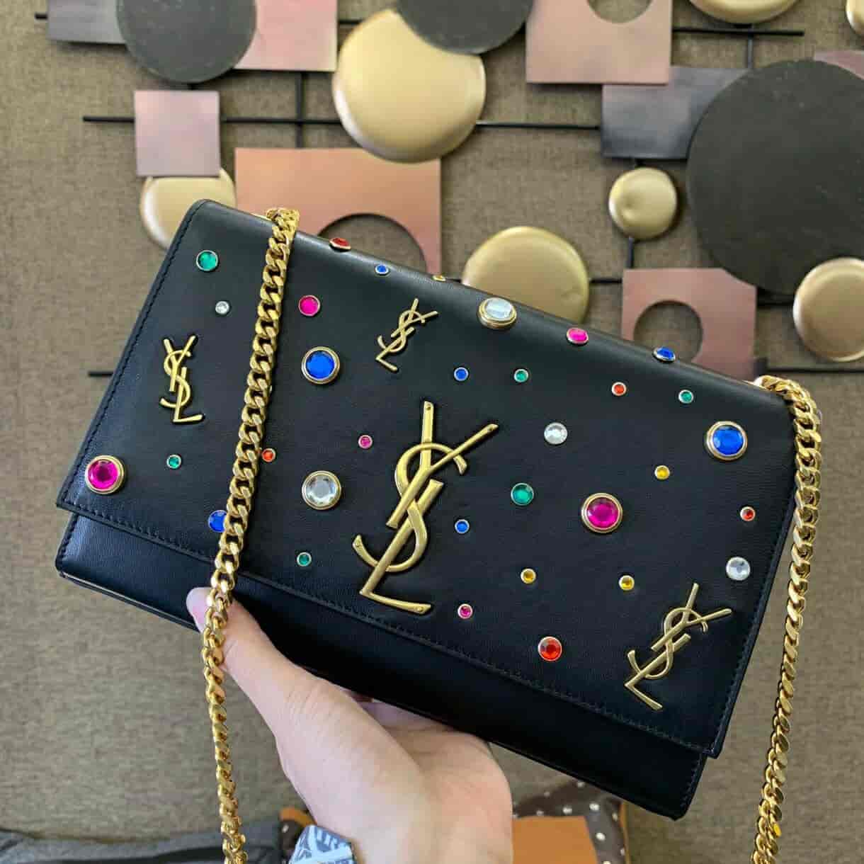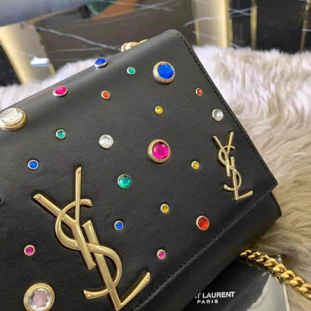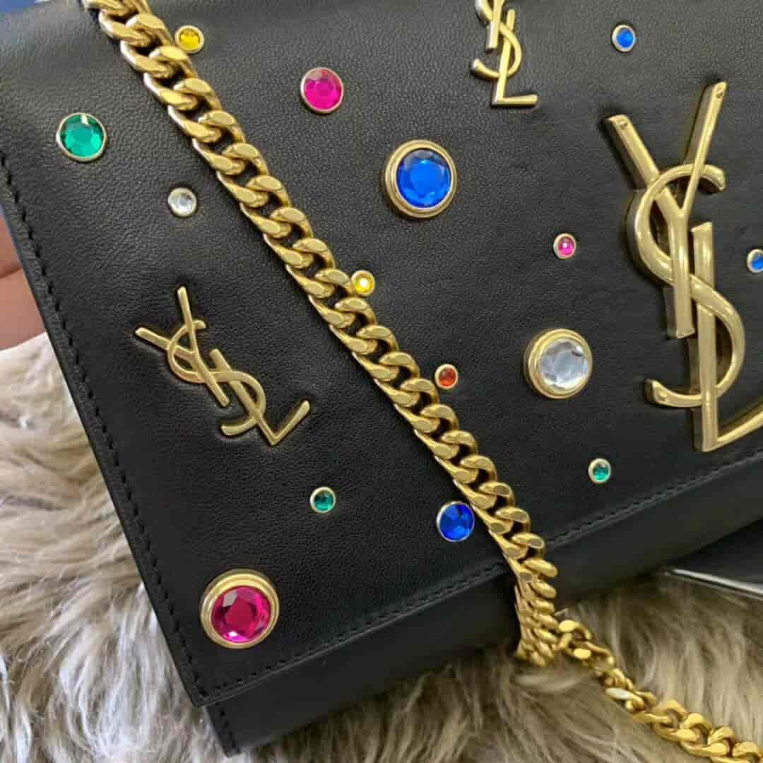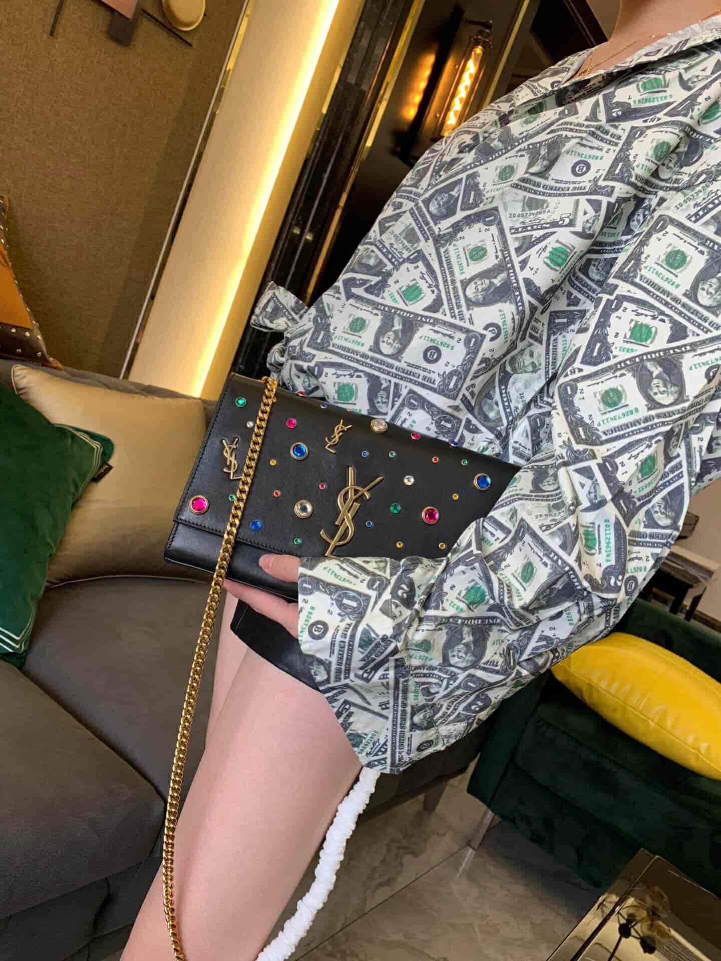 圣罗兰/Ysl KATE 中号彩色水晶装饰黑色链条包364051 2018年11月3日 00:11:43👜奢侈品评论2,037阅读模式 SAINT LAURENT 字母标志单肩包,配以饰有水晶和 YSL 饰钉的翻盖、马衔索式链条及金属联结 YSL 标志。 尺寸 24.0 14.5 5.5 CM 100% 羊皮 金色调金属五金 麂皮衬里 磁性四合扣闭合 开衩内袋 肩带长度:48厘米 意大利制造 货号 3640510J4C11077 点赞 登录收藏 https://www.paizishop.com/shepin/2018/11/03/12474.html 复制链接 复制链接