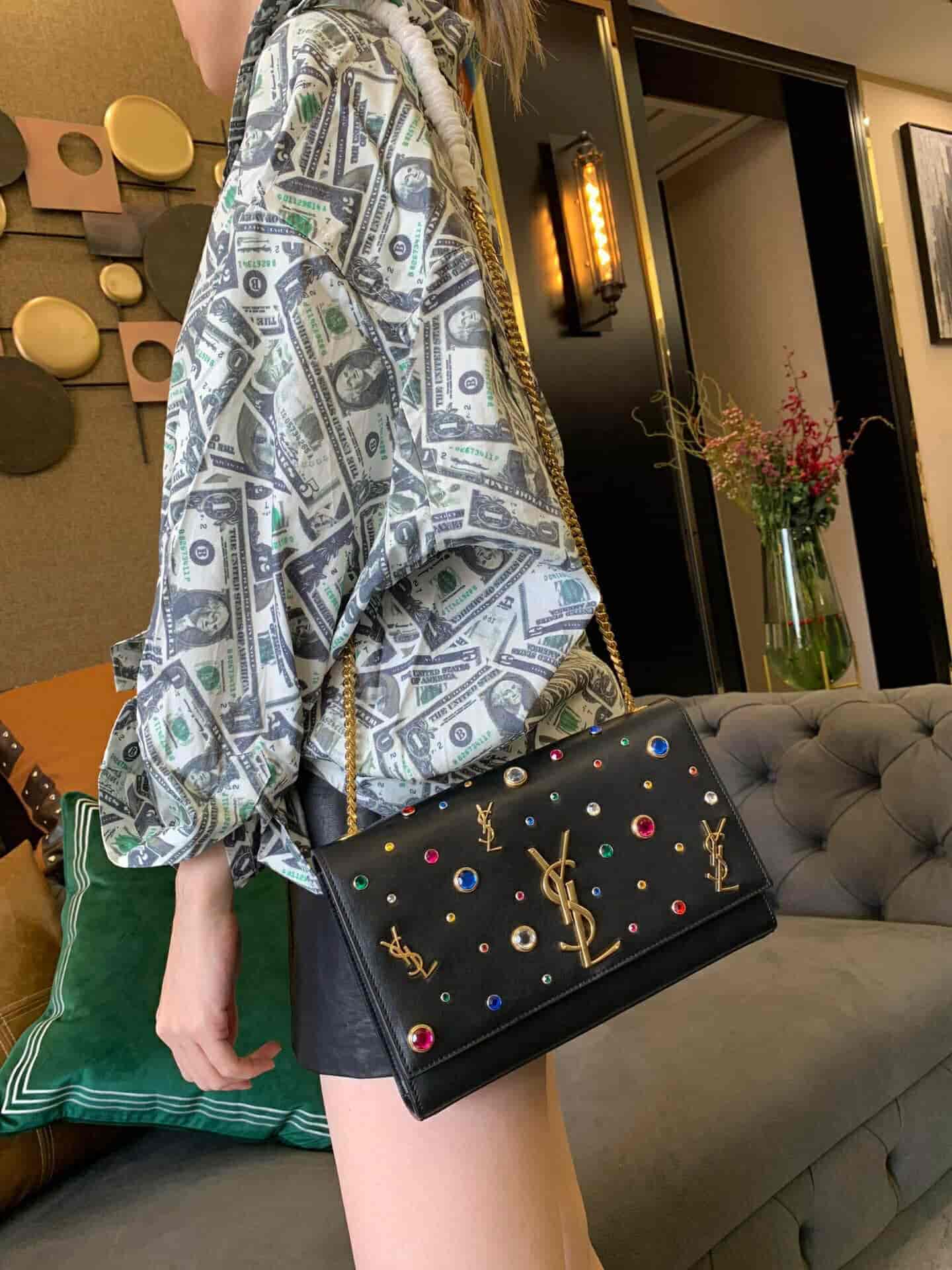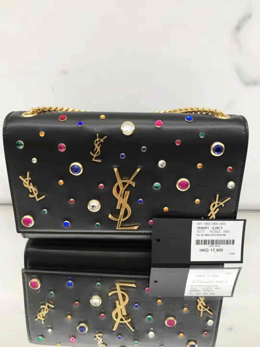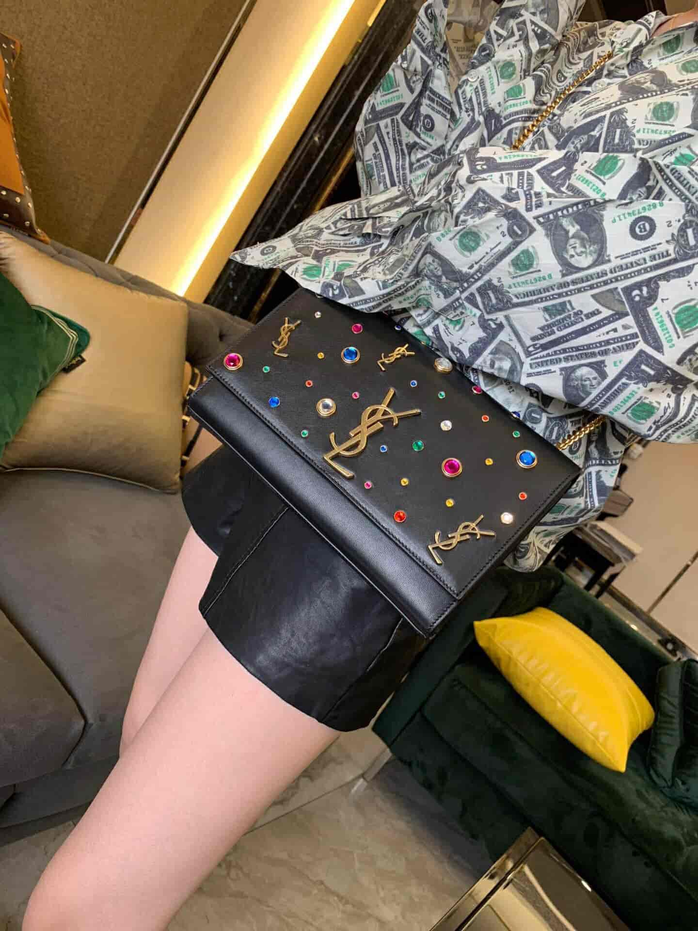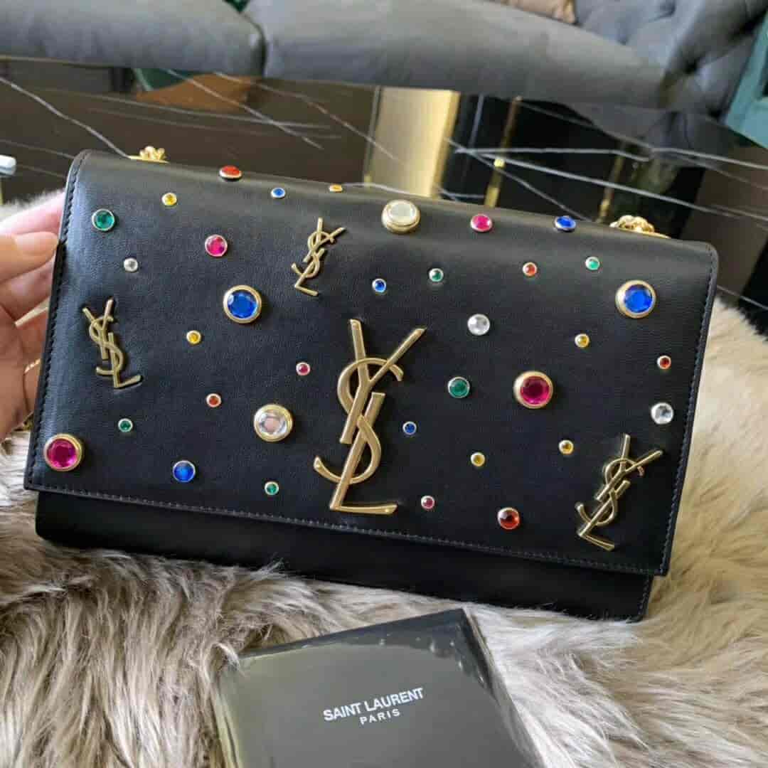 圣罗兰/Ysl KATE 中号彩色水晶装饰黑色链条包364051 2018年11月3日 00:11:43👜奢侈品评论2,037阅读模式 SAINT LAURENT 字母标志单肩包,配以饰有水晶和 YSL 饰钉的翻盖、马衔索式链条及金属联结 YSL 标志。 尺寸 24.0 14.5 5.5 CM 100% 羊皮 金色调金属五金 麂皮衬里 磁性四合扣闭合 开衩内袋 肩带长度:48厘米 意大利制造 货号 3640510J4C11077 点赞 登录收藏 https://www.paizishop.com/shepin/2018/11/03/12474.html 复制链接 复制链接