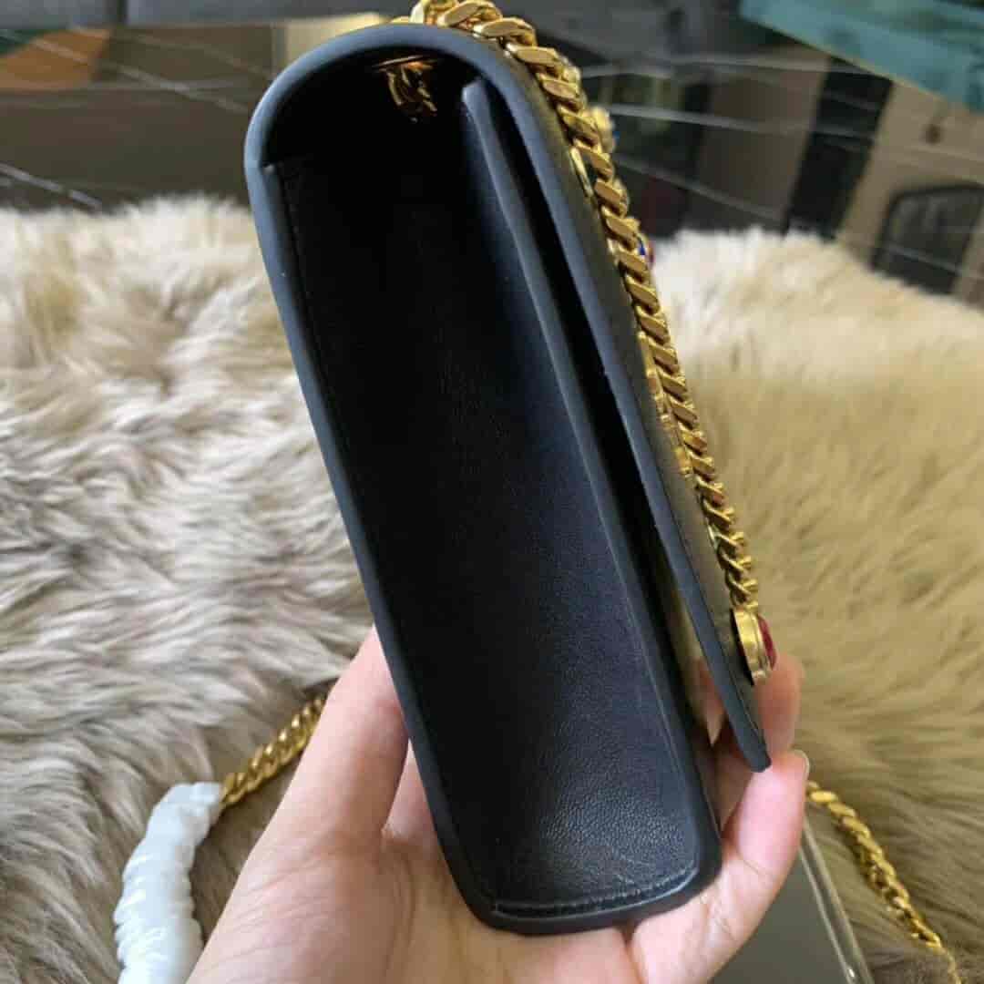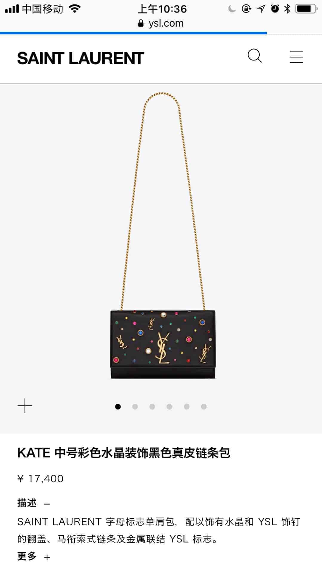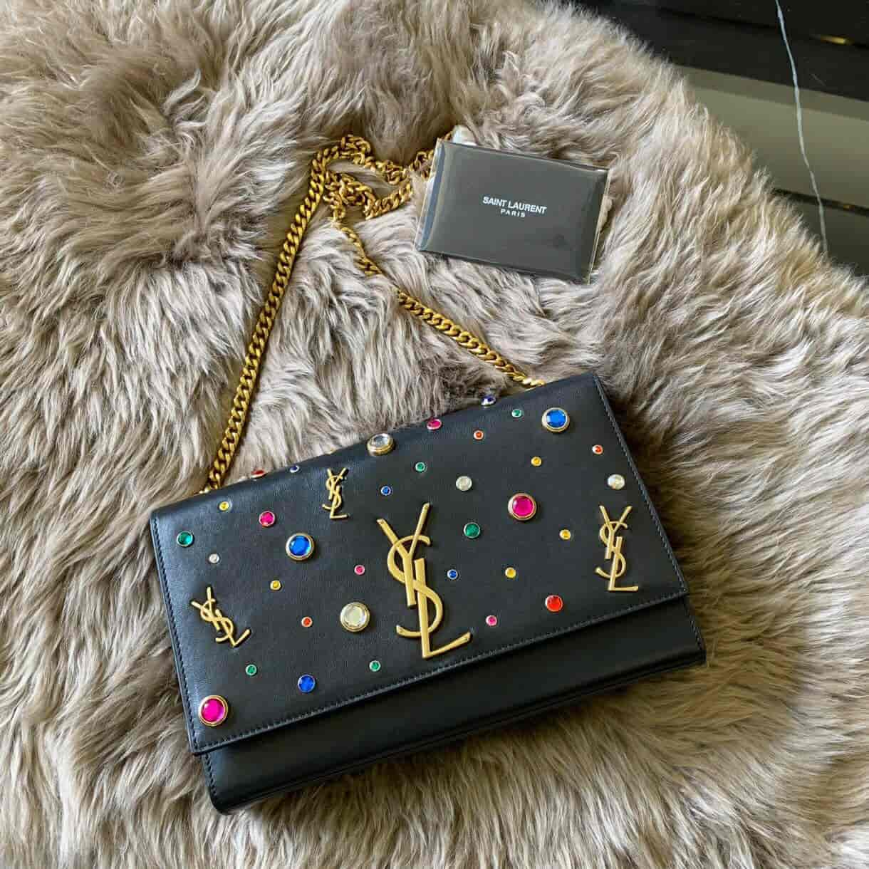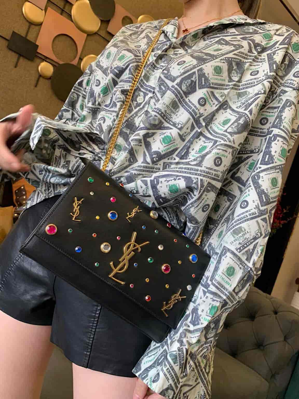圣罗兰/Ysl KATE 中号彩色水晶装饰黑色链条包364051 2018年11月3日 00:11:43👜奢侈品评论2,037阅读模式 SAINT LAURENT 字母标志单肩包,配以饰有水晶和 YSL 饰钉的翻盖、马衔索式链条及金属联结 YSL 标志。 尺寸 24.0 14.5 5.5 CM 100% 羊皮 金色调金属五金 麂皮衬里 磁性四合扣闭合 开衩内袋 肩带长度:48厘米 意大利制造 货号 3640510J4C11077 点赞 登录收藏 https://www.paizishop.com/shepin/2018/11/03/12474.html 复制链接 复制链接