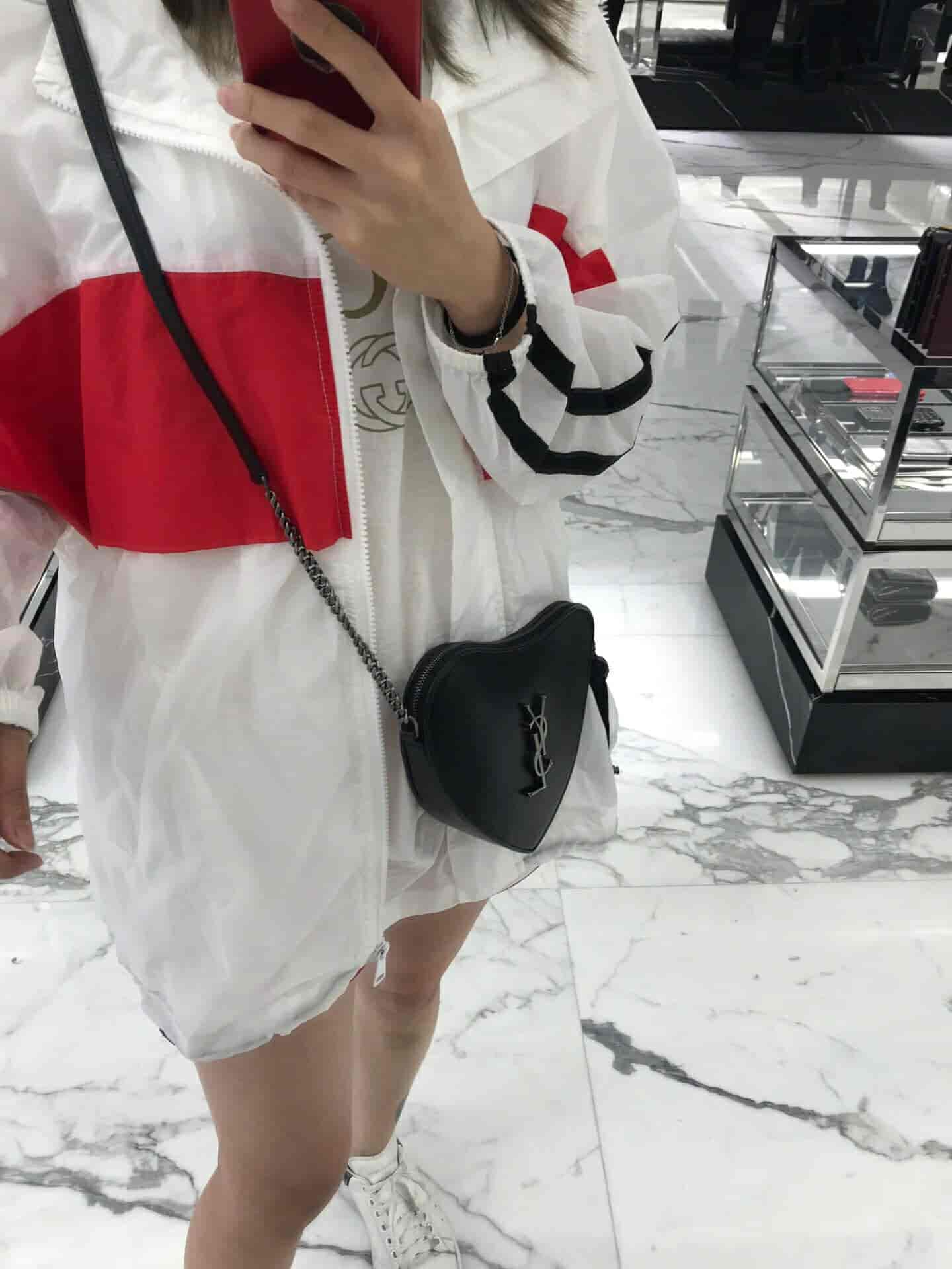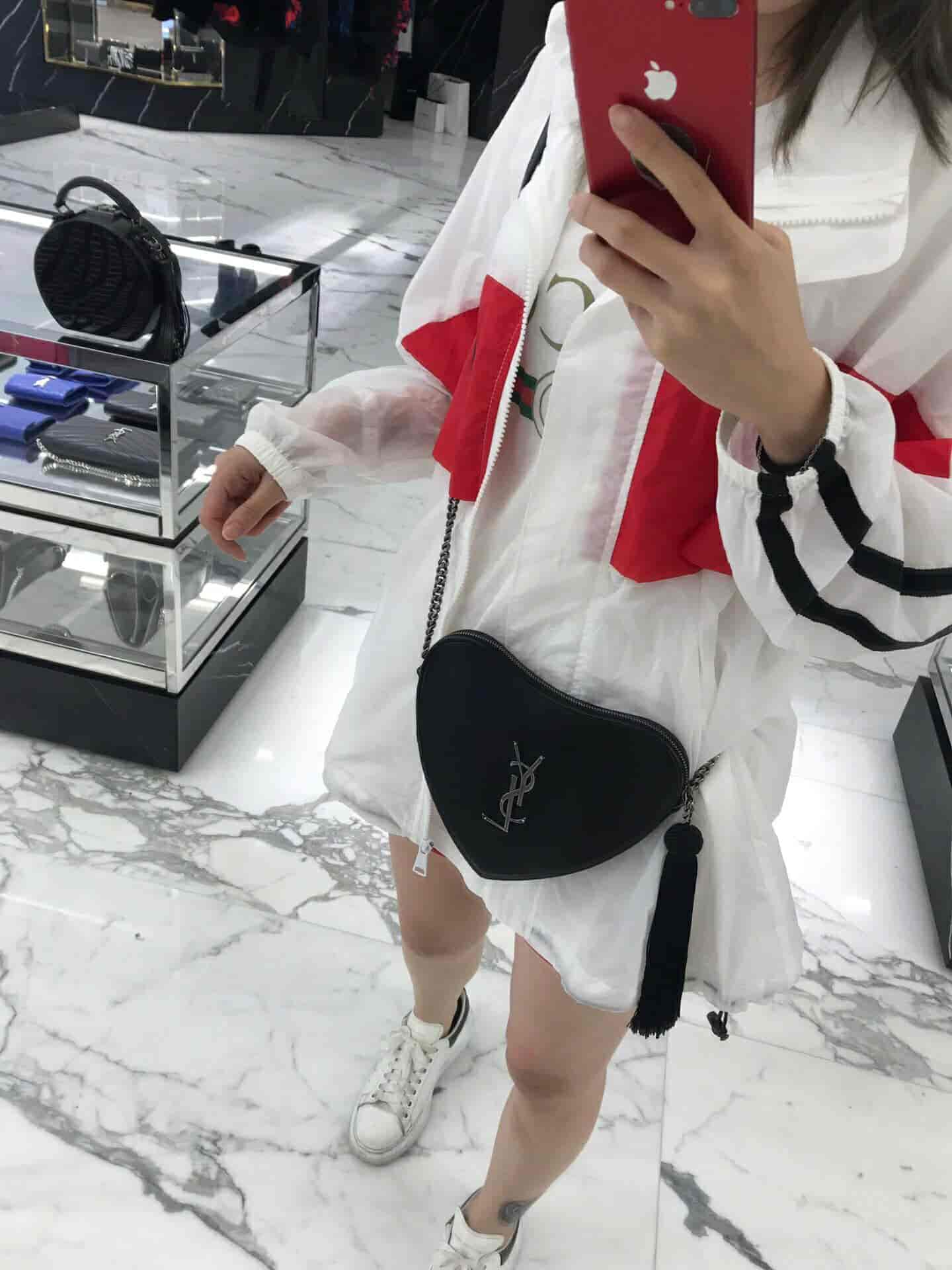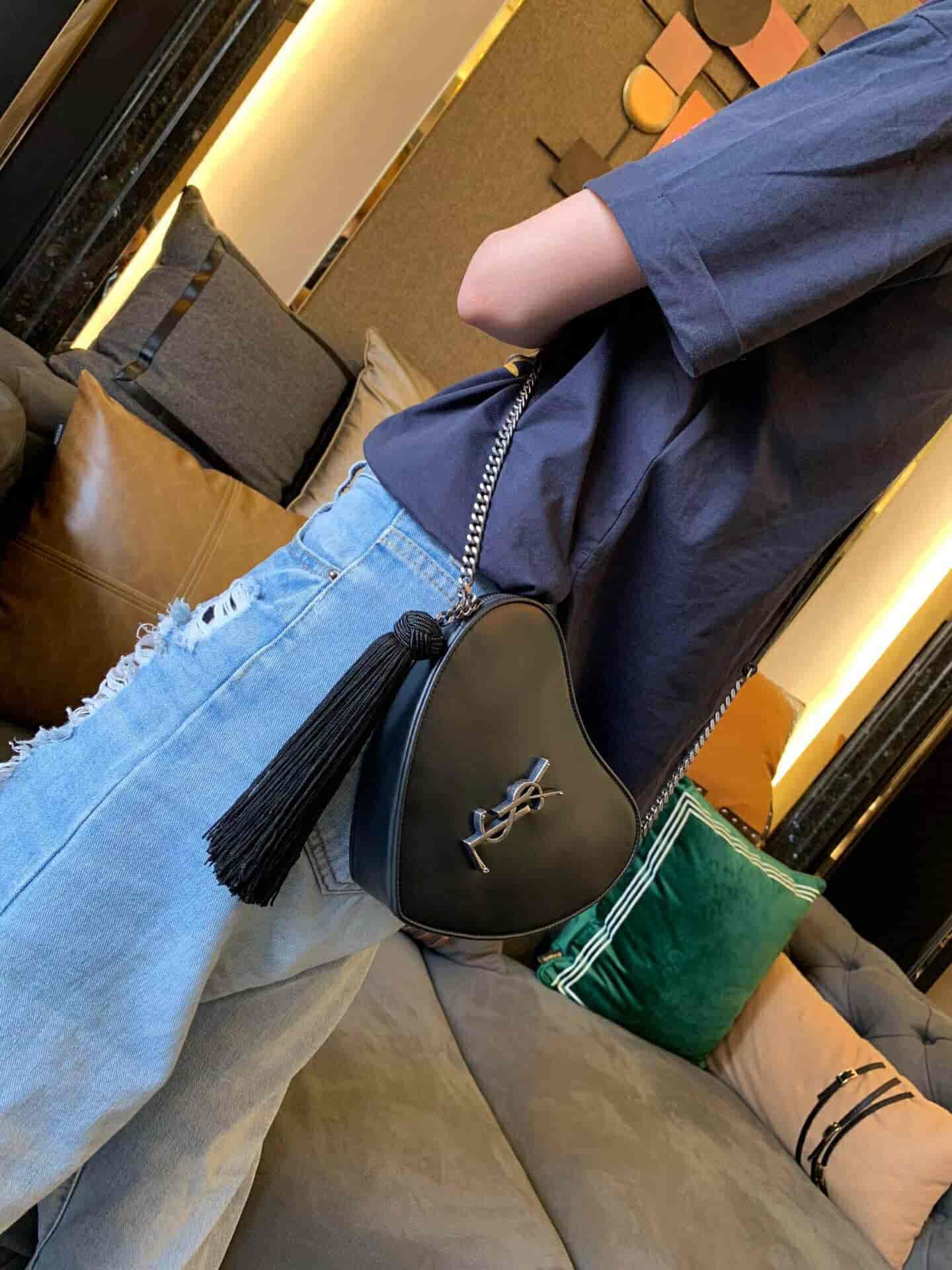 圣罗兰/ysl CŒUR 复古黑色爱心形链条包 540694 2018年11月10日 17:05:57👜奢侈品评论2,200阅读模式 真皮肩包,配以可调式链条、流苏饰边流苏穗拉链及 YSL 金属标志。 尺寸 21.0 6.5 5.5 CM 100% 小牛皮 磨毛银色调金属五金 罗缎衬里 拉链闭合 一个卡片槽 肩带长度:55厘米 意大利制造 货号 5406940XB6D1000 点赞 登录收藏 https://www.paizishop.com/shepin/2018/11/10/12737.html 复制链接 复制链接