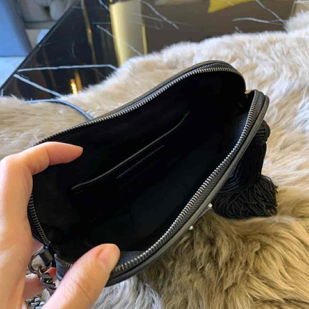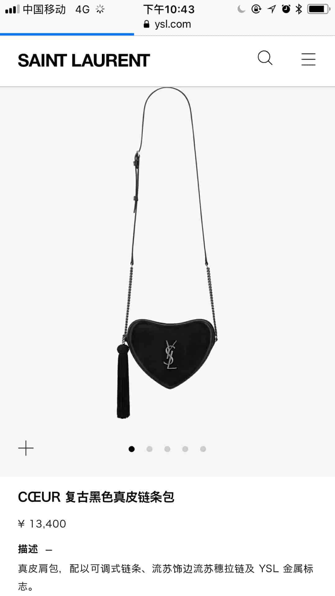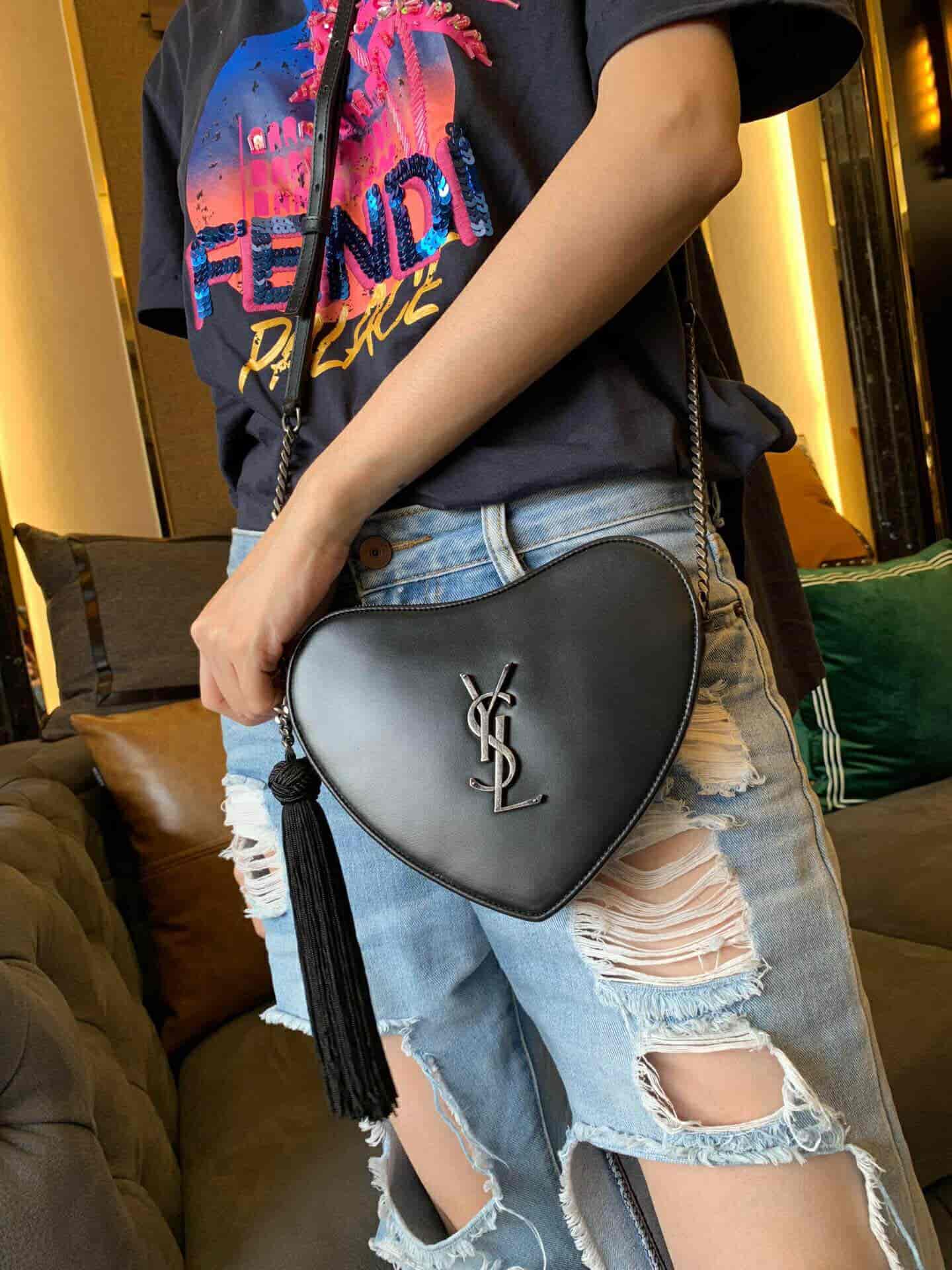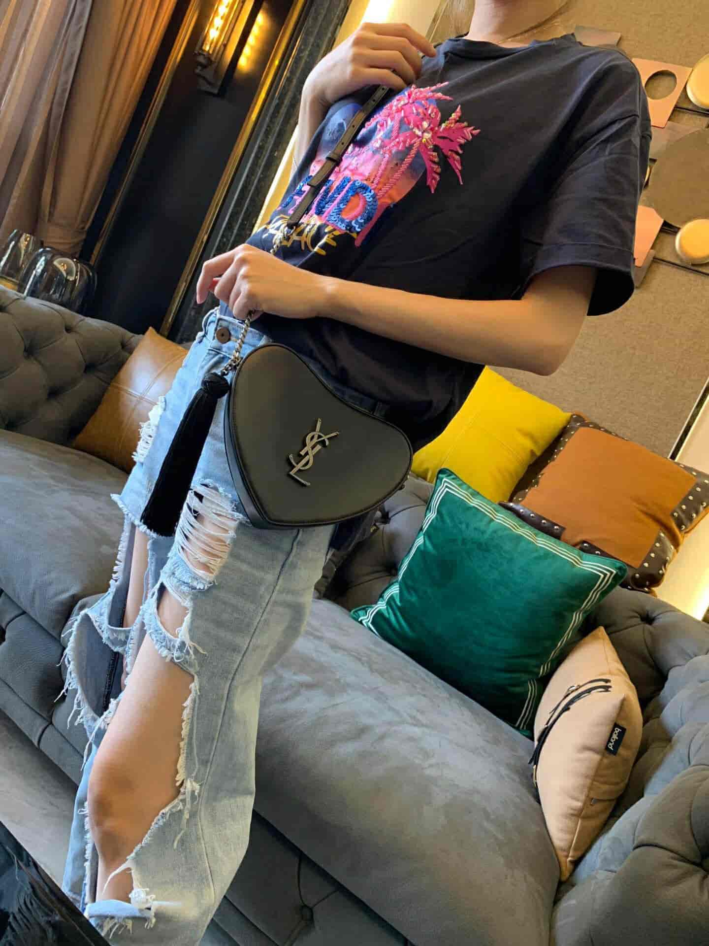 圣罗兰/ysl CŒUR 复古黑色爱心形链条包 540694 2018年11月10日 17:05:57👜奢侈品评论2,200阅读模式 真皮肩包,配以可调式链条、流苏饰边流苏穗拉链及 YSL 金属标志。 尺寸 21.0 6.5 5.5 CM 100% 小牛皮 磨毛银色调金属五金 罗缎衬里 拉链闭合 一个卡片槽 肩带长度:55厘米 意大利制造 货号 5406940XB6D1000 点赞 登录收藏 https://www.paizishop.com/shepin/2018/11/10/12737.html 复制链接 复制链接