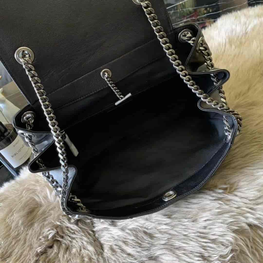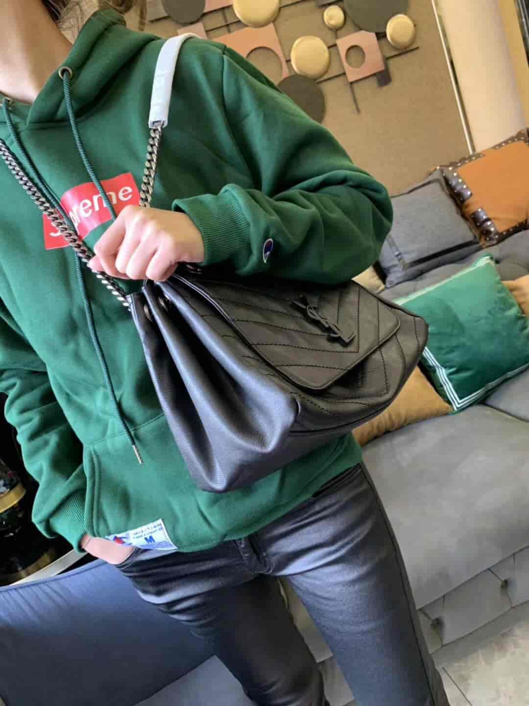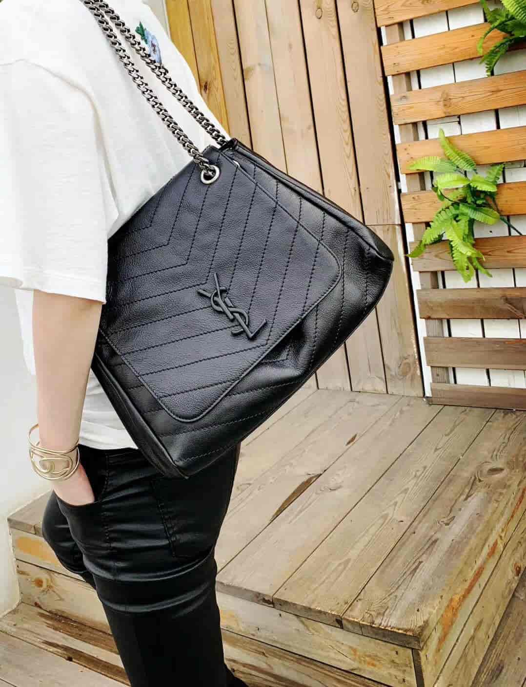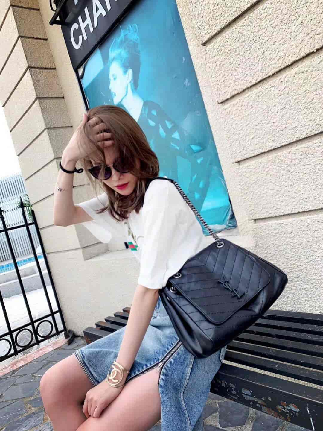 YSL/圣罗兰 NOLITA 中号复古真皮包 554265 2018年12月11日 19:22:56👜奢侈品评论3,154阅读模式 包包配以真皮链条肩带,可折叠作为单肩包使用,饰以真皮包覆的 YSL 标志。 尺寸 31.0 21.0 16.5 CM 100% 羊皮 青铜色金属五金 麂皮衬里 四合扣收口 内侧:一个拉链袋 肩带可缩短或作为单肩包使用 肩带长度:47厘米 折叠后肩带长度:25厘米 意大利制造 货号 55426503W041000 点赞 登录收藏 https://www.paizishop.com/shepin/2018/12/11/13532.html 复制链接 复制链接