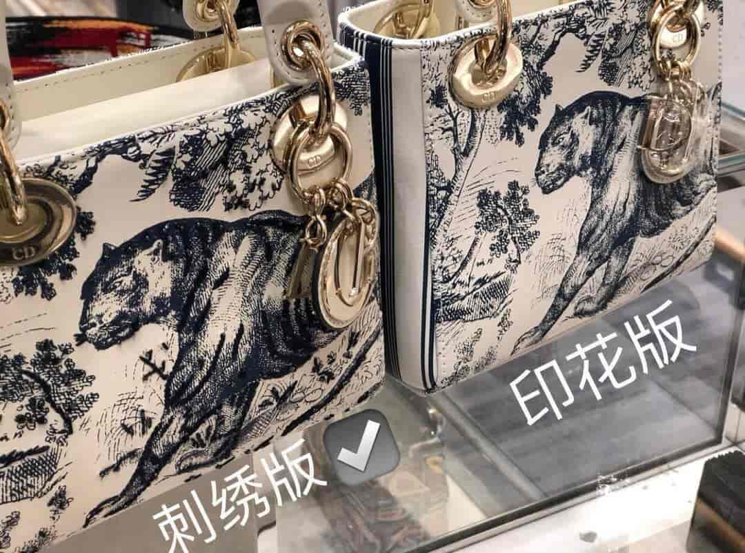而印花版本只能看到老虎的前半部分,侧面是竖条印花