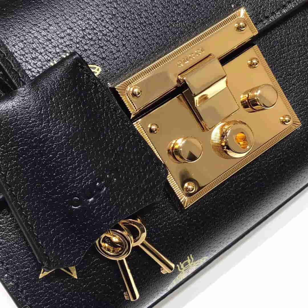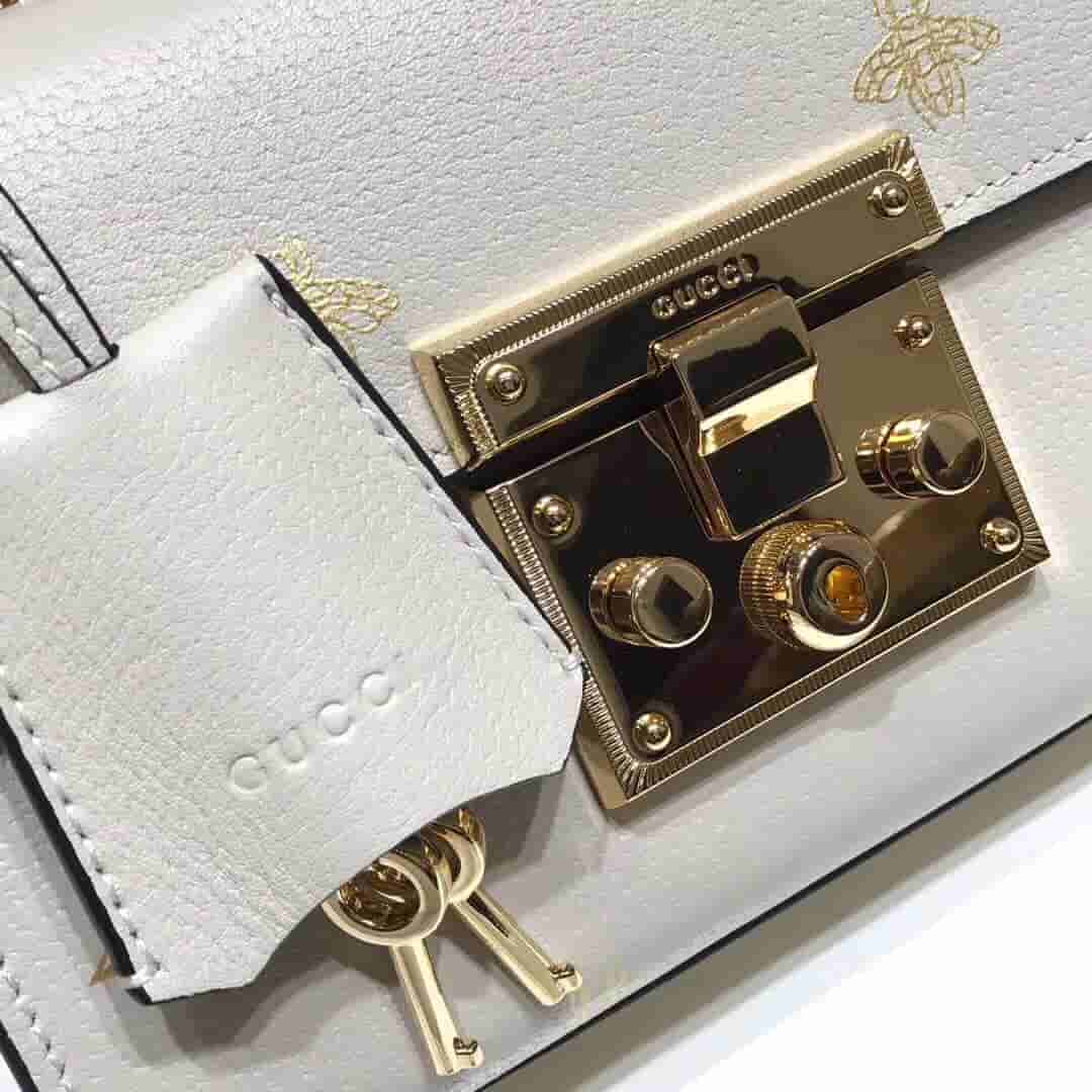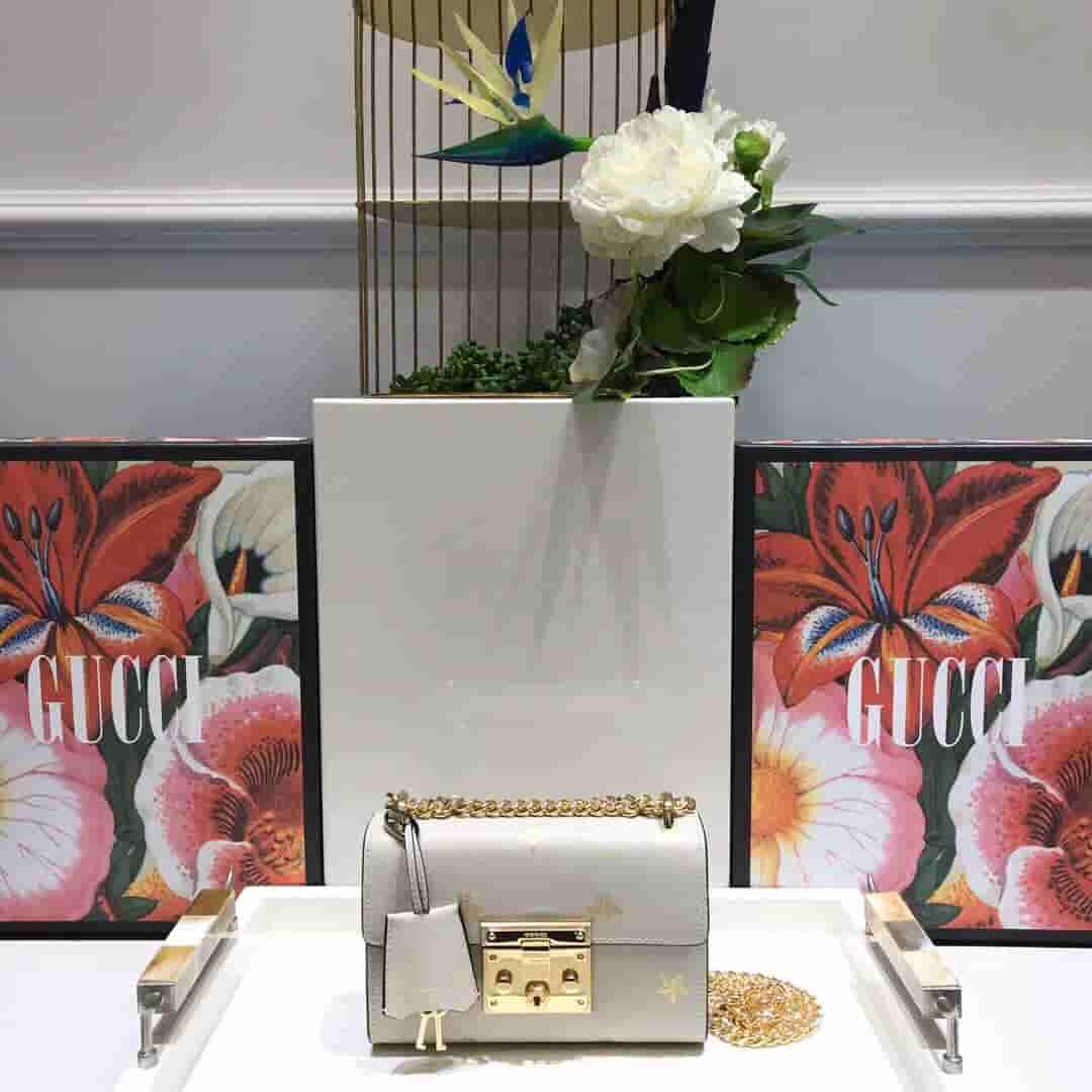 这款别致的Padlock肩背包,造型挺括,在每一季中不断推陈出新,钥匙锁扣设计源自品牌典藏设计。2019早春系列中,这款小号肩背包采用织纹皮革呈现,饰以金属质感金色蜜蜂和星星印花。钥匙放在可拆卸皮革钥匙包内。