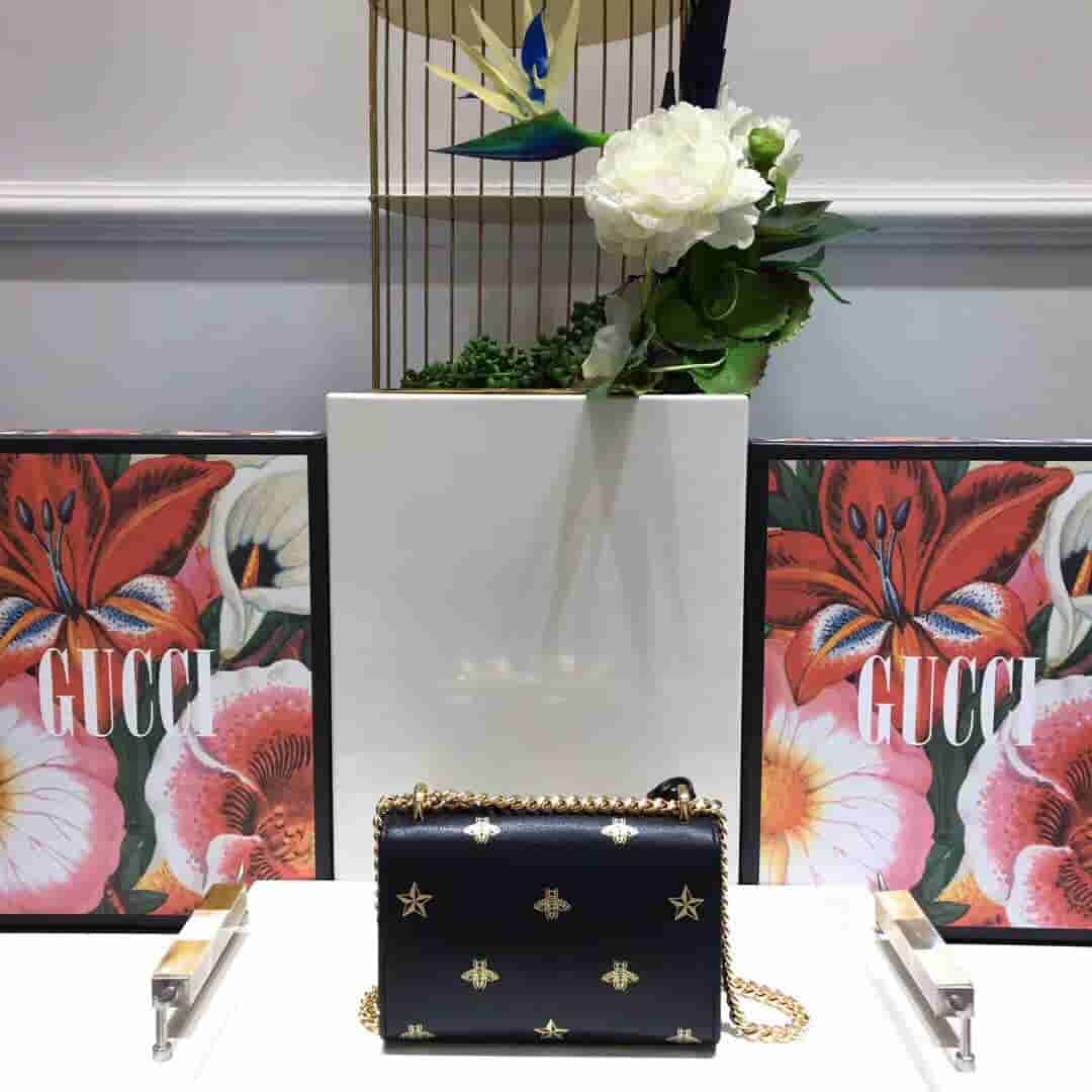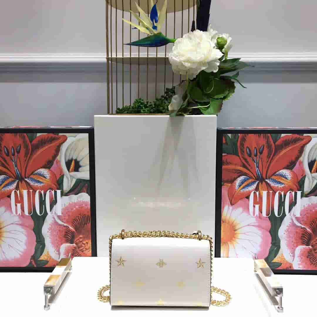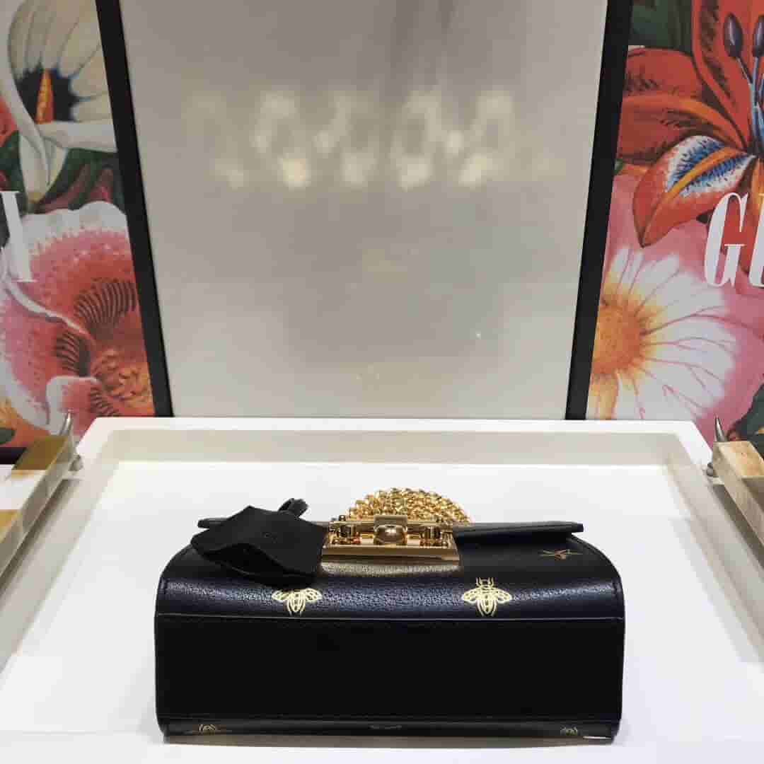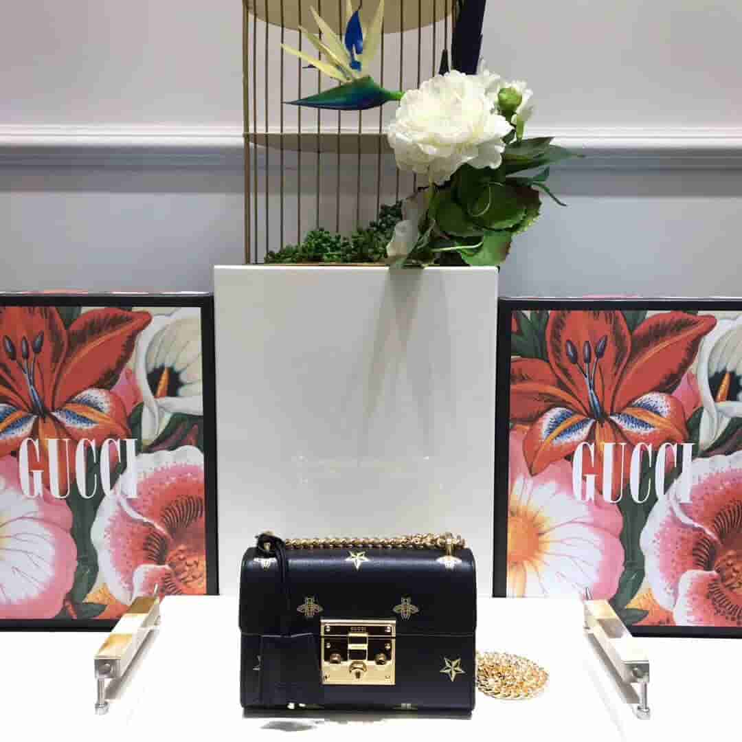 这款别致的Padlock肩背包,造型挺括,在每一季中不断推陈出新,钥匙锁扣设计源自品牌典藏设计。2019早春系列中,这款小号肩背包采用织纹皮革呈现,饰以金属质感金色蜜蜂和星星印花。钥匙放在可拆卸皮革钥匙包内。