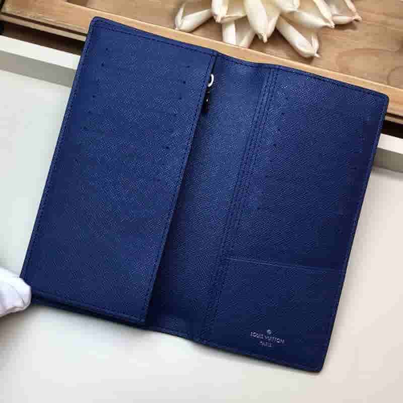 Brazza钱包採用Taïga皮革与Monogram帆布製造,配上低调的图案,交织出别树一格的素雅色彩。内部设计典雅,包括16个信用卡夹层、大型拉链零钱格及4个可放账单和票据内贴隔层。钱包大小刚好,放可进外套衣袋中,实用方便。