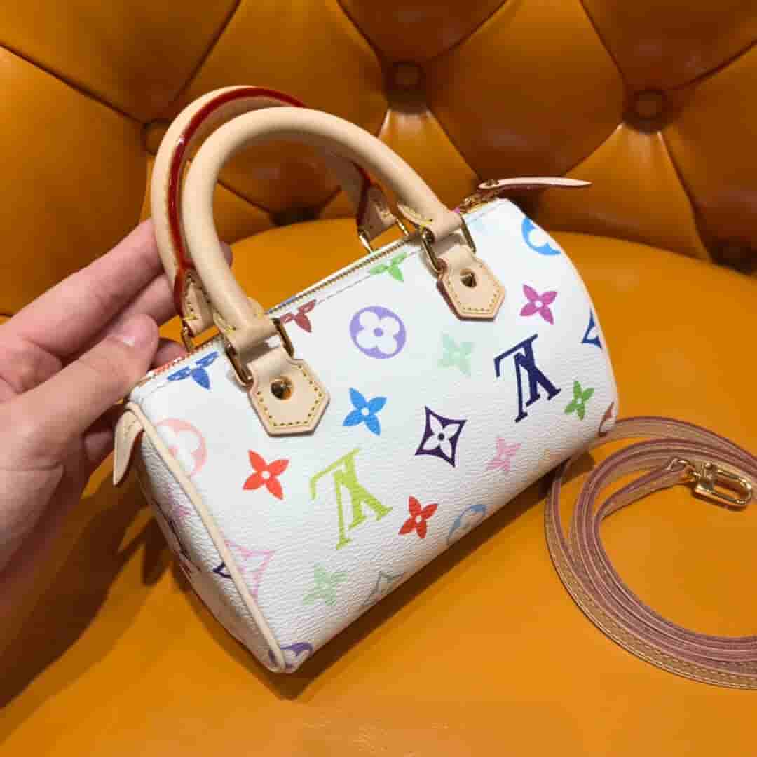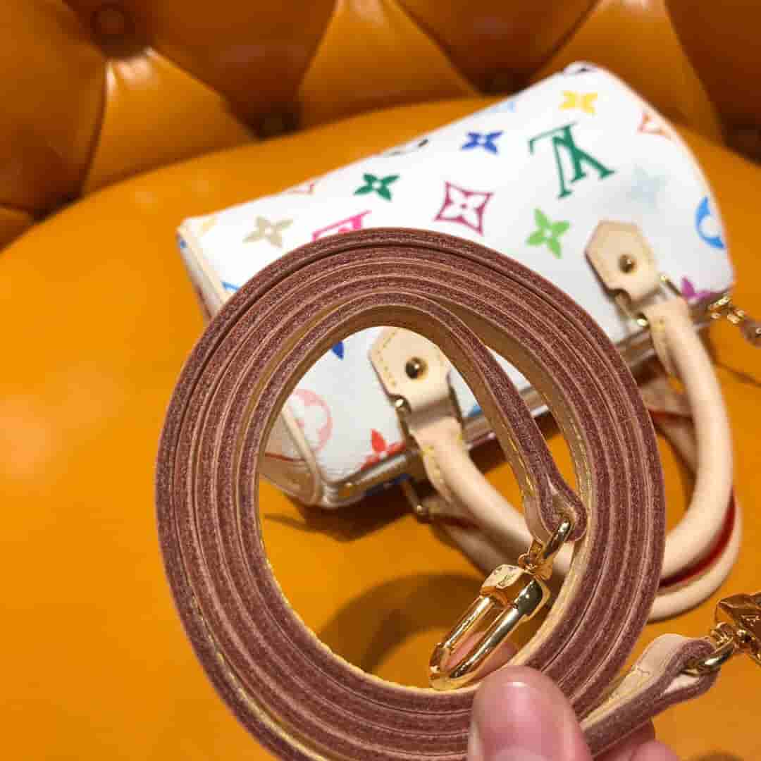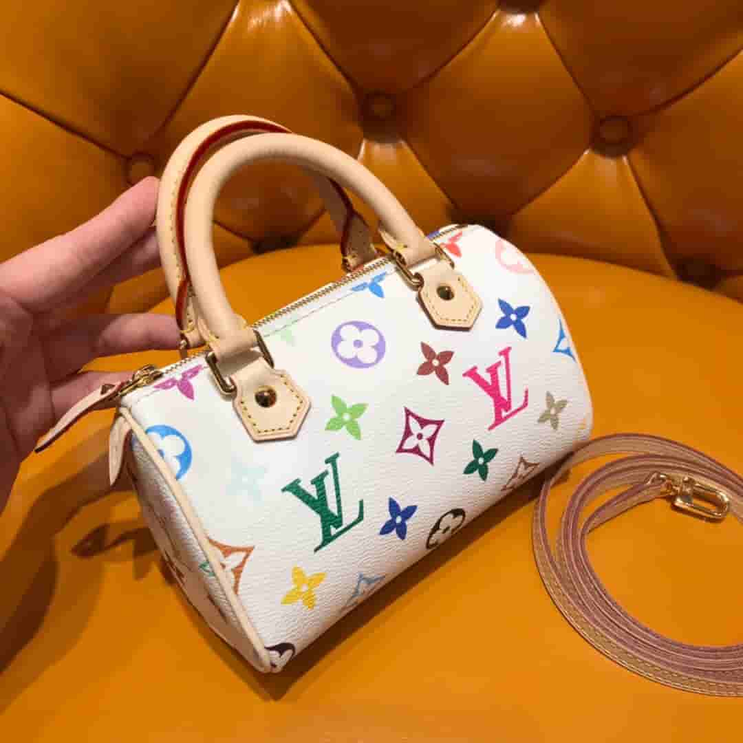 LV 白色33彩迷你枕头包 M92645 2019年6月1日 17:42:09👜奢侈品评论3,357阅读模式 村上隆和lv联名推出的33彩系 推出十二截火爆全球 深受明星名人喜好。 一改高冷稳重的印象 经典的Monogram印花以33种缤纷的色彩演泽 活泼童真又亲切。 大热爆款33彩迷你枕头包,圆滚桶的外型可爱又轻盈无比,铆钉装饰甜美中又带点Rock的感觉 可拆式肩带可手拎肩挎 日常生活必备的手机、钱夹、钥匙和美妆用品轻松收纳有余。上身充满时尚靓丽又活泼可爱,日常穿搭首选! 尺寸:16 x 10 x 7cm 参考价:980 点赞 登录收藏 https://www.paizishop.com/shepin/2019/06/01/18830.html 复制链接 复制链接
