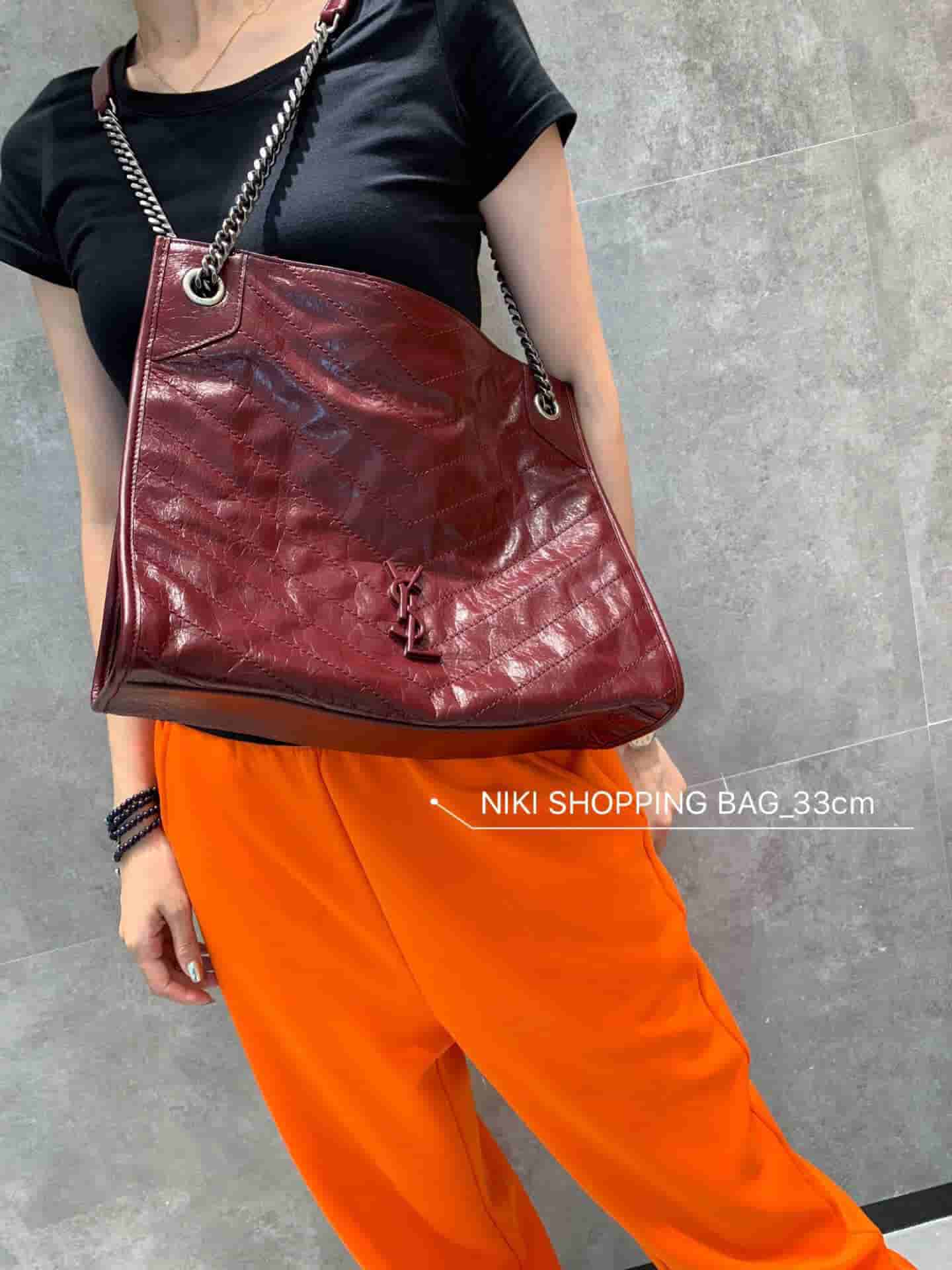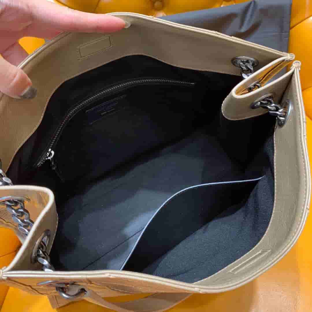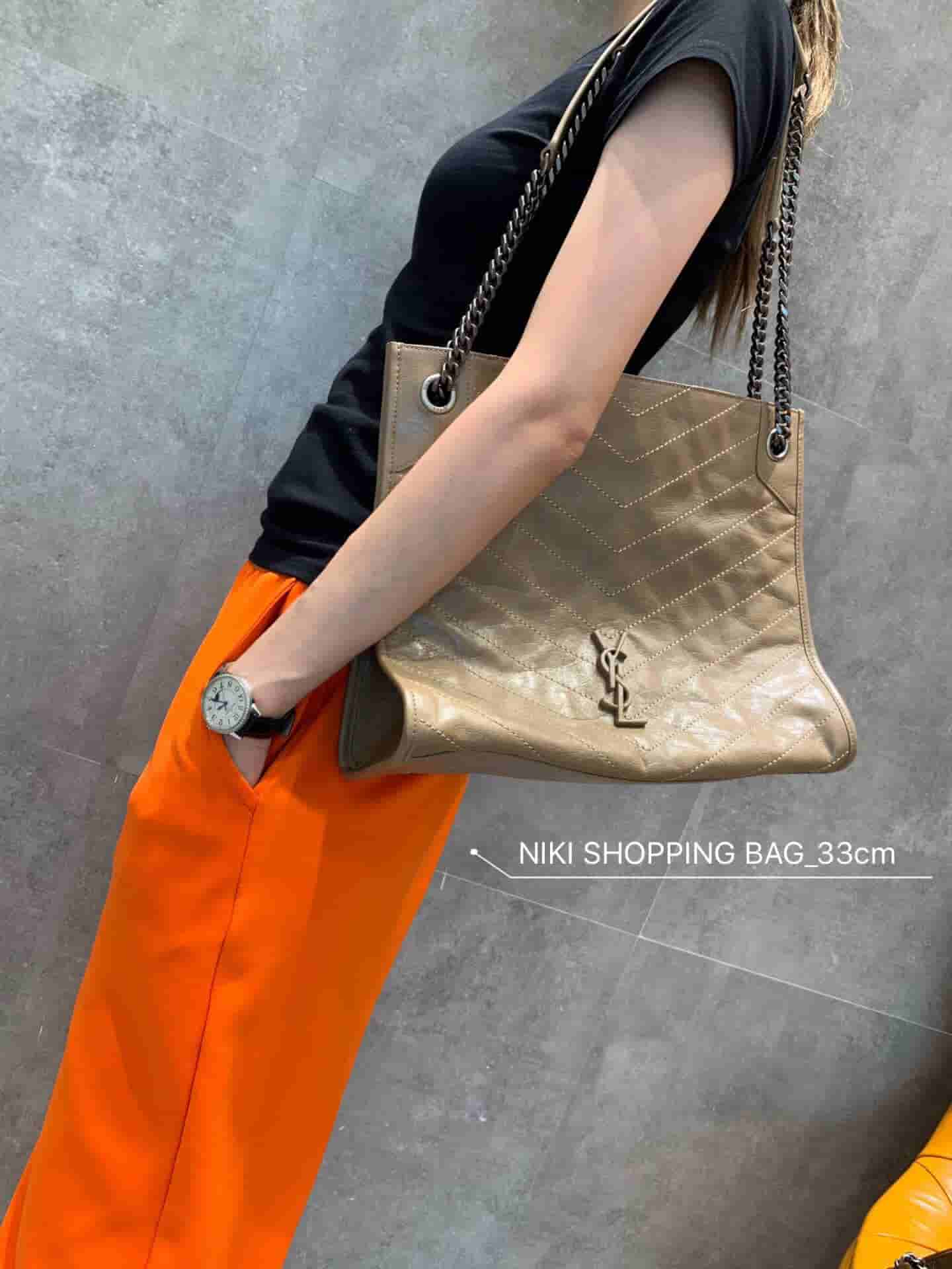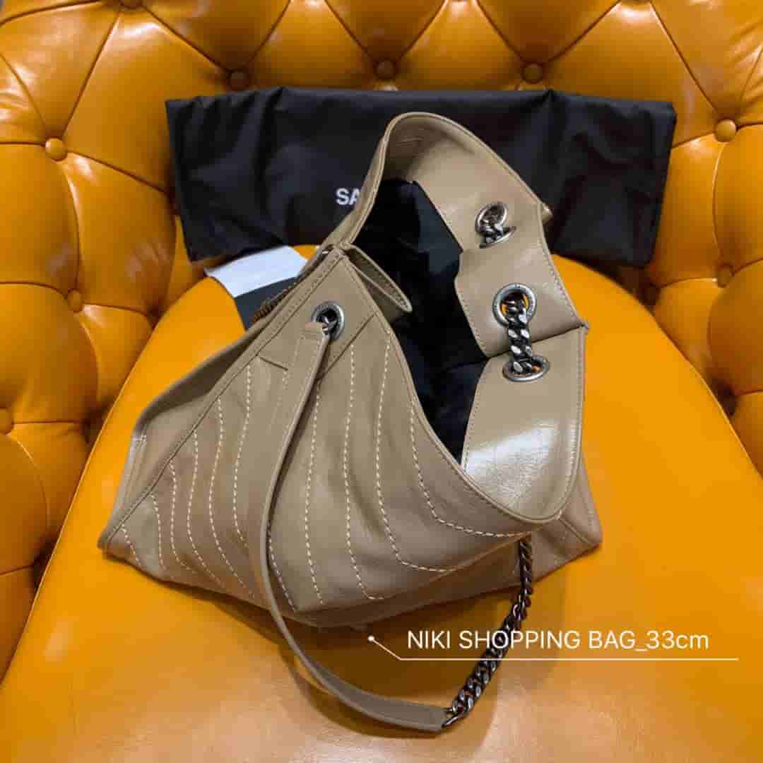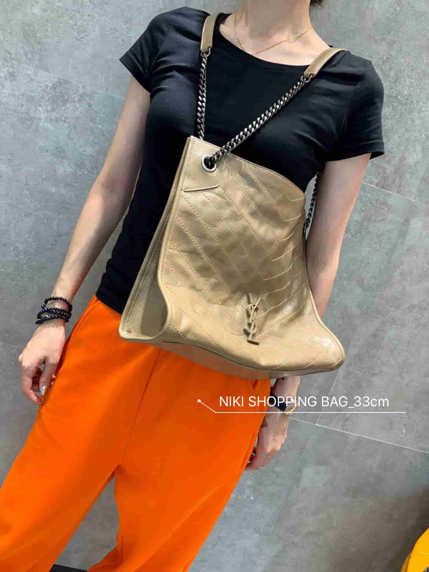 销售冠军NIKI系列又出新品!NIKI SHOPPING BAG,延续Niki风格采用抓皱油蜡牛皮及logo使用真皮包裹设计;包袋中间有磁吸扣,保障了包包使用的安全性;内里有一拉链隔层及敞口插槽设计可放手机及零钱卡片,方便拿取,不会出现因为是大包而出现找不到东西的情况;包包自重非常轻,容量又足够大,公文包、旅行包、购物袋、妈妈包随意切换,实用性爆表!