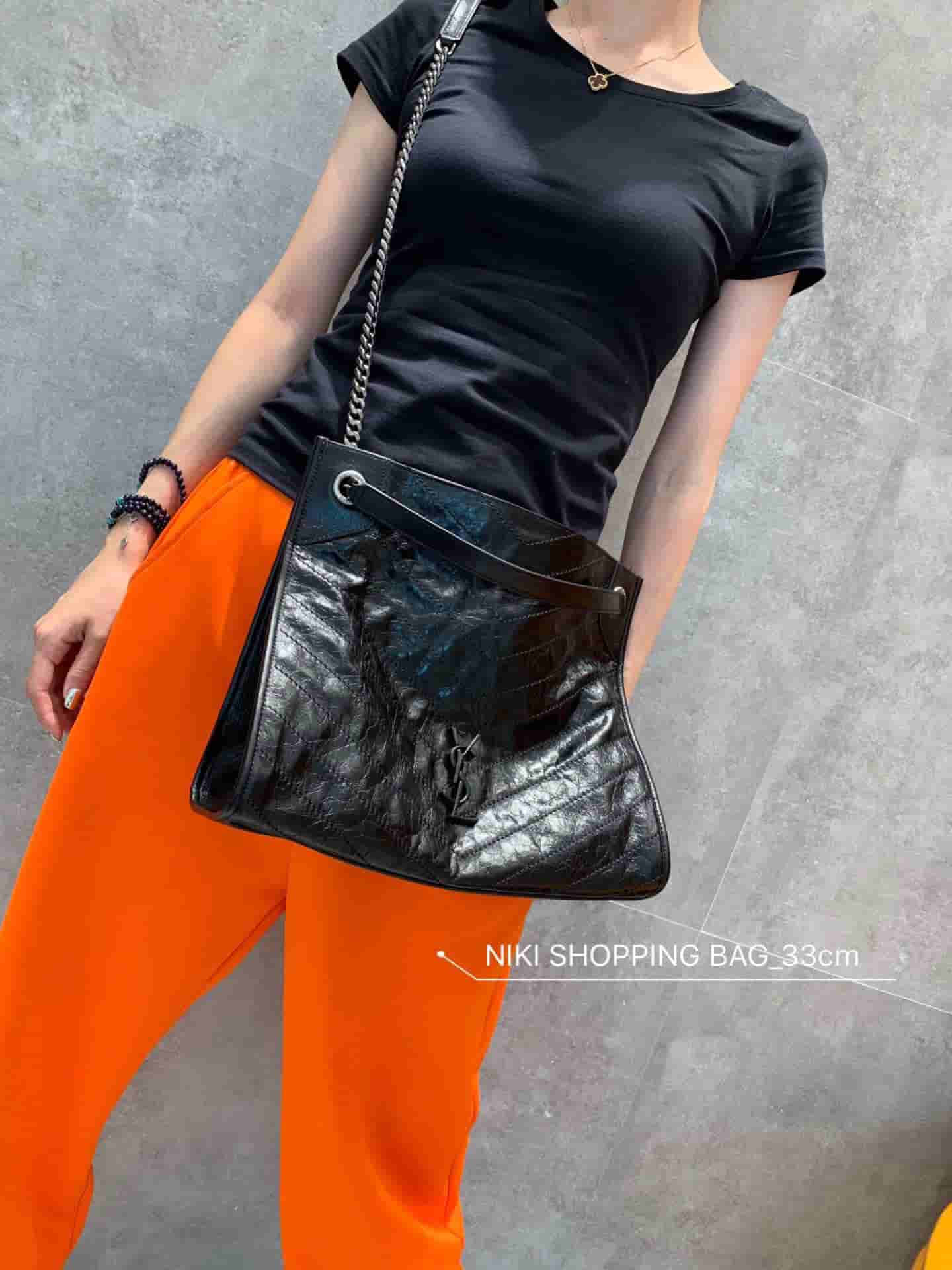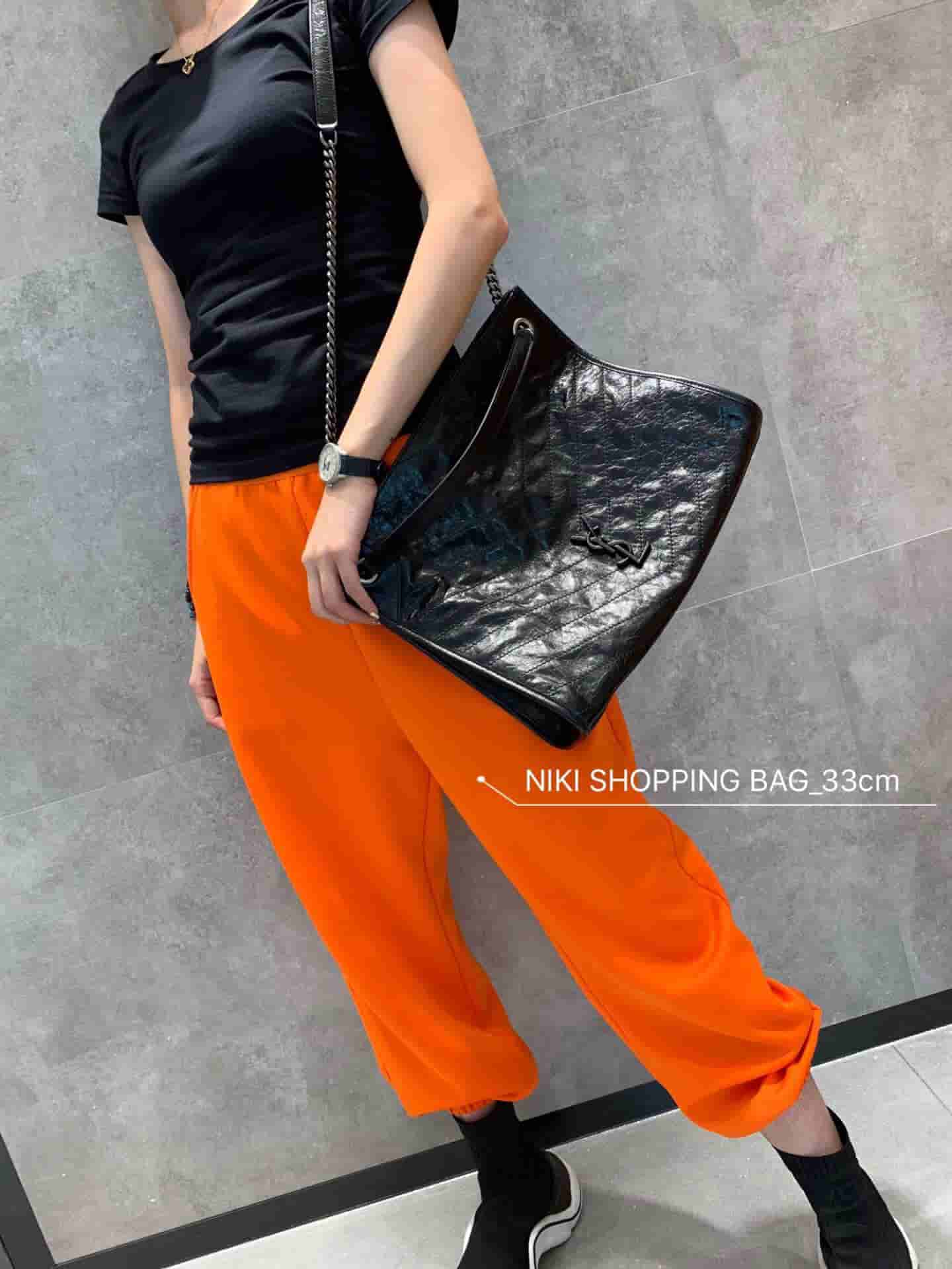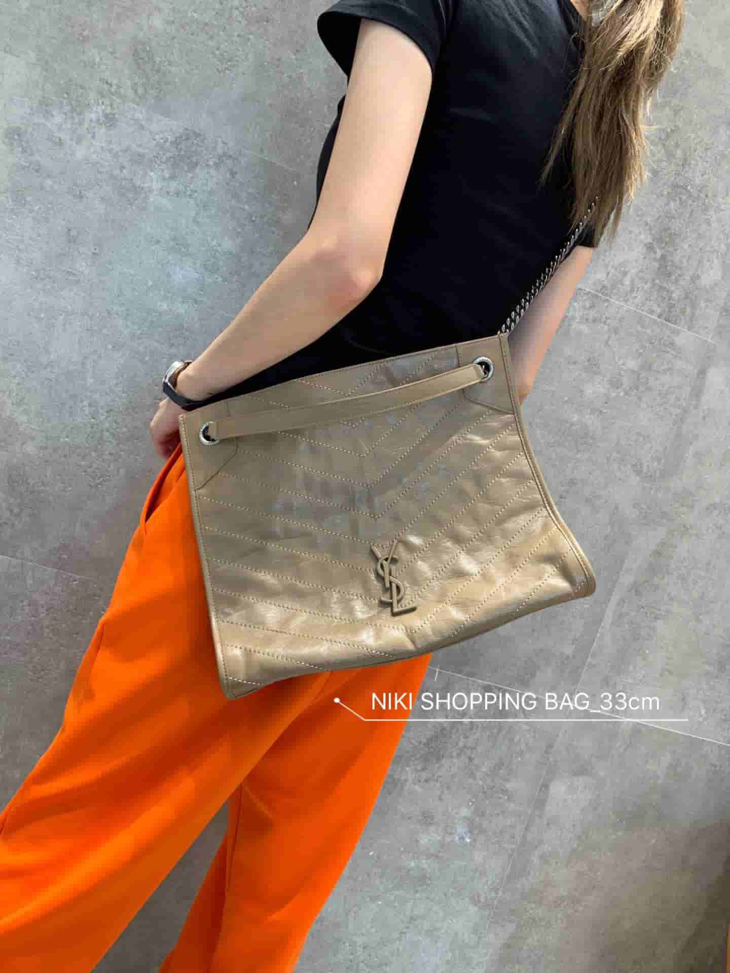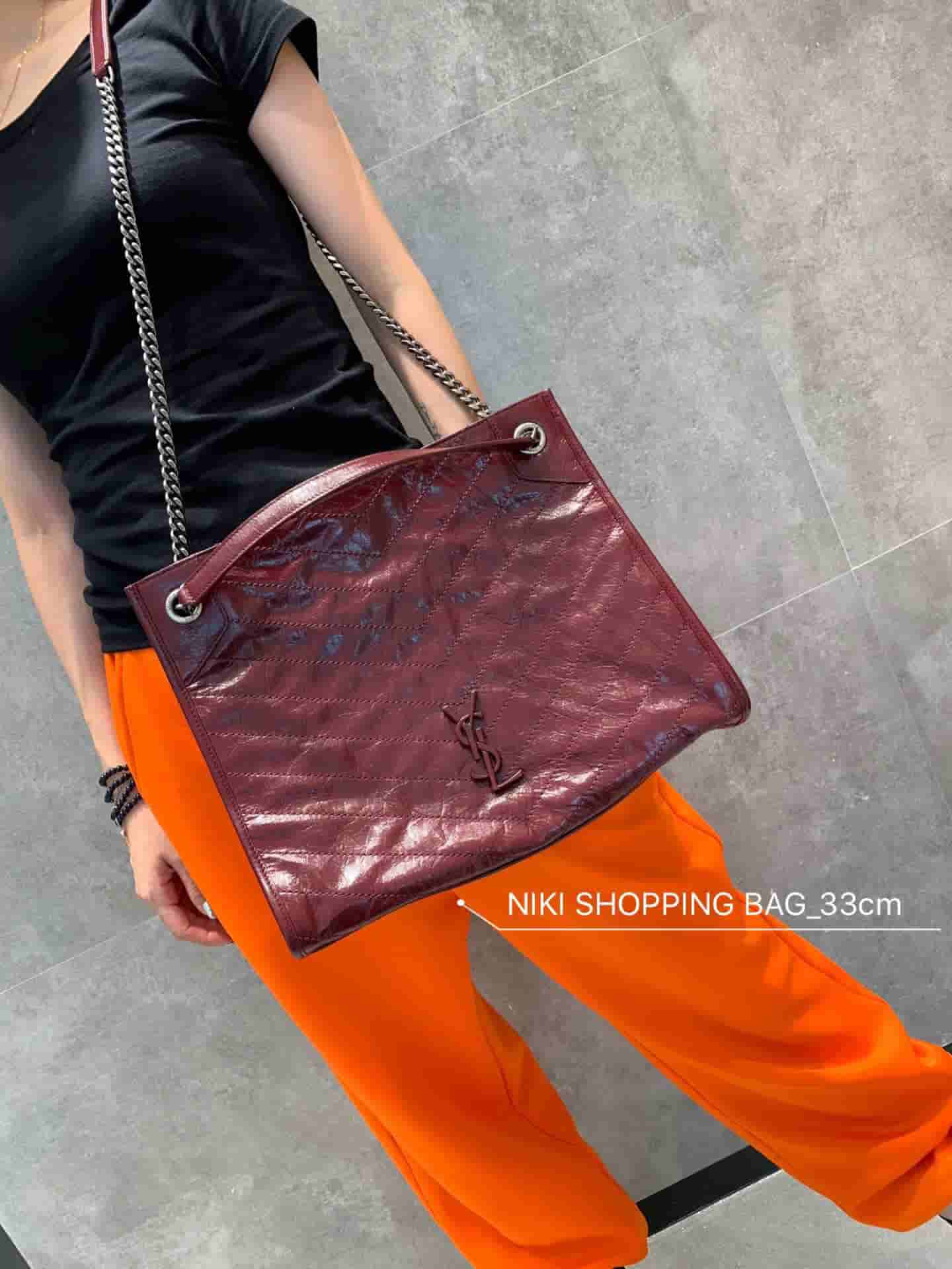 销售冠军NIKI系列又出新品!NIKI SHOPPING BAG,延续Niki风格采用抓皱油蜡牛皮及logo使用真皮包裹设计;包袋中间有磁吸扣,保障了包包使用的安全性;内里有一拉链隔层及敞口插槽设计可放手机及零钱卡片,方便拿取,不会出现因为是大包而出现找不到东西的情况;包包自重非常轻,容量又足够大,公文包、旅行包、购物袋、妈妈包随意切换,实用性爆表!