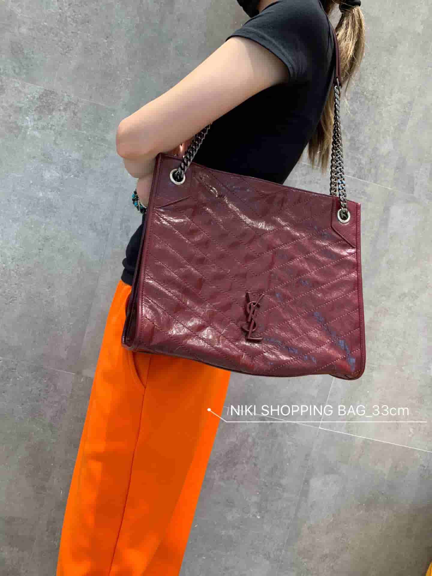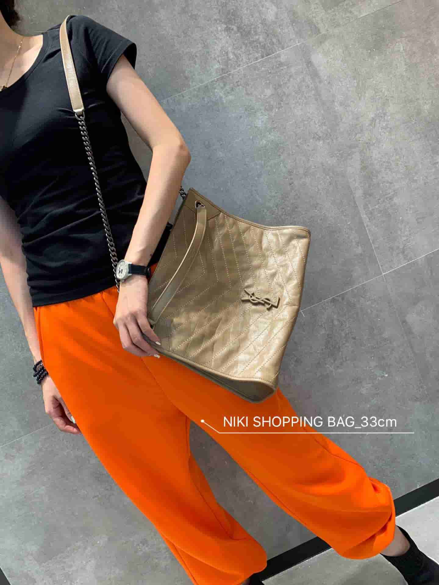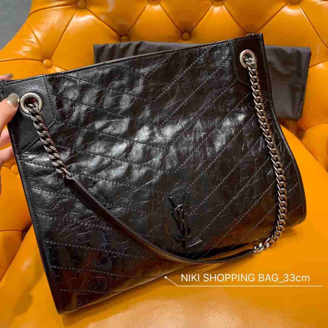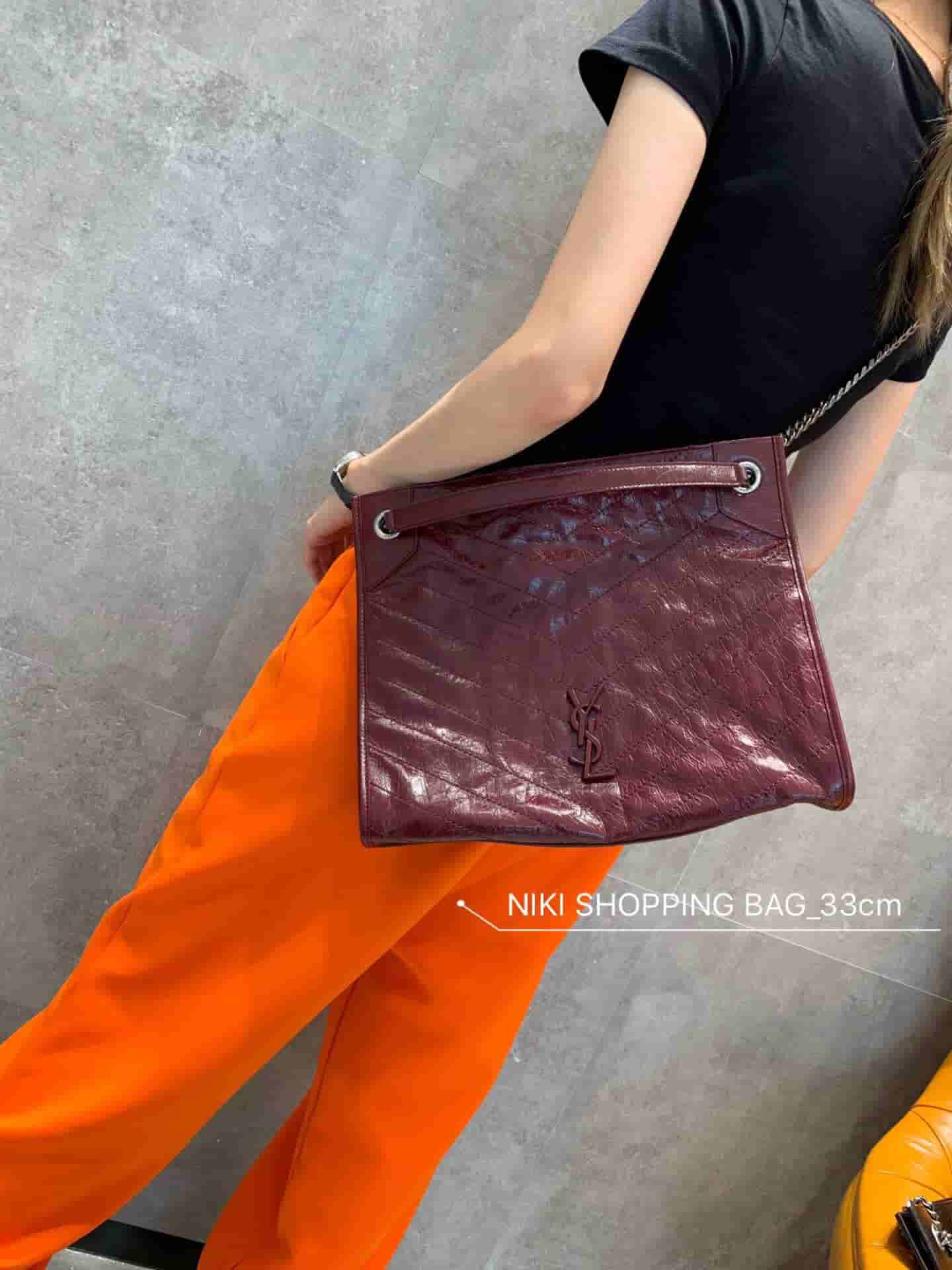 销售冠军NIKI系列又出新品!NIKI SHOPPING BAG,延续Niki风格采用抓皱油蜡牛皮及logo使用真皮包裹设计;包袋中间有磁吸扣,保障了包包使用的安全性;内里有一拉链隔层及敞口插槽设计可放手机及零钱卡片,方便拿取,不会出现因为是大包而出现找不到东西的情况;包包自重非常轻,容量又足够大,公文包、旅行包、购物袋、妈妈包随意切换,实用性爆表!