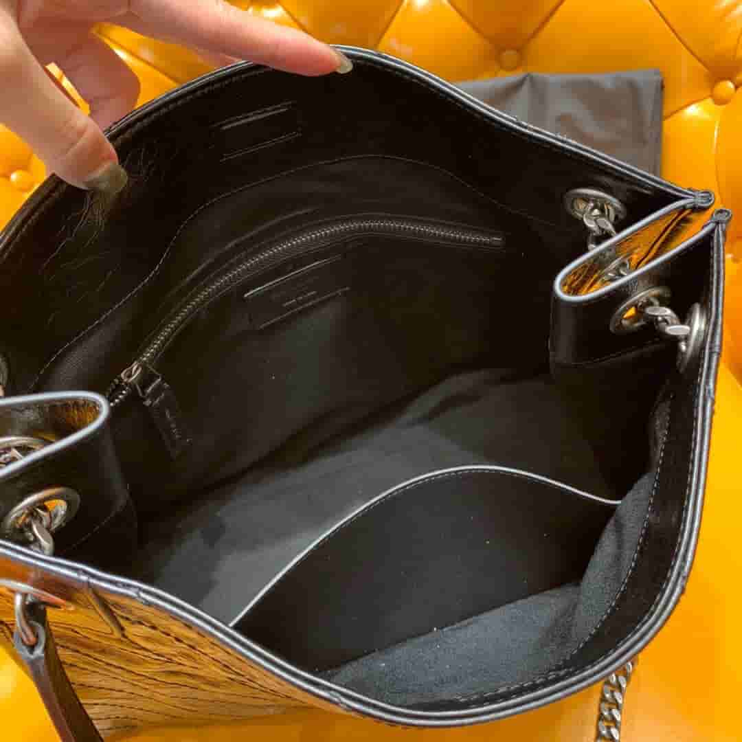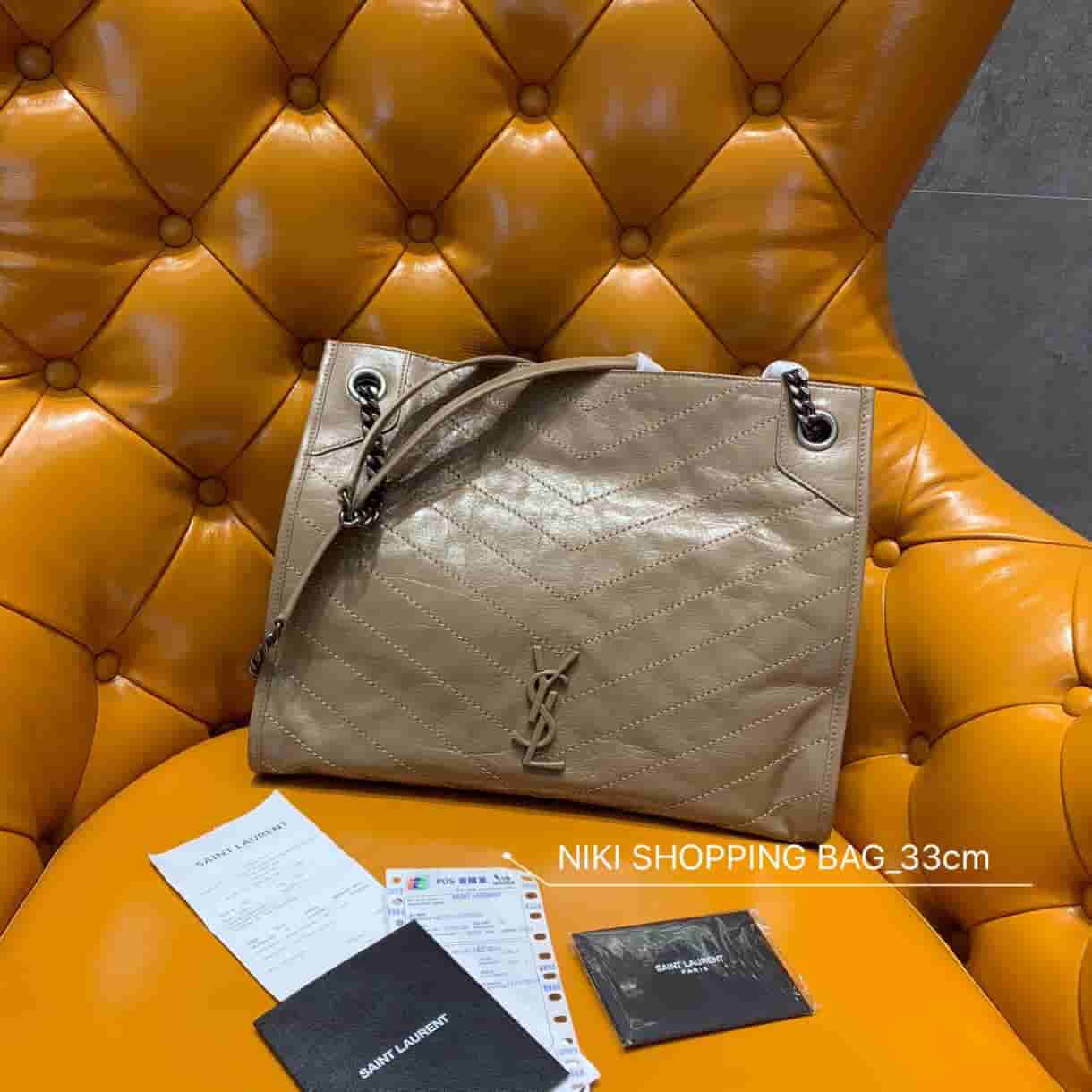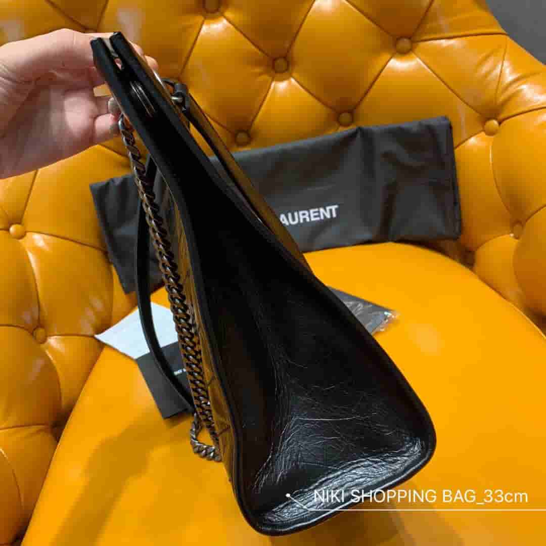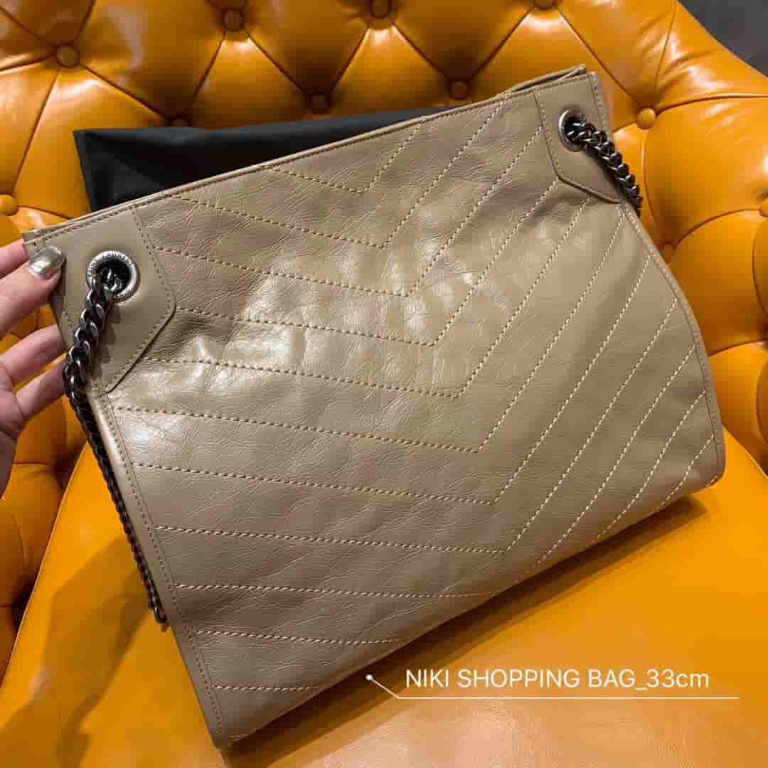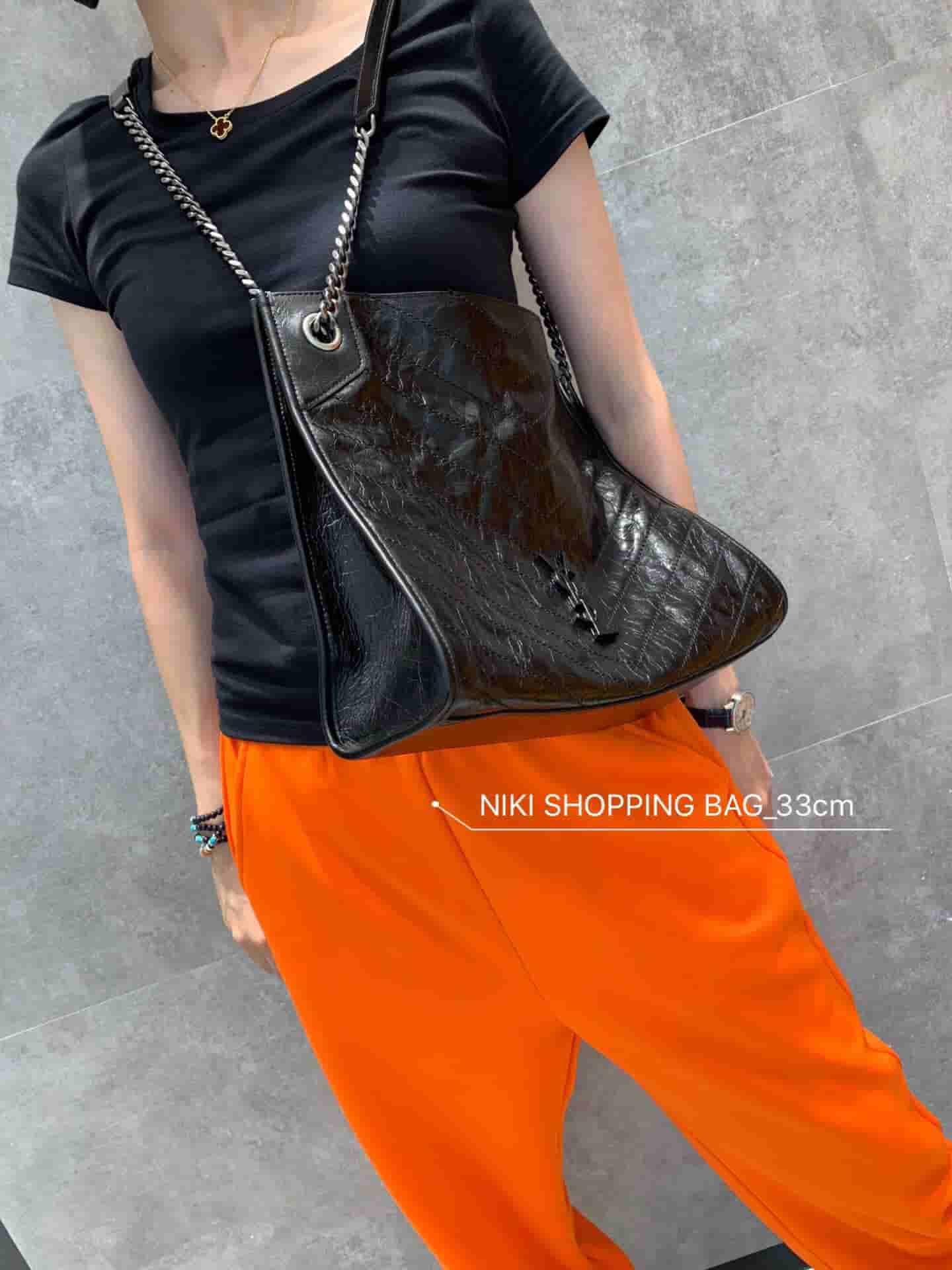 销售冠军NIKI系列又出新品!NIKI SHOPPING BAG,延续Niki风格采用抓皱油蜡牛皮及logo使用真皮包裹设计;包袋中间有磁吸扣,保障了包包使用的安全性;内里有一拉链隔层及敞口插槽设计可放手机及零钱卡片,方便拿取,不会出现因为是大包而出现找不到东西的情况;包包自重非常轻,容量又足够大,公文包、旅行包、购物袋、妈妈包随意切换,实用性爆表!