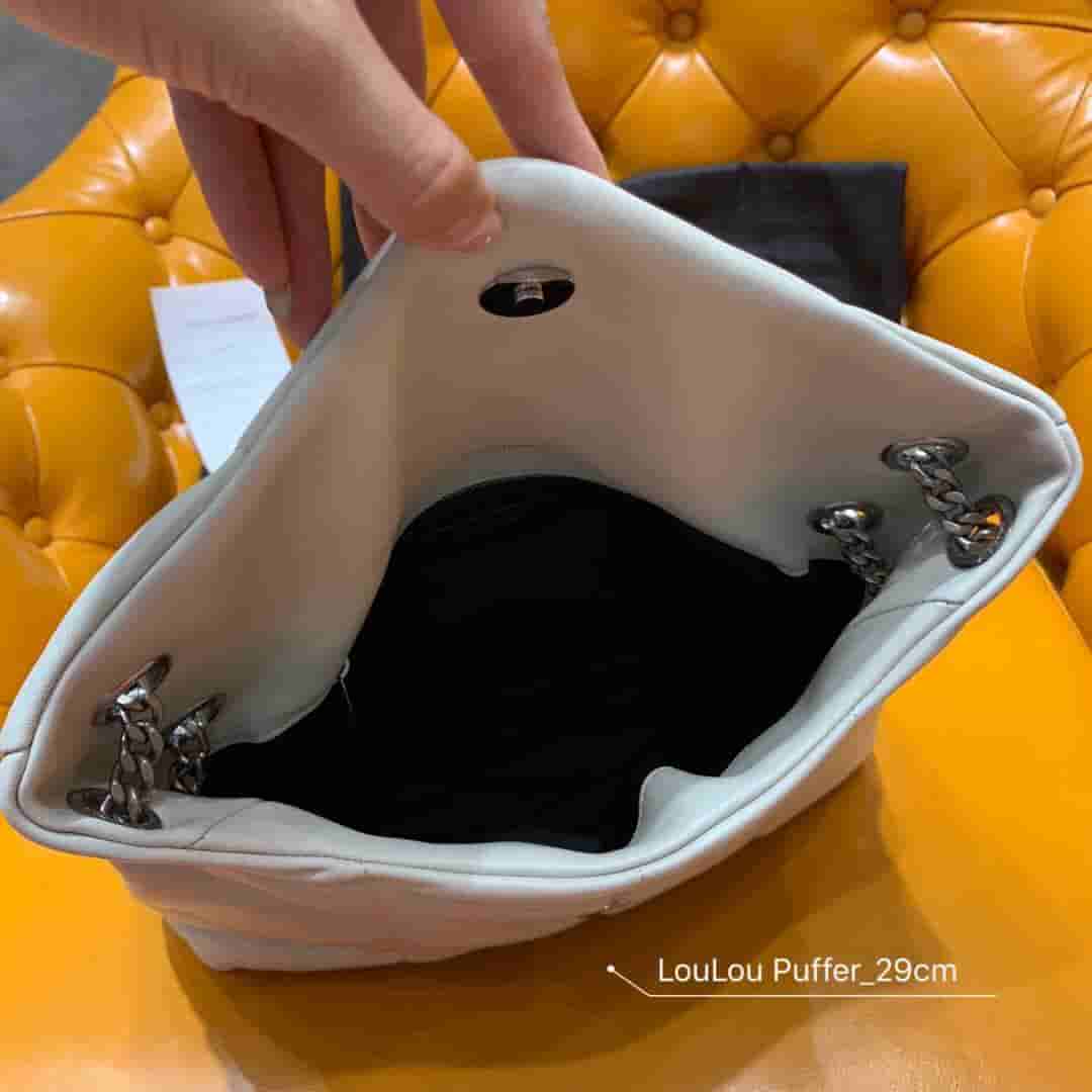 YSL/圣罗兰 LOULOU PUFFER 小号绗缝小羊皮包 577476 2019年7月23日 13:06:02👜奢侈品评论2,346阅读模式 SAINT LAURENT 字母标志包,饰以 YSL 金属标志,配以可双折后单肩使用的真皮链条肩带。 尺寸 29.0 17.0 11.0 CM 100% 羊皮 银色拉丝金属饰件 罗缎衬里 磁性四合扣封口 一个拉链内袋 肩带长度:52厘米 折叠后肩带长度:28厘米 货号 5774761EL001000 意大利制造 点赞 登录收藏 https://www.paizishop.com/shepin/2019/07/23/19697.html 复制链接 复制链接