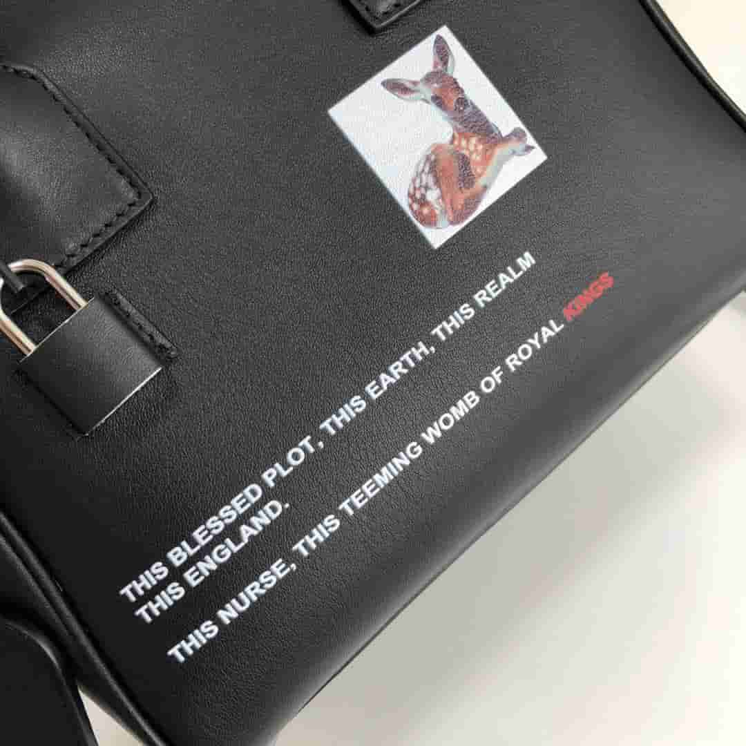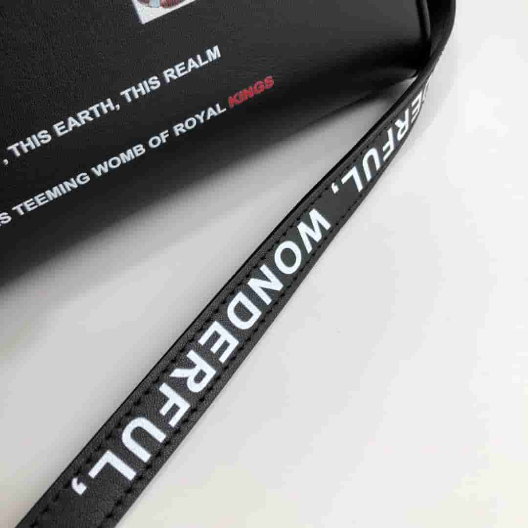 时装秀款保龄球包「Cube - 立方包」,焕新精选光滑的意大利鞣制皮革打造,装饰时装秀款图案,包括来自莎士比亚「理查德二世」的经典名句,搭配顶部轧制提柄与可拆式肩背带。