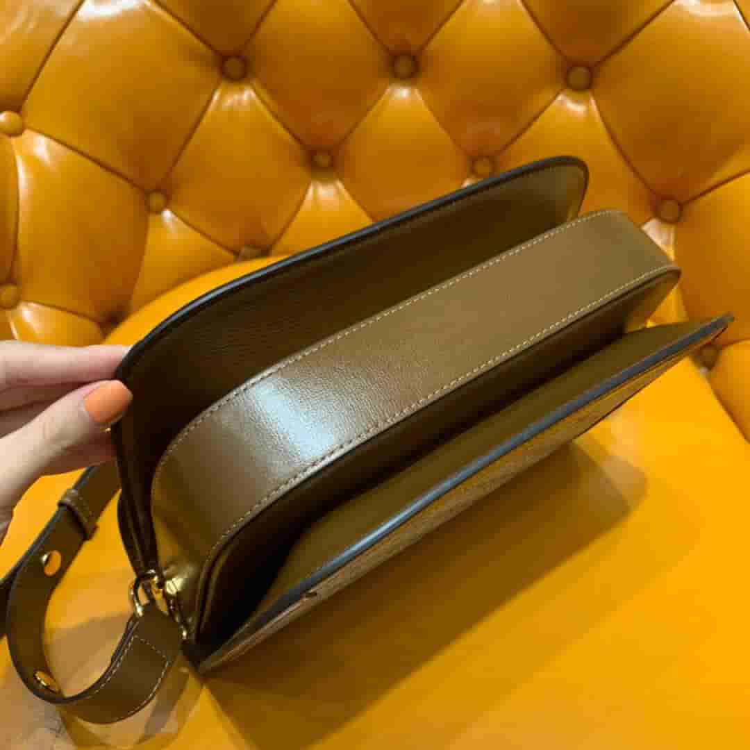 Gucci 1955马衔扣手袋在2020早春系列中惊艳亮相,以全新视角演绎经典设计。这一手袋延用了六十余年前经典单品的线条与造型,将经典细节与现代精神巧妙融合,强调了马衔扣这一品牌标志性设计元素。灵感源自马术世界的双环和连接条两个元素构成的这一设计图案已经成为品牌最耀眼的标志性元素之一。在这款小号翻盖肩背包上,这一配件与品牌标志性的双G字母交织图案织物材质相映成趣,同时配以可调节肩带,可在肩背和斜跨之间自由转换。