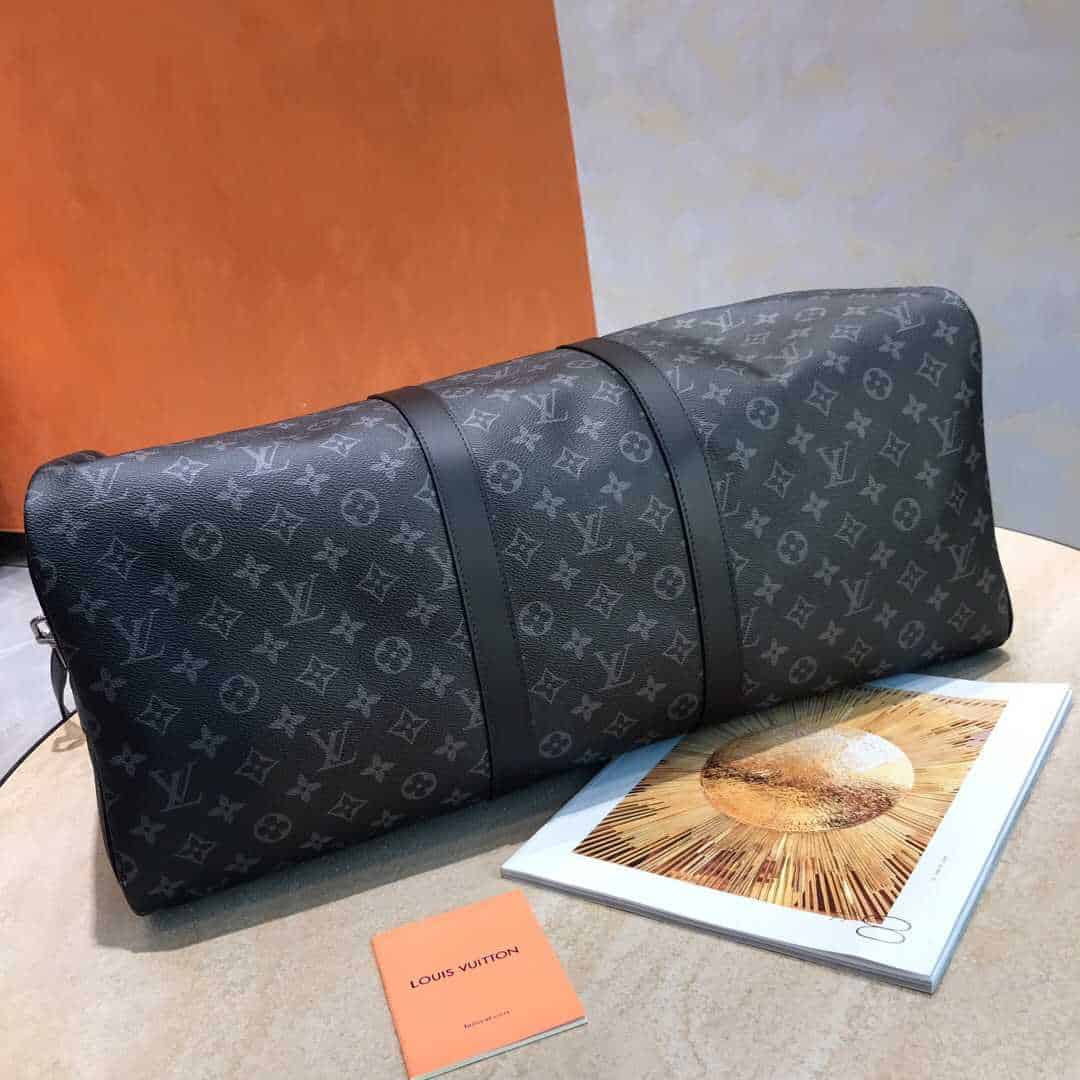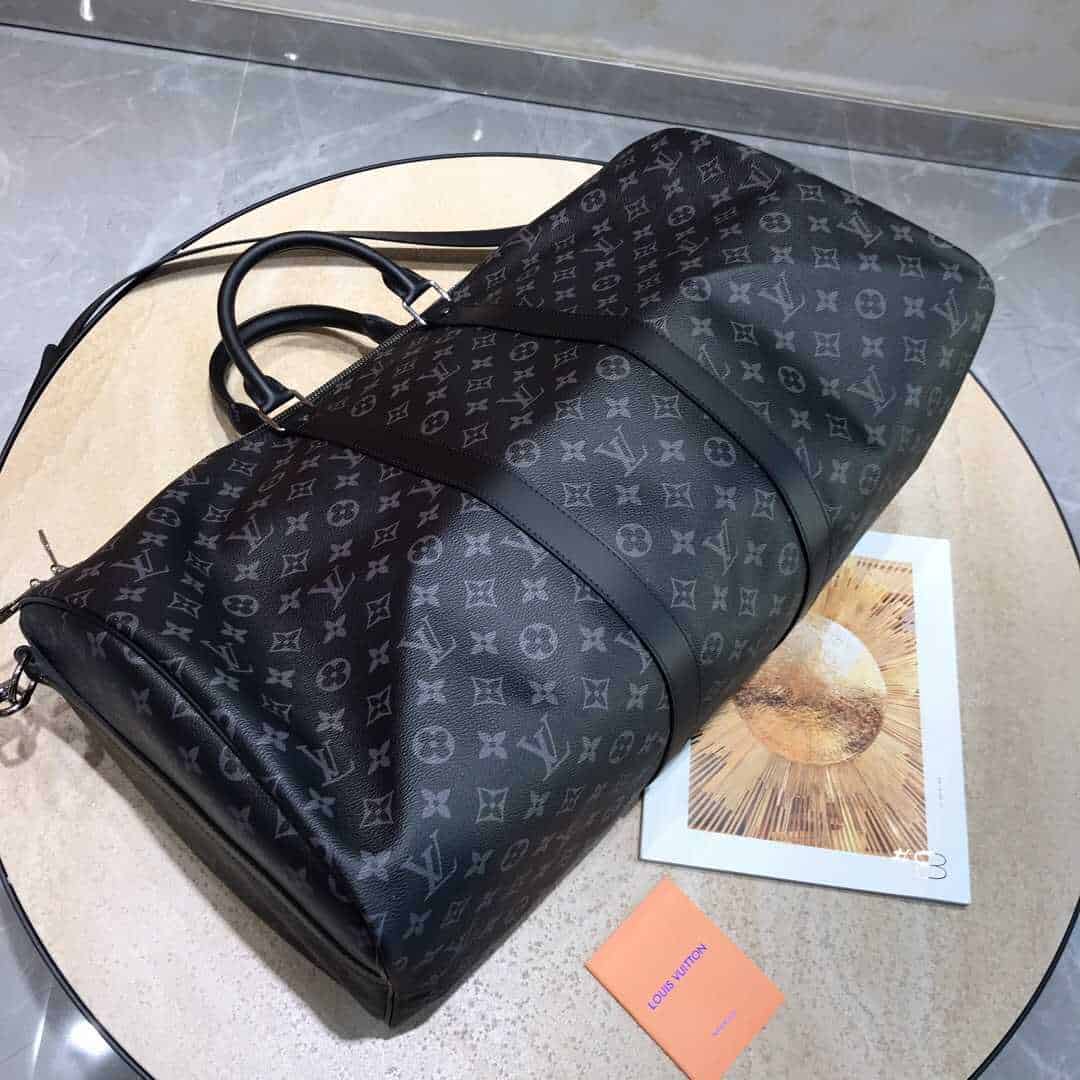 备受喜爱的Keepall 55旅行袋,由全新标志性黑灰Monogram Eclipse帆布裁制而成。容量大且轻便易携带,可谓名符其实的Keepall。精通整理之道的旅行者能够轻松地将一周的换洗衣物装进此款大号Keepall 55旅行袋中。