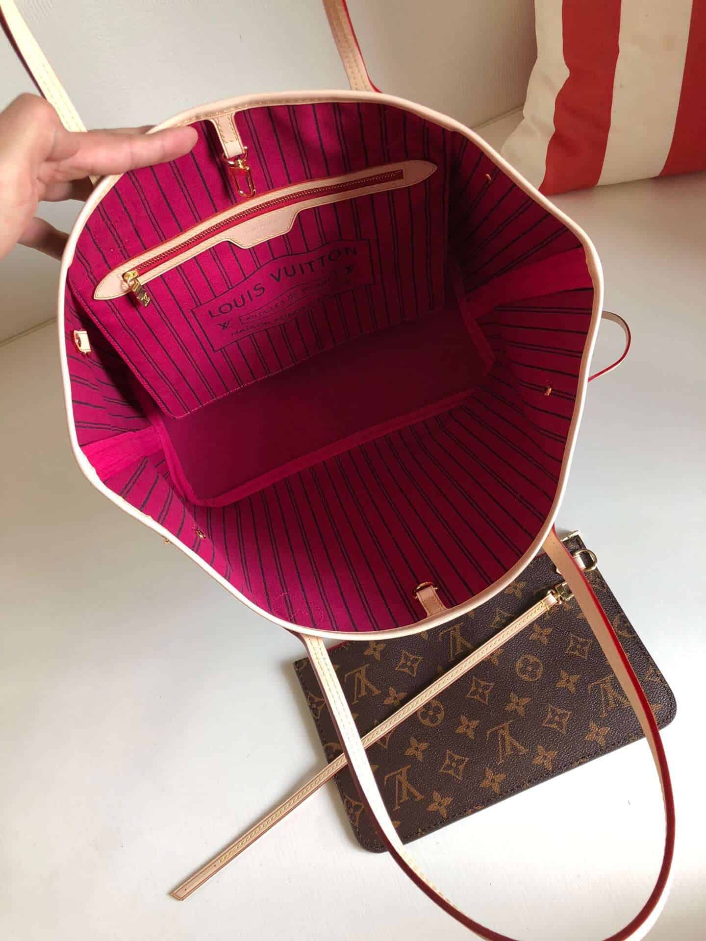 LV NEVERFULL 中号手袋购物袋 M41178 玫红内里