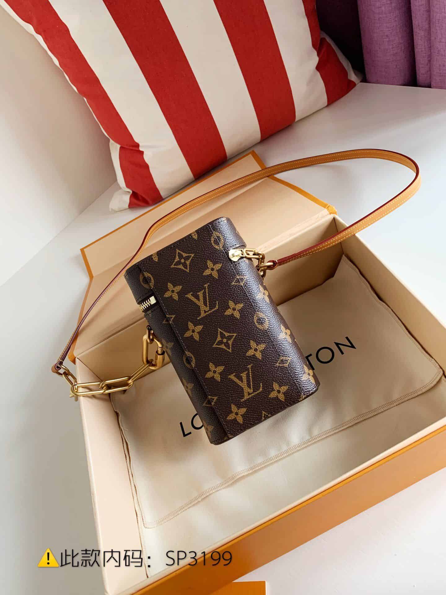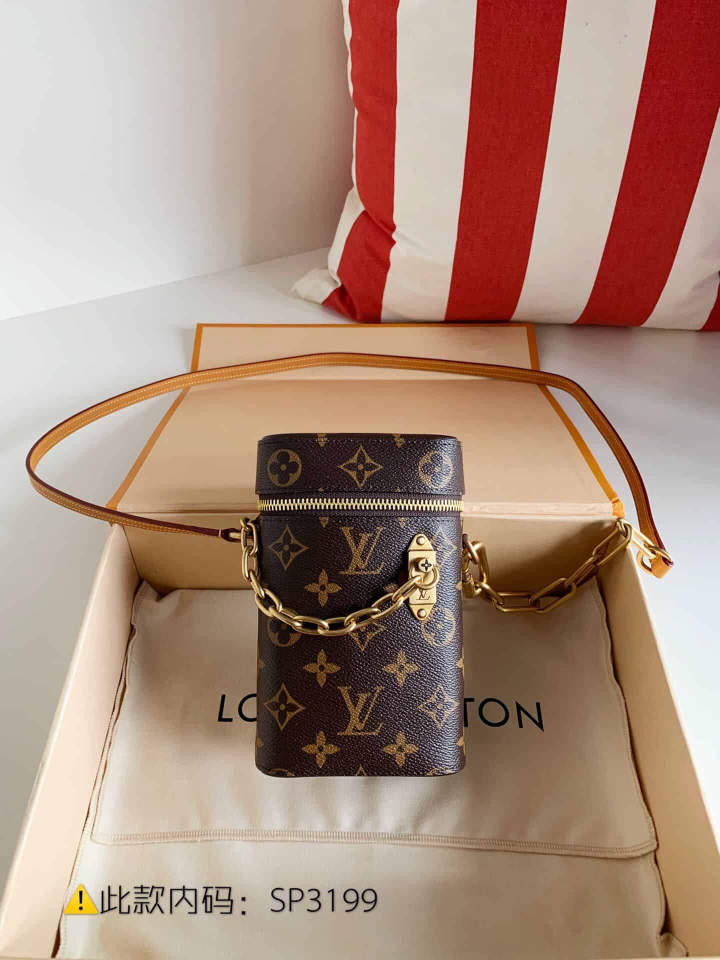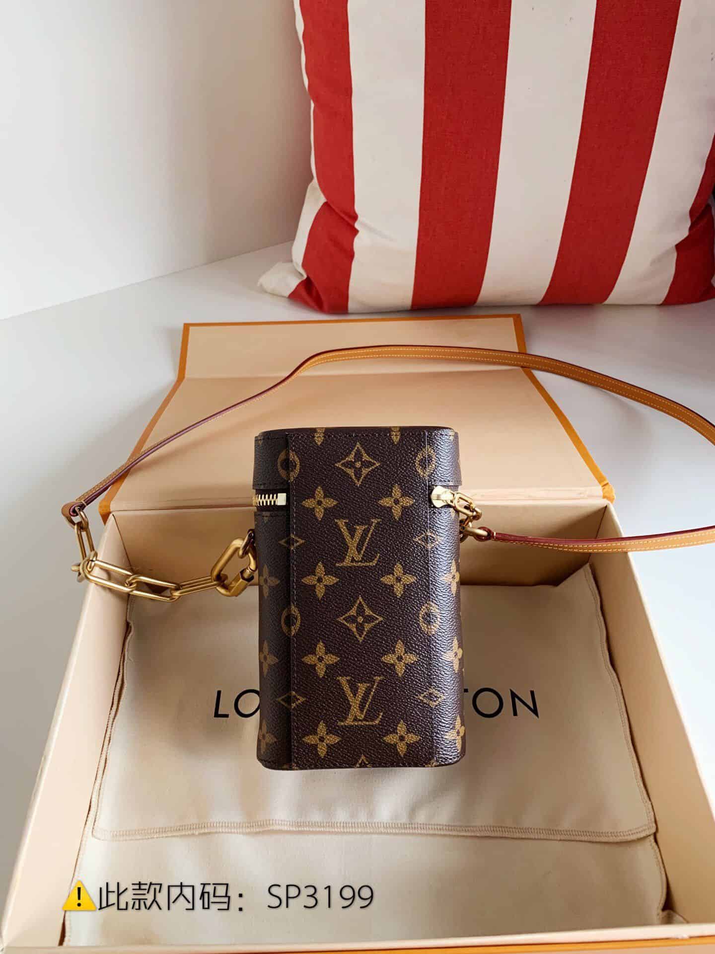 路易威登男装艺术总监Virgil Abloh推出全新Phone Box手袋,造型小巧精致,方便收纳小件必需品。经典Monogram帆布面料,配有光滑的可调节皮质肩带,并饰有Virgil Abloh亲自设计的标志性金色链带。内置小号贴袋,方便收纳信用卡及驾驶证。