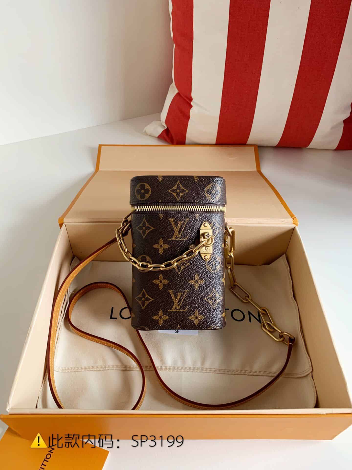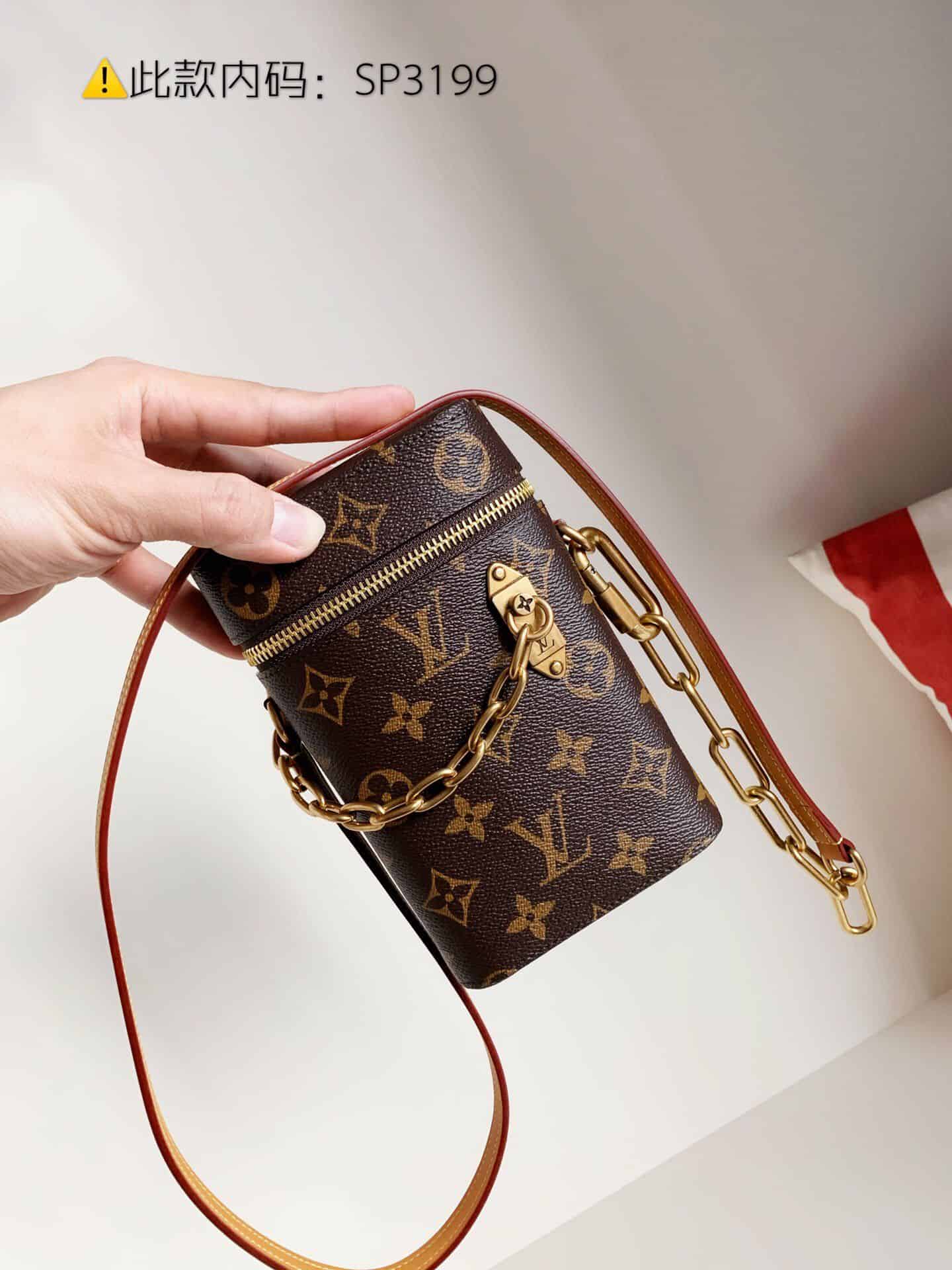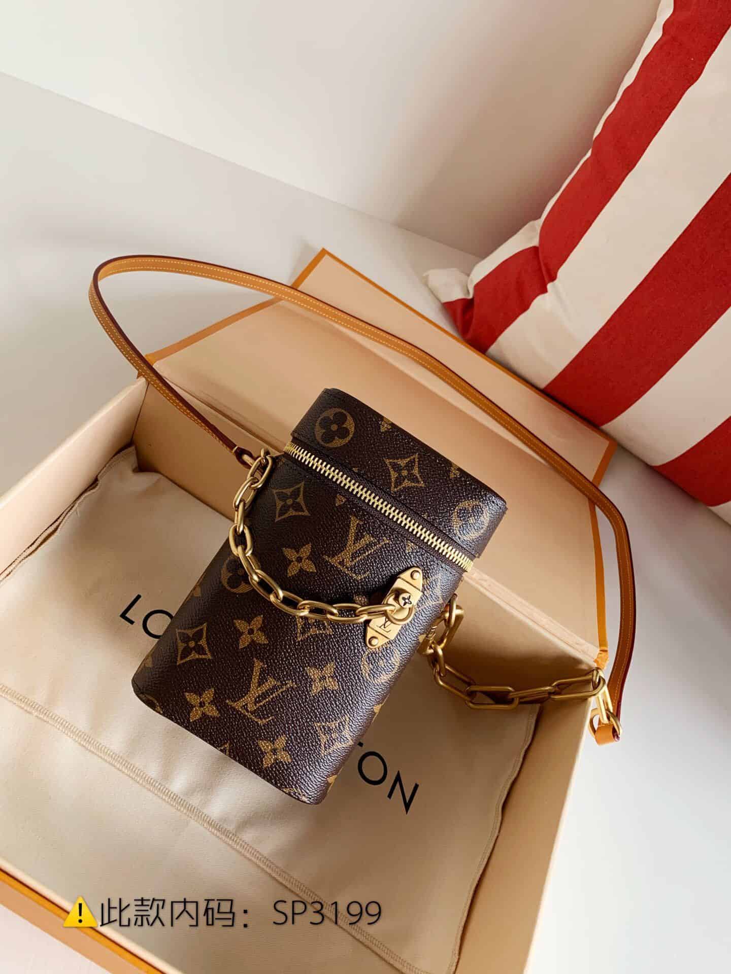 路易威登男装艺术总监Virgil Abloh推出全新Phone Box手袋,造型小巧精致,方便收纳小件必需品。经典Monogram帆布面料,配有光滑的可调节皮质肩带,并饰有Virgil Abloh亲自设计的标志性金色链带。内置小号贴袋,方便收纳信用卡及驾驶证。
