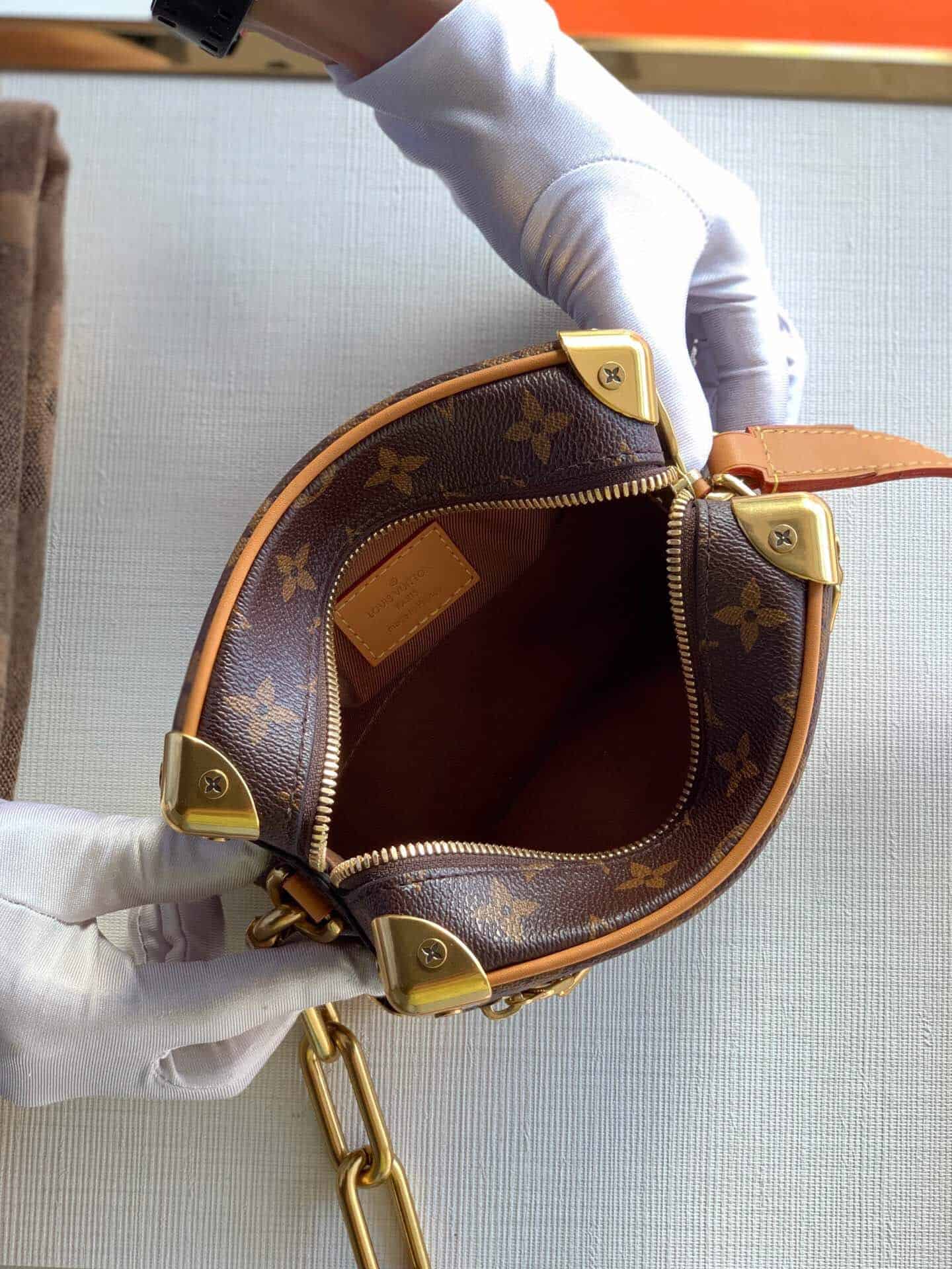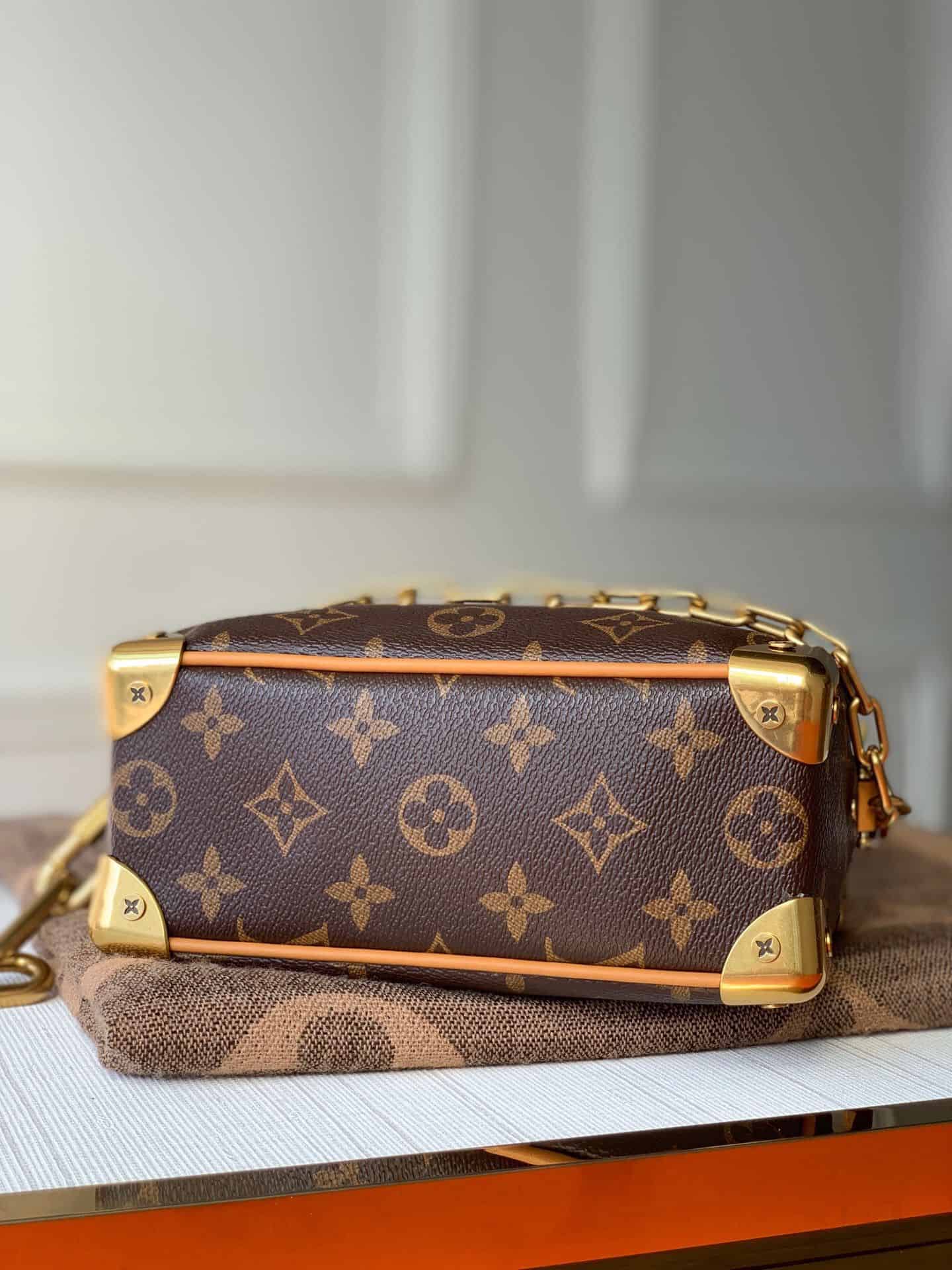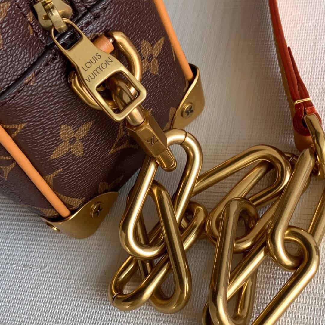 标志性Monogram印花搭配对比色树脂链带,男装艺术总监Virgil Abloh为这款Mini Soft Trunk手袋赋予路易威登经典外观。此款箱形手袋棱角分明,金属包角,生动体现路易威登的制箱传统。与拉链相连的金色链条散发现代气息。