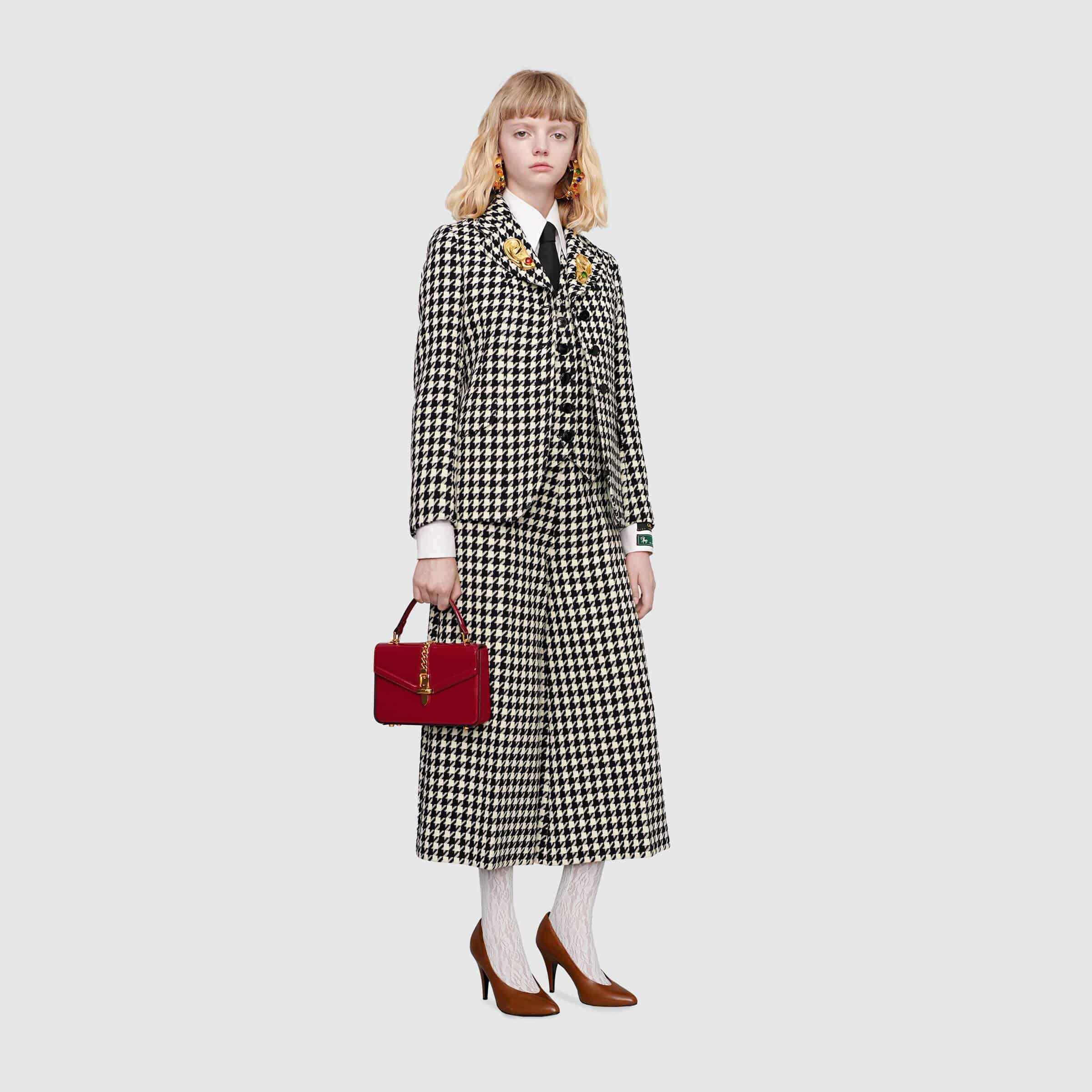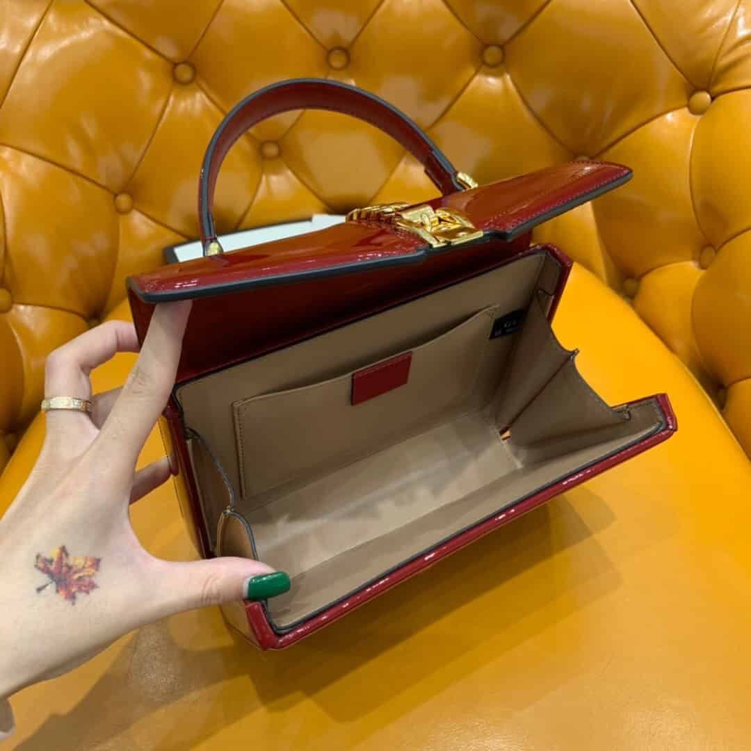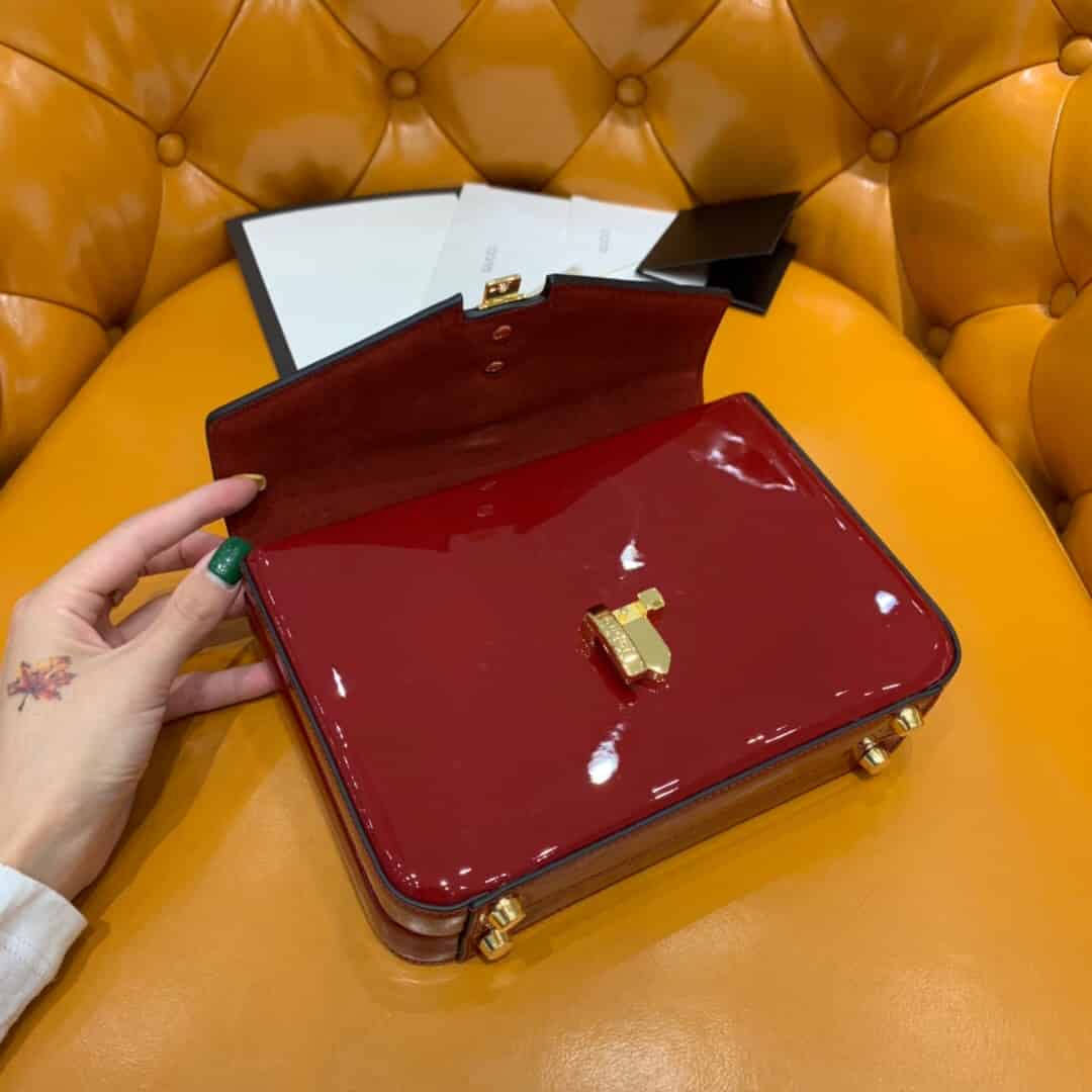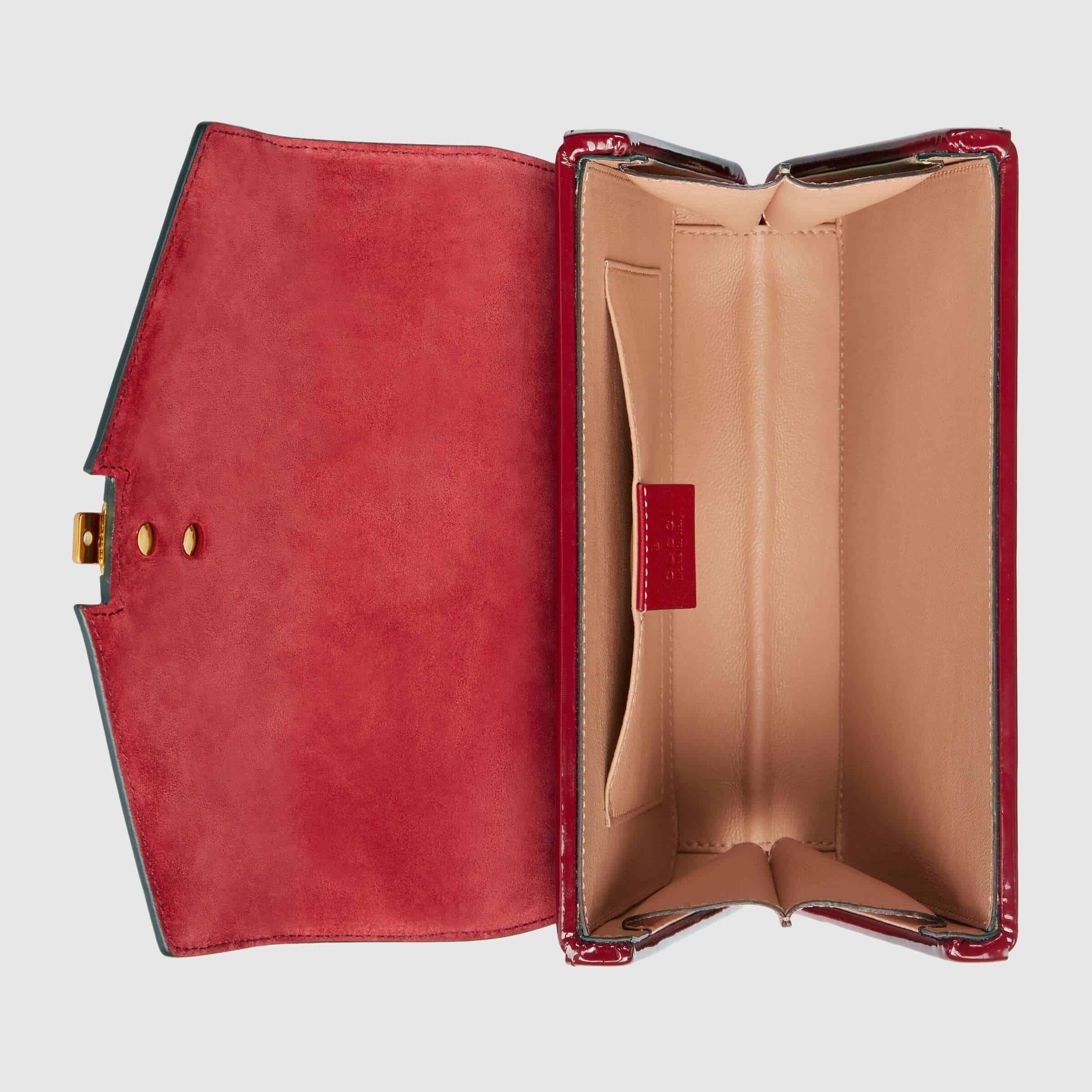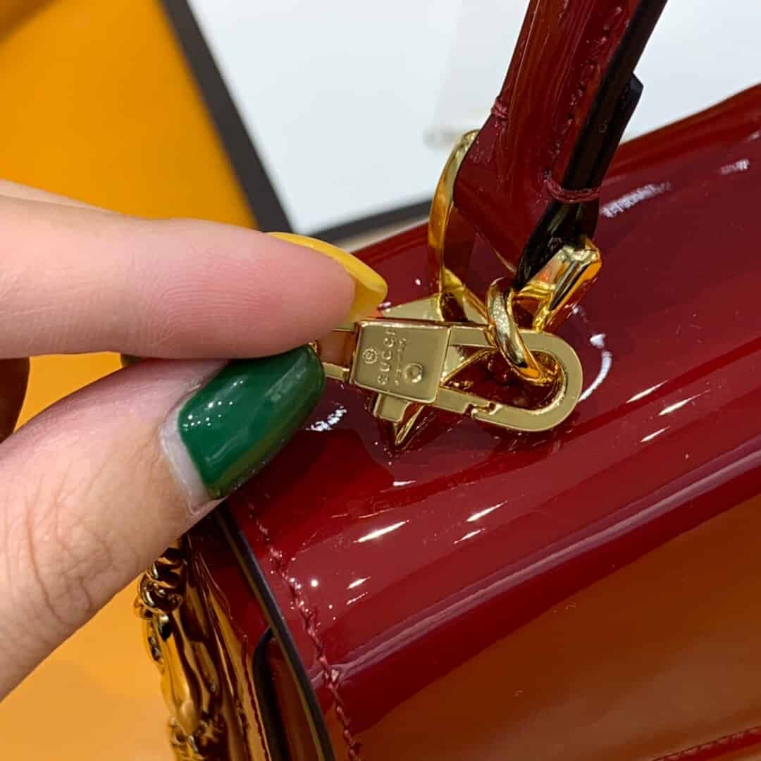 源自20世纪60年代和70年代的 Gucci 典藏造型再度登场,以光润红色漆皮制成这款现代风迷你手袋,衬托女性的柔美气质。Sylvie 1969系列迷你手袋致意经典,将金色调金属链收窄,形成从手袋正面流畅而下的精致点缀。顶部提手造型,附带可拆卸金色调船锚链肩带。