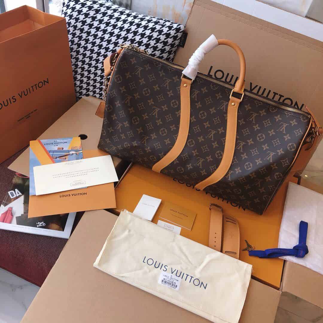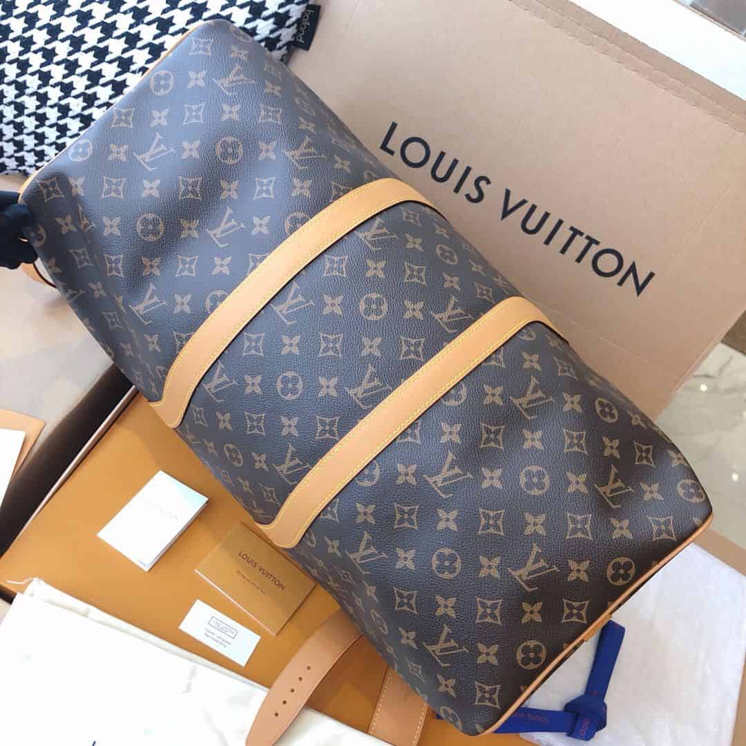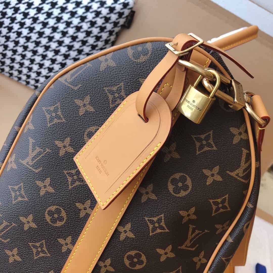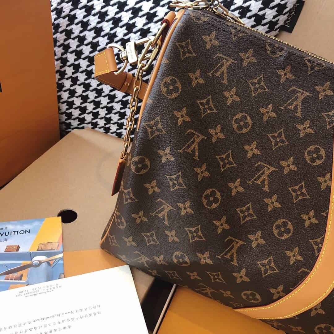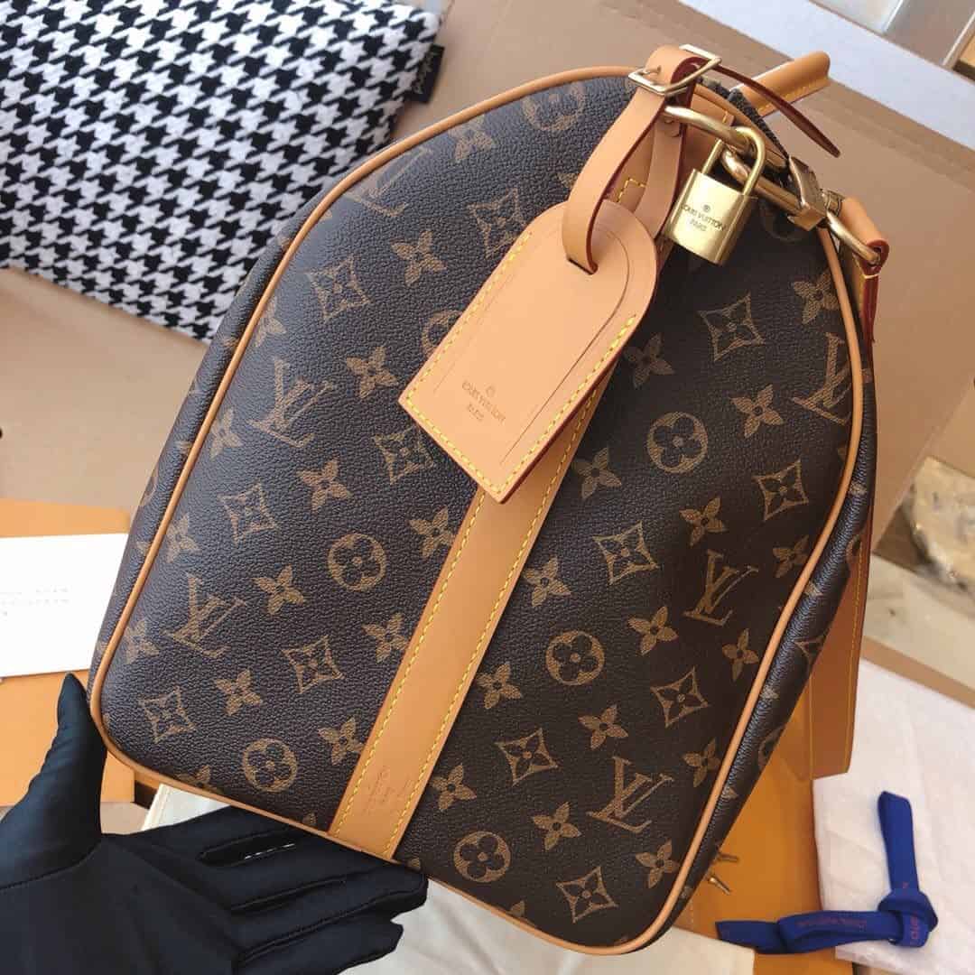男装艺术总监Virgil Abloh从历年设计中寻找灵感,为2020年春夏早期系列推出这款采用标志性Monogram帆布与天然皮革并配有做旧金色饰件的Keepall Bandoulière 50旅行袋颠覆传统Keepall手袋设计,这款旅行袋侧面的皮质包带呈现出有趣的波浪形。