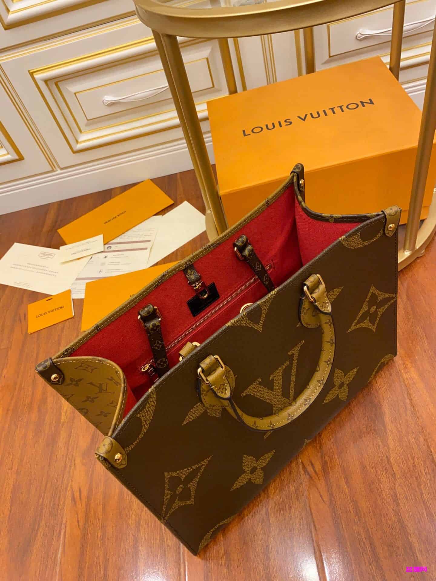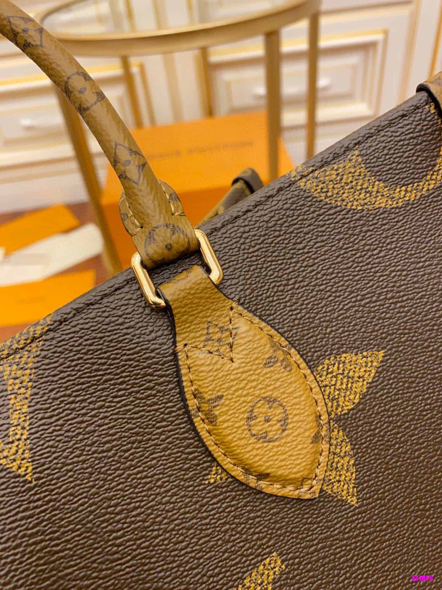 Onthego 中号手袋将经典 Monogram 帆布与 Monogram Reverse 帆布分饰两侧,迥异风尚随心呈现。Toron 双手柄与肩带实现多种背携方式。