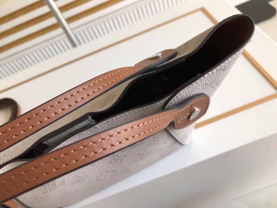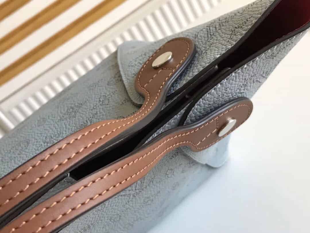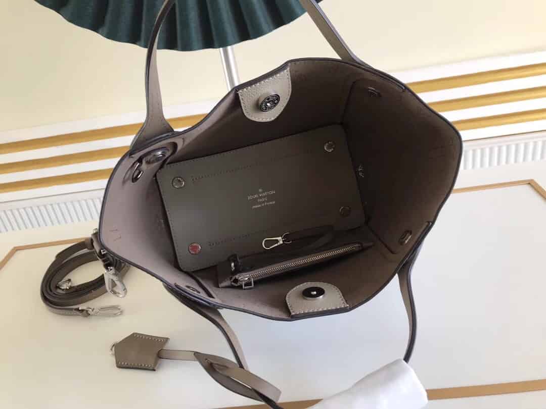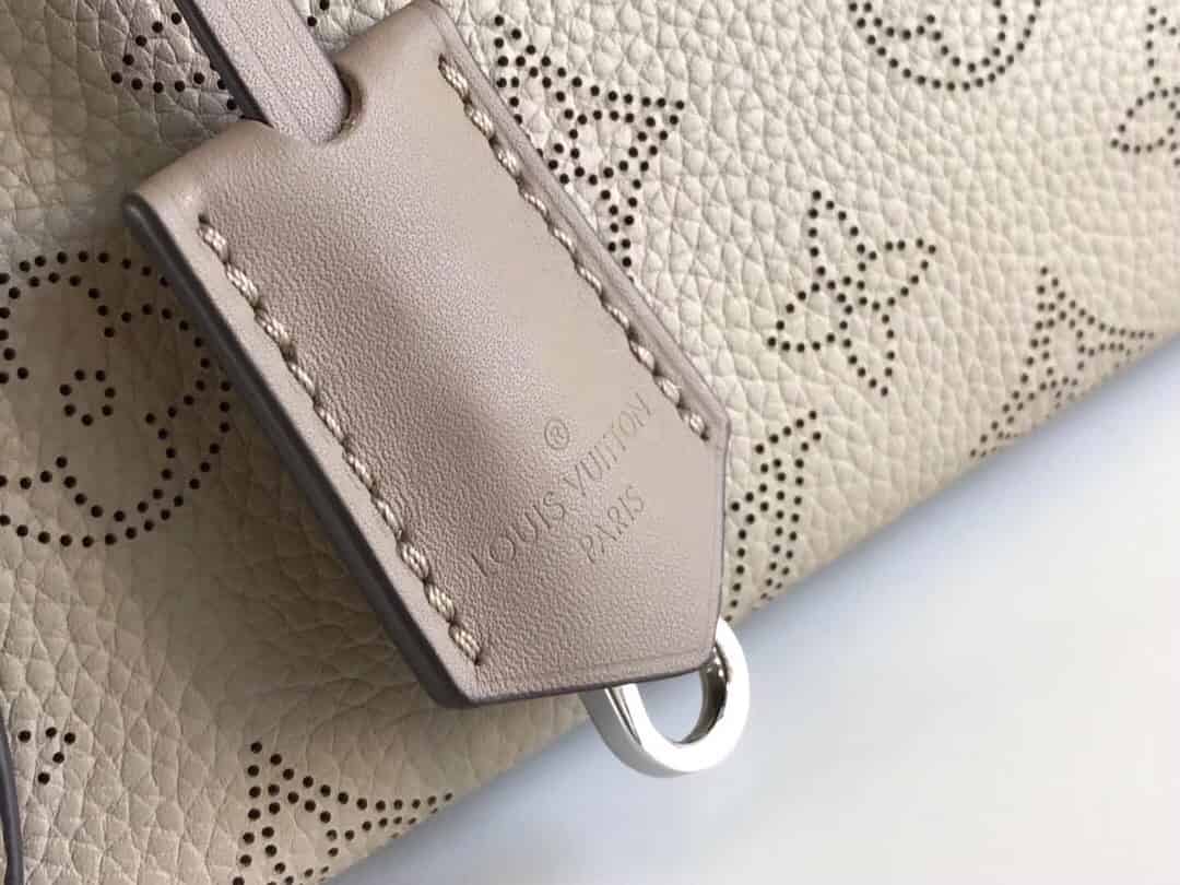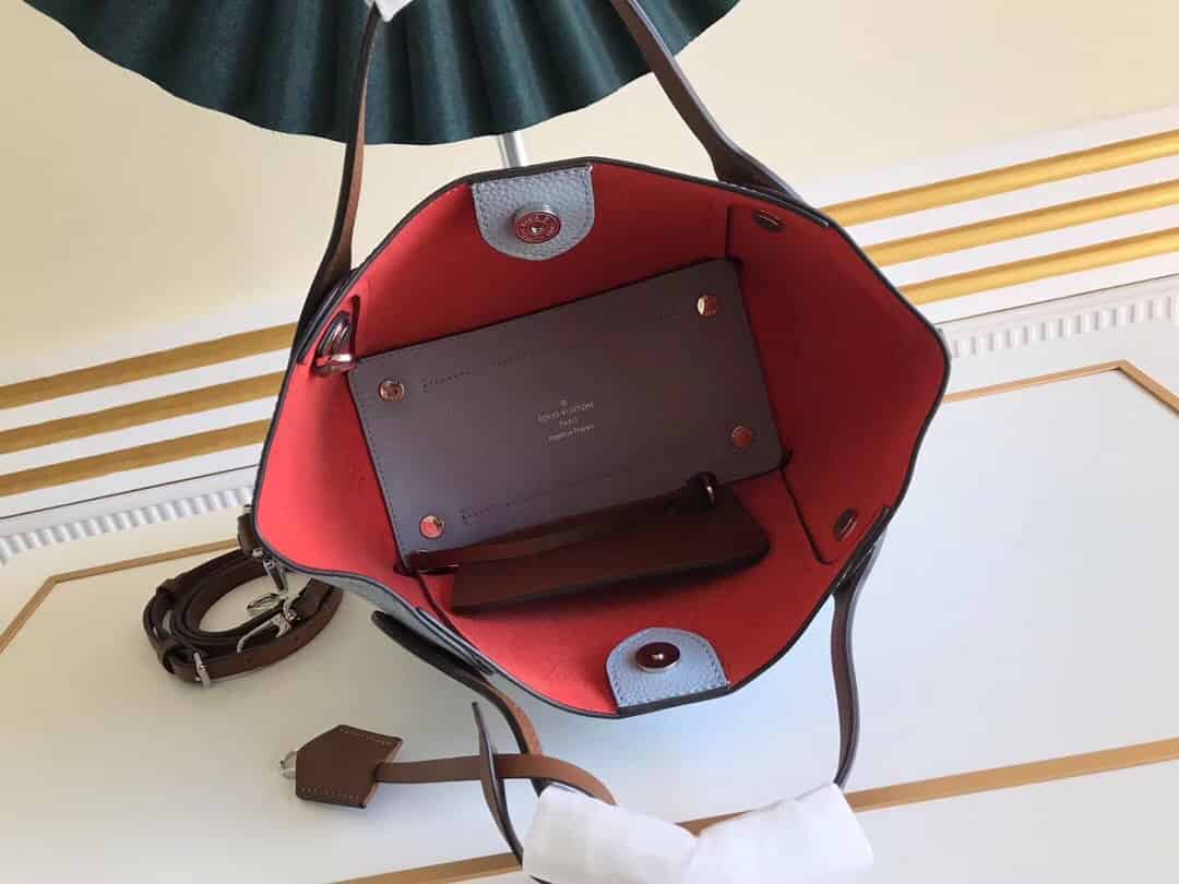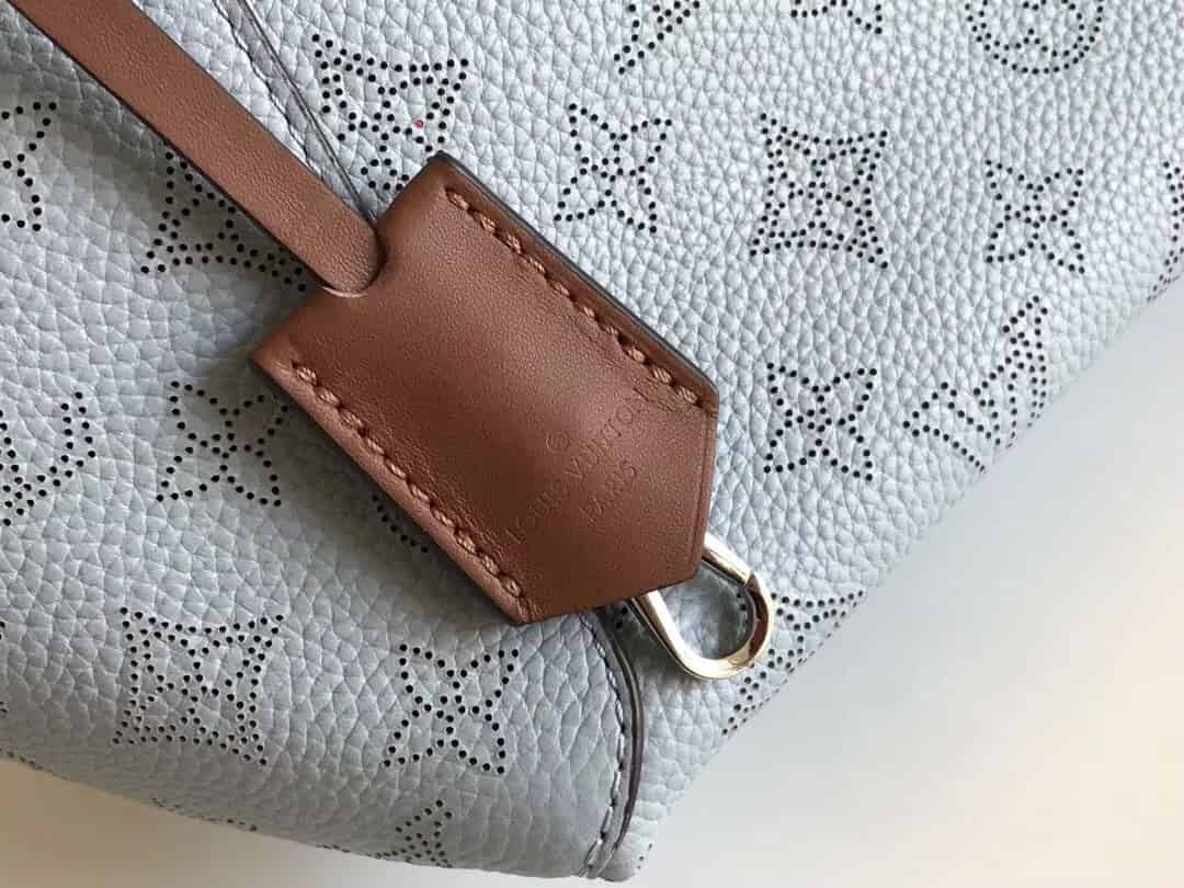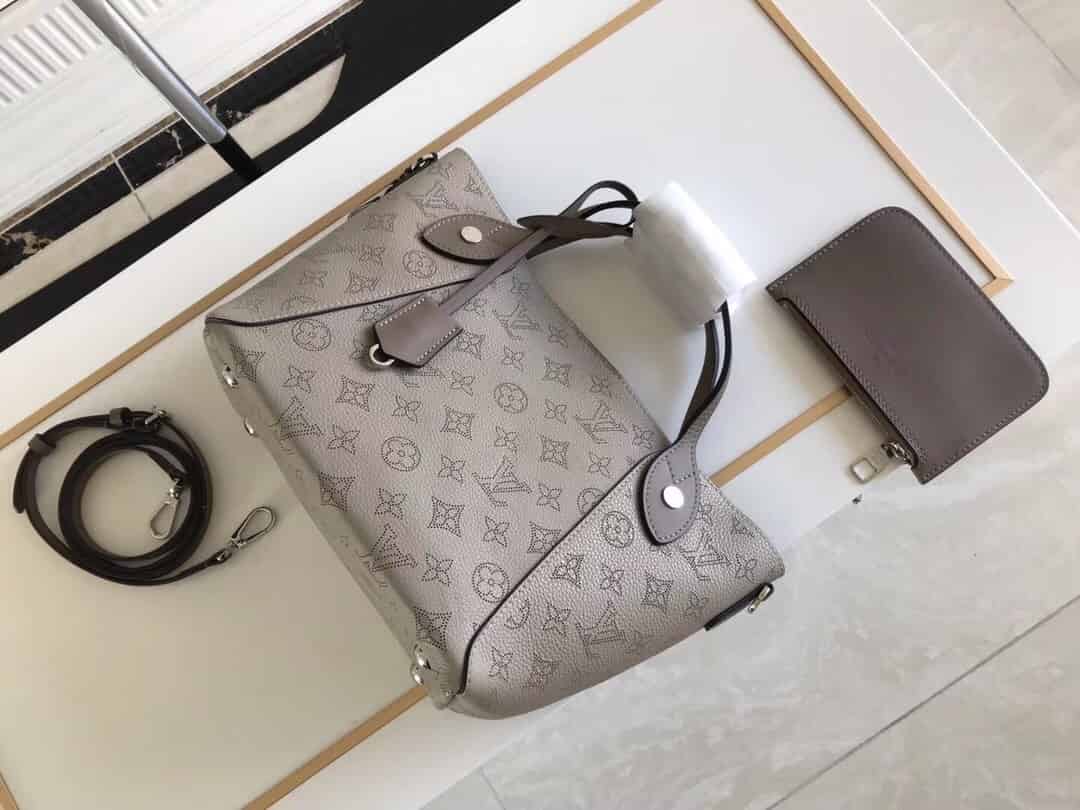 一只 Hina 小号手袋,两式设计:双侧收紧,呈现潮流水桶包;双侧展开,化身闲适 Tote 包。镂花穿孔小牛皮与小牛皮饰边造就轻盈构型,两只顶部手柄与可拆卸肩带实现舒适背携体验。