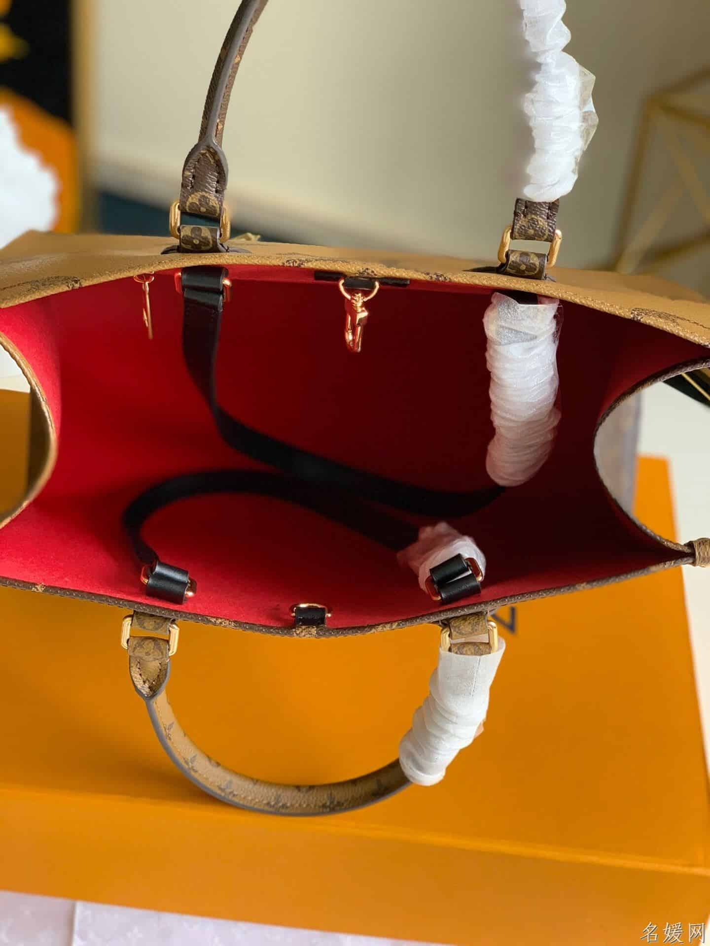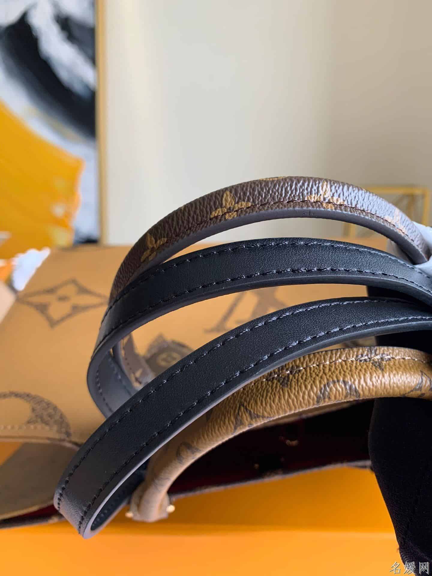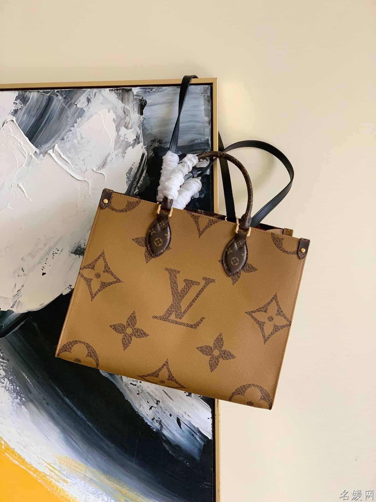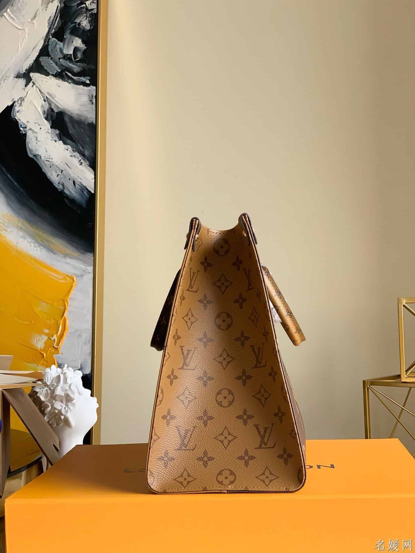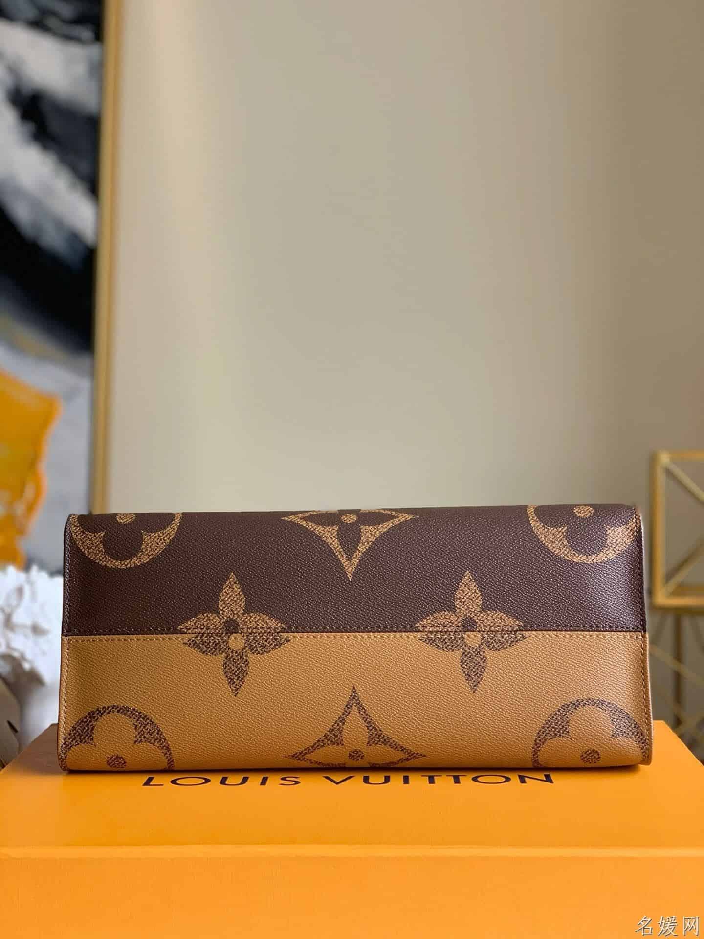 Onthego 中号手袋将经典 Monogram 帆布与 Monogram Reverse 帆布分饰两侧,迥异风尚随心呈现。Toron 双手柄与肩带实现多种背携方式。