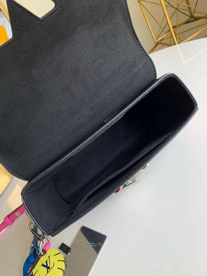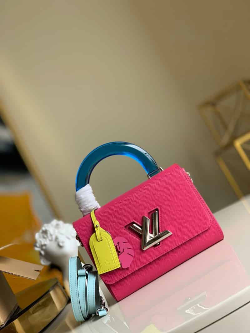 2020 年夏季,路易威登以绚丽色彩重绎品牌经典。本款 Twist 中号手袋取材深染 Epi 皮革,搭配有机玻璃手柄和炫彩名牌及挂饰,更有 LV Twist 扭锁传递标志性格调。可拆卸皮革肩带实现多种背携方式。