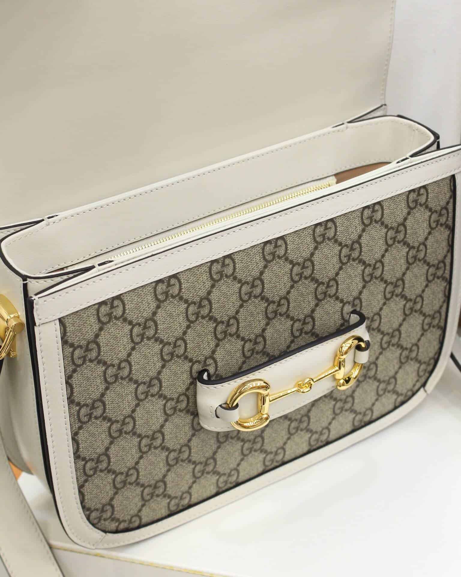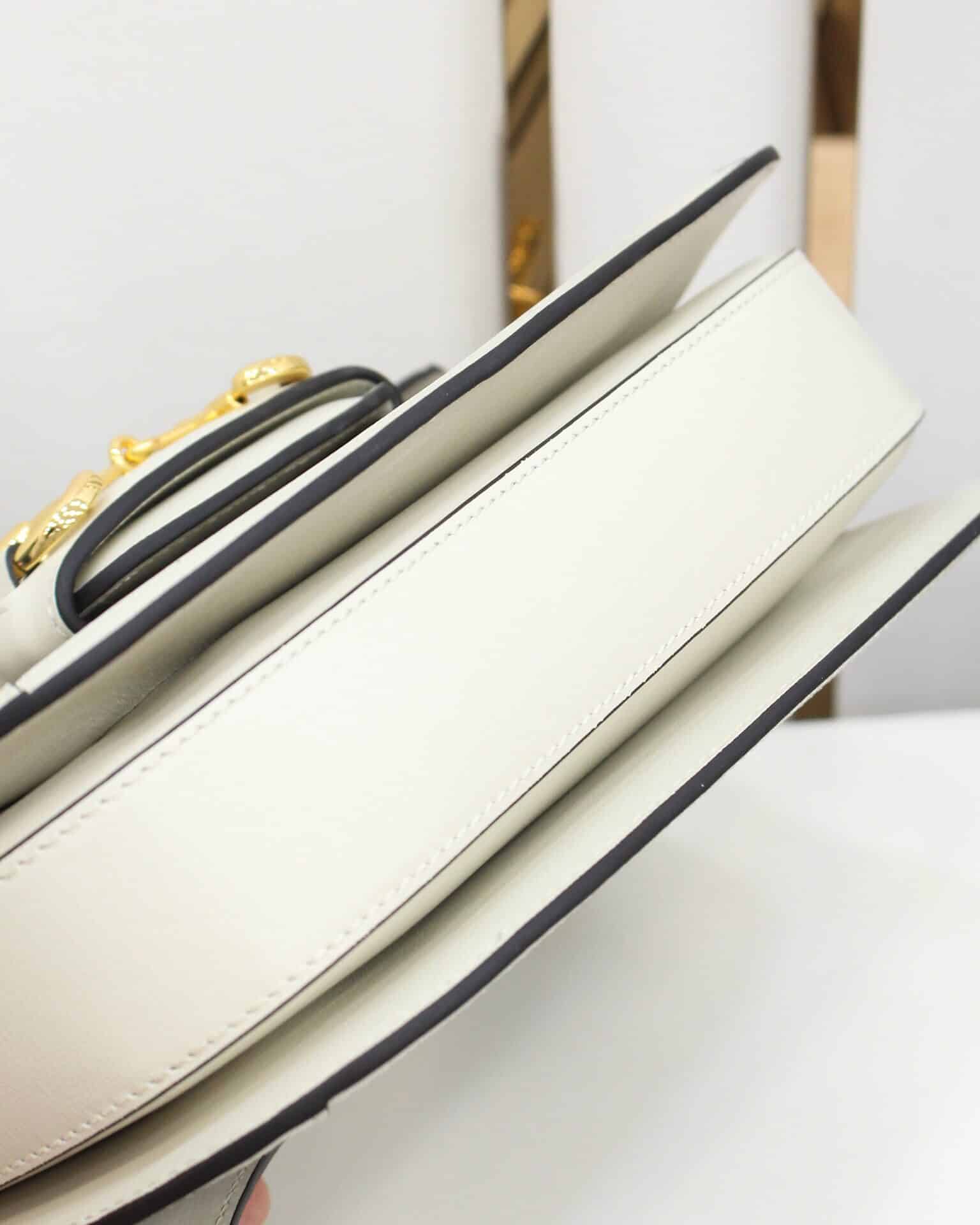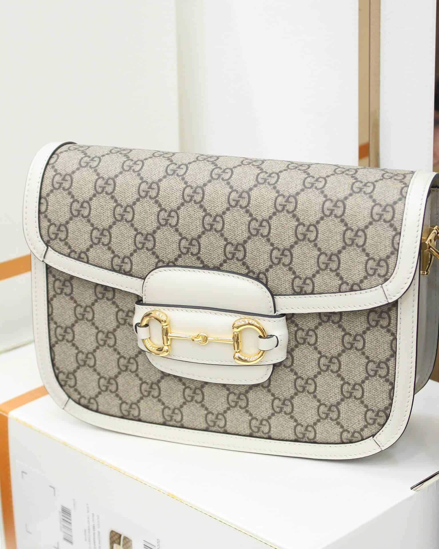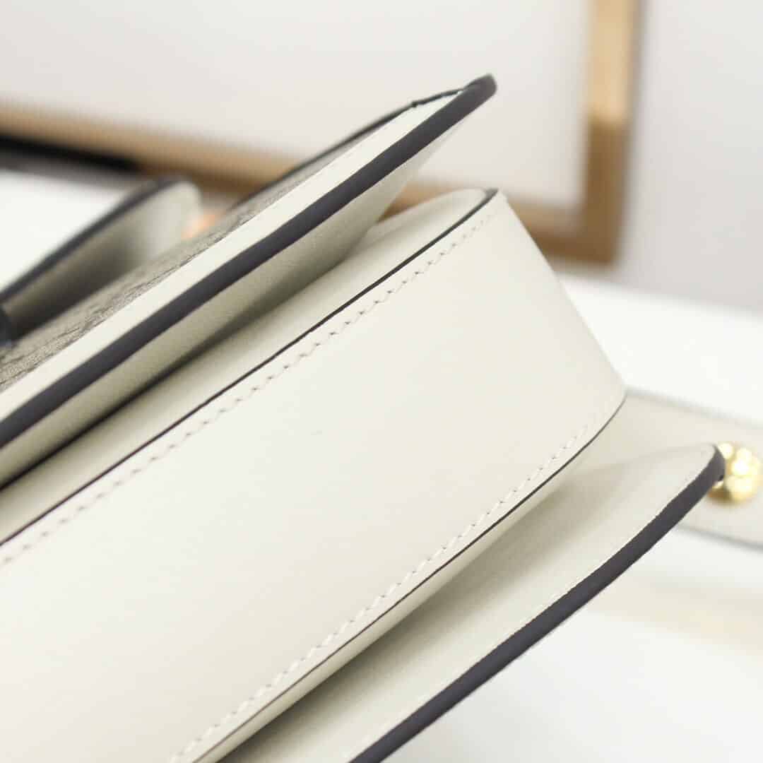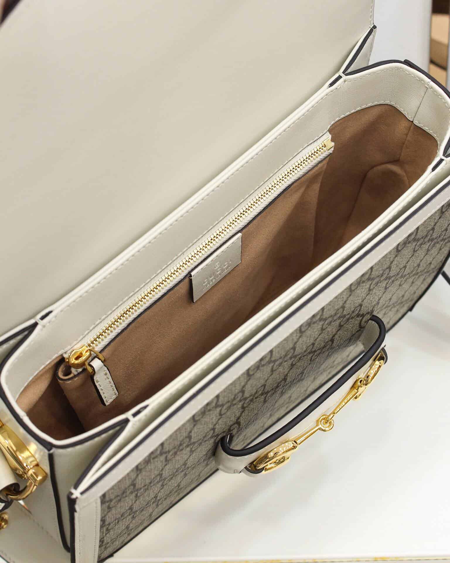 Gucci 1955马衔扣肩背包以新颖视角演绎经典设计,延用了六十余年前经典单品的线条与造型,将经典细节与现代精神巧妙融合,突显了马衔扣这一品牌标志性设计元素。作为Gucci的经典传承之一,这一由双环和长条形两个元素构成的设计图案从Gucci的马术本源汲取灵感,如今已经成为品牌十分耀眼的标志性元素之一。在这款小号翻盖肩背包上,这一配件与品牌标志性的双G字母交织图案织物材质相映成趣,同时配以可调节肩带,可在肩背和斜跨之间自由转换。