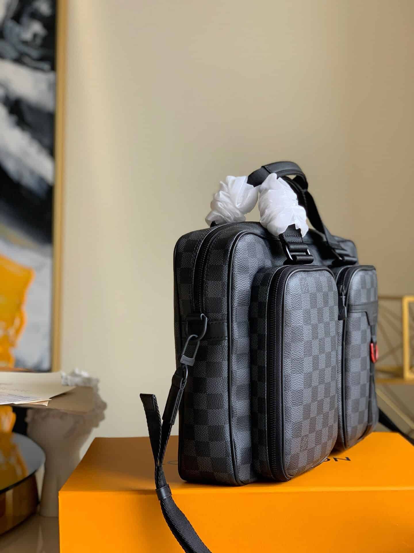 LV N40278 Damier Graphite黑格Utility公文包 2020年6月10日 18:38:55👜奢侈品评论1,596阅读模式 Utility 公文包融合 Damier Graphite 帆布、织物内衬和金属件,其拉链主隔层和侧袋可收纳笔记本电脑、iPad 和商务文件,可调节肩带配有皮革肩垫,与超宽手柄共同实现舒适背携。 36.0 x 27.5 x 6.0 cm (长 x 高 x 宽) Damier Graphite 涂层帆布 牛皮饰边 织物内衬 金属件 拉链封口 可调节皮革肩带 拉链主隔层 拉链外袋 内贴袋 点赞 登录收藏 https://www.paizishop.com/shepin/2020/06/10/30083.html 复制链接 复制链接