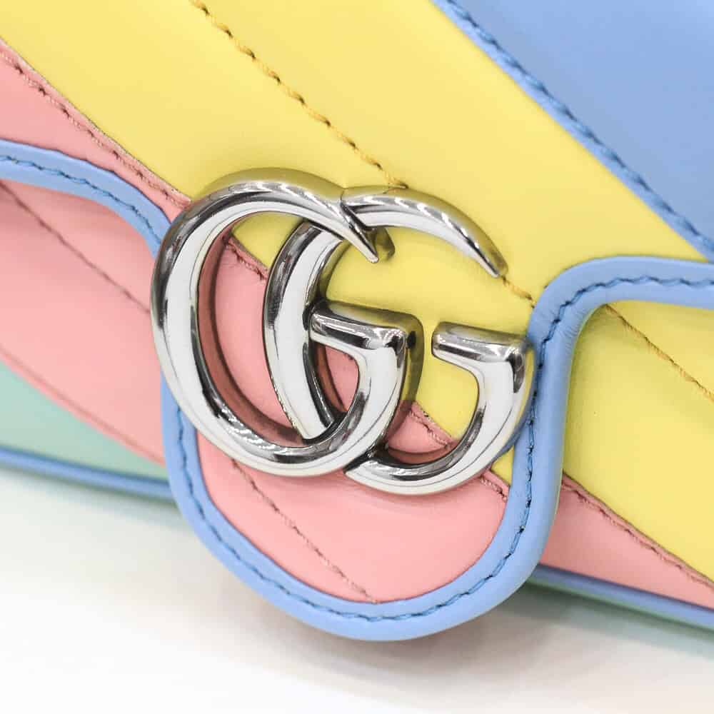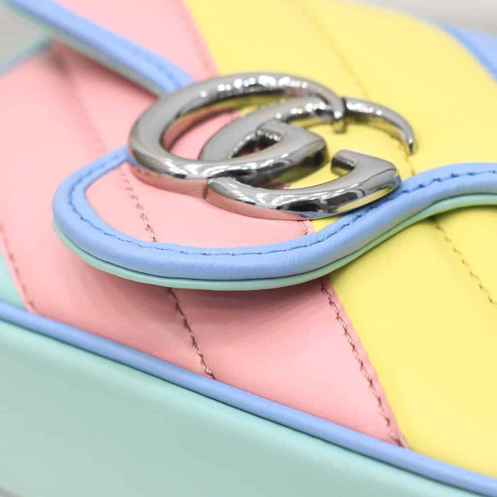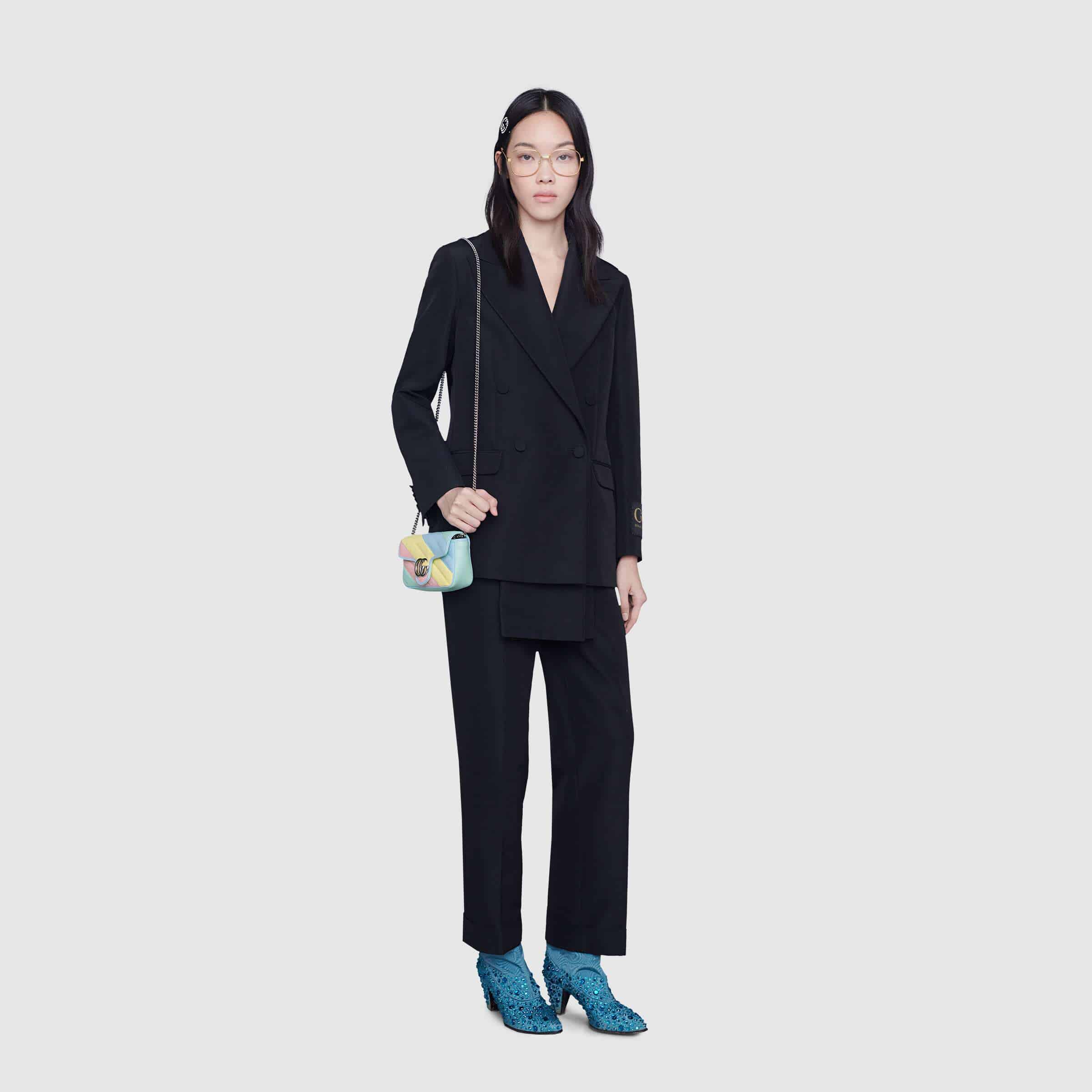 这款GG Marmont手袋以超迷你造型、柔和挺括质感及简约翻盖设计为亮点。如今已成为经典的双G图案是该系列的点睛之作,而这个极具立体感的装饰细节的灵感源自20世纪70年代的典藏设计。该手袋采用绗缝案皮革制作而成,整体所呈现的淡雅色彩以柔和而充满生气的色调贯穿于整个2020早秋系列。