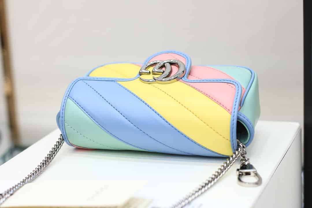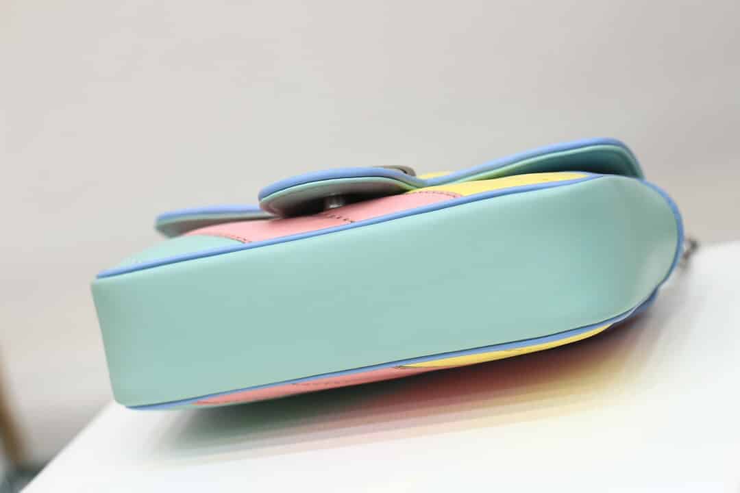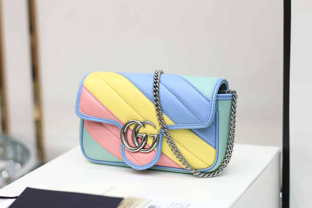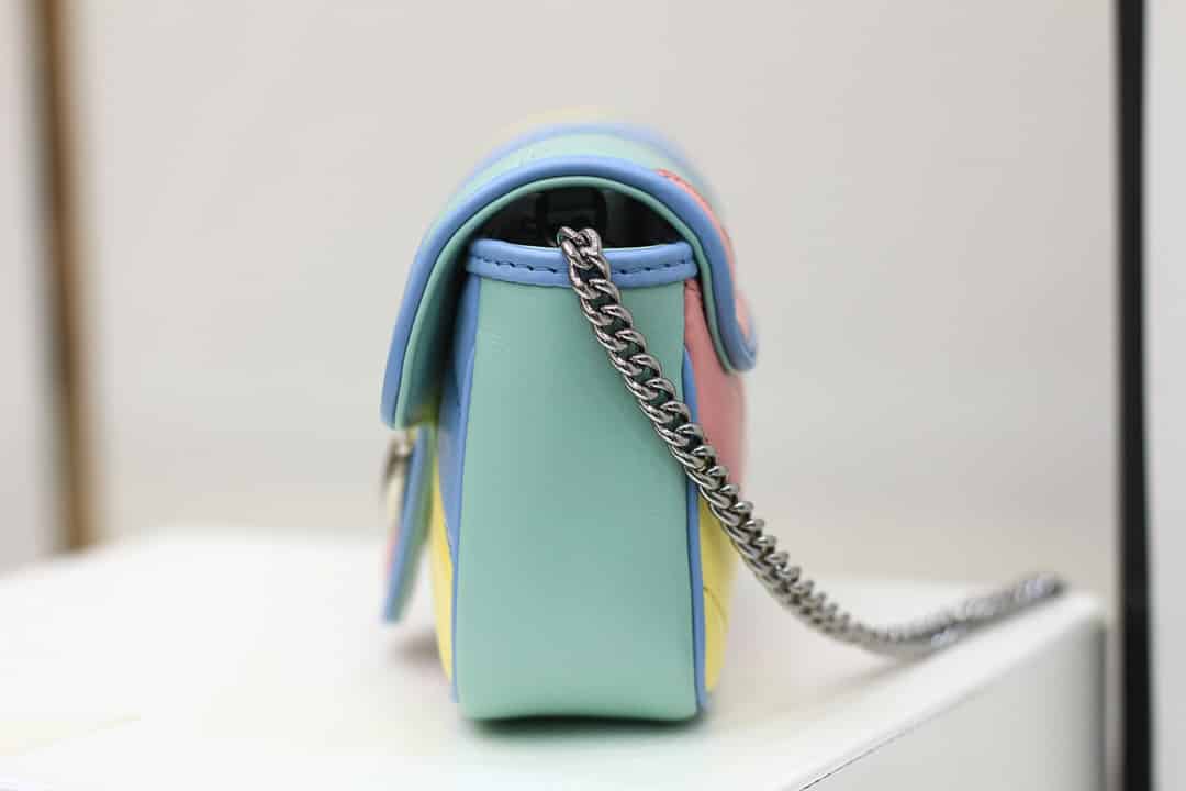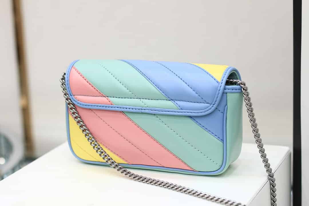 这款GG Marmont手袋以超迷你造型、柔和挺括质感及简约翻盖设计为亮点。如今已成为经典的双G图案是该系列的点睛之作,而这个极具立体感的装饰细节的灵感源自20世纪70年代的典藏设计。该手袋采用绗缝案皮革制作而成,整体所呈现的淡雅色彩以柔和而充满生气的色调贯穿于整个2020早秋系列。