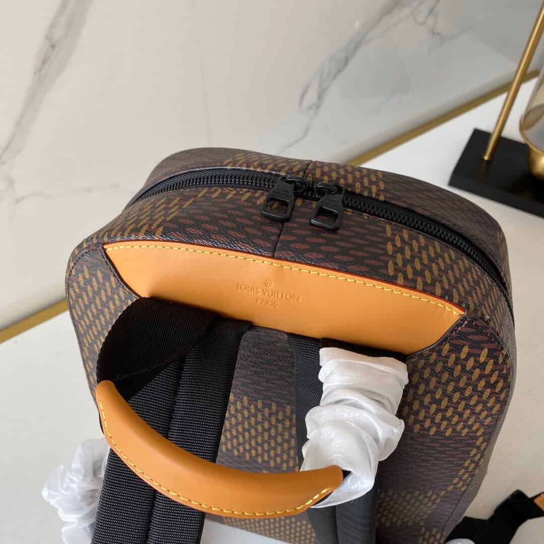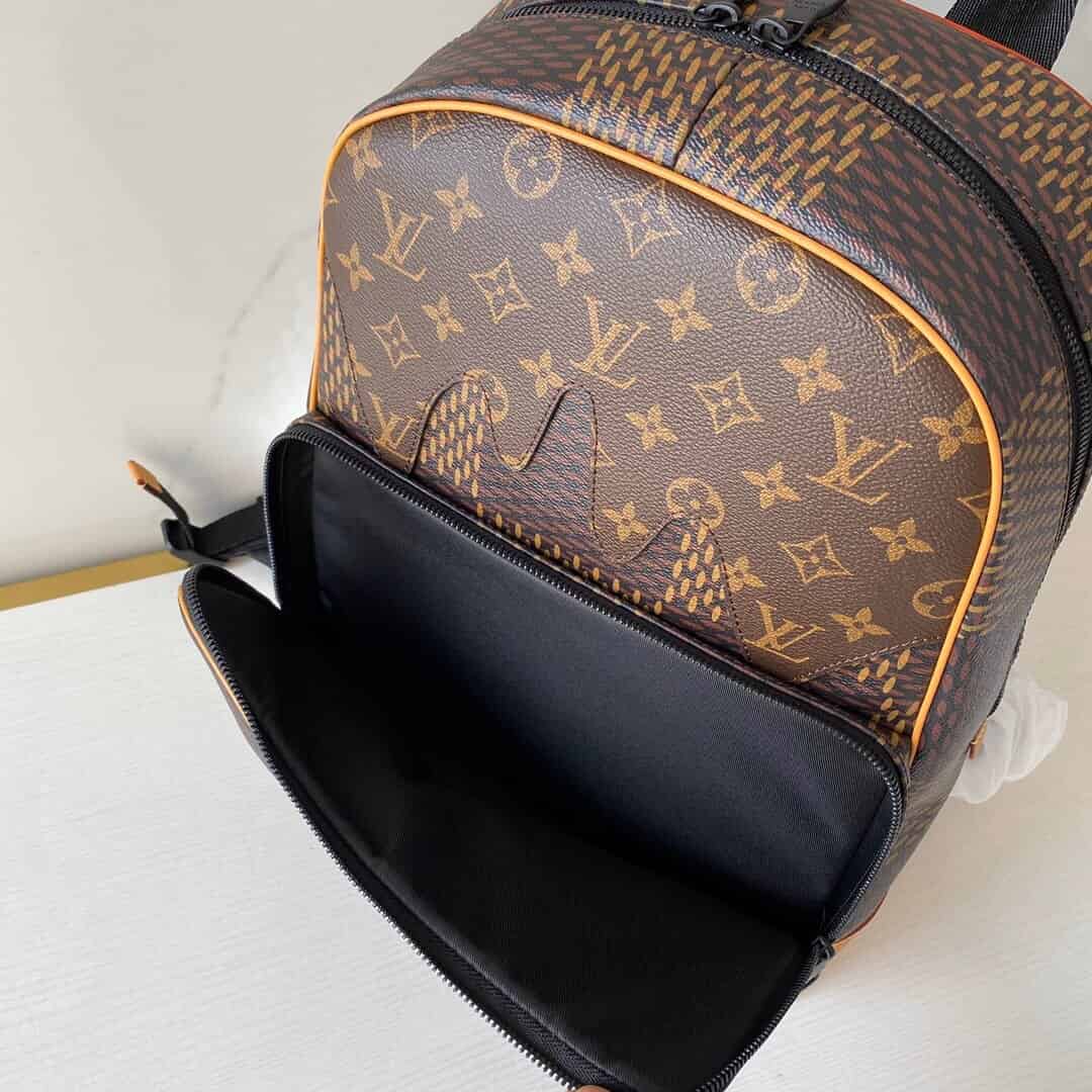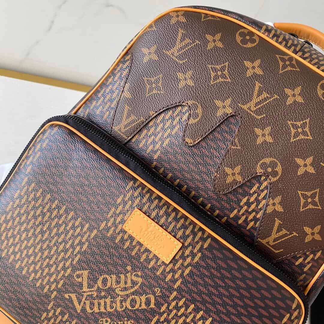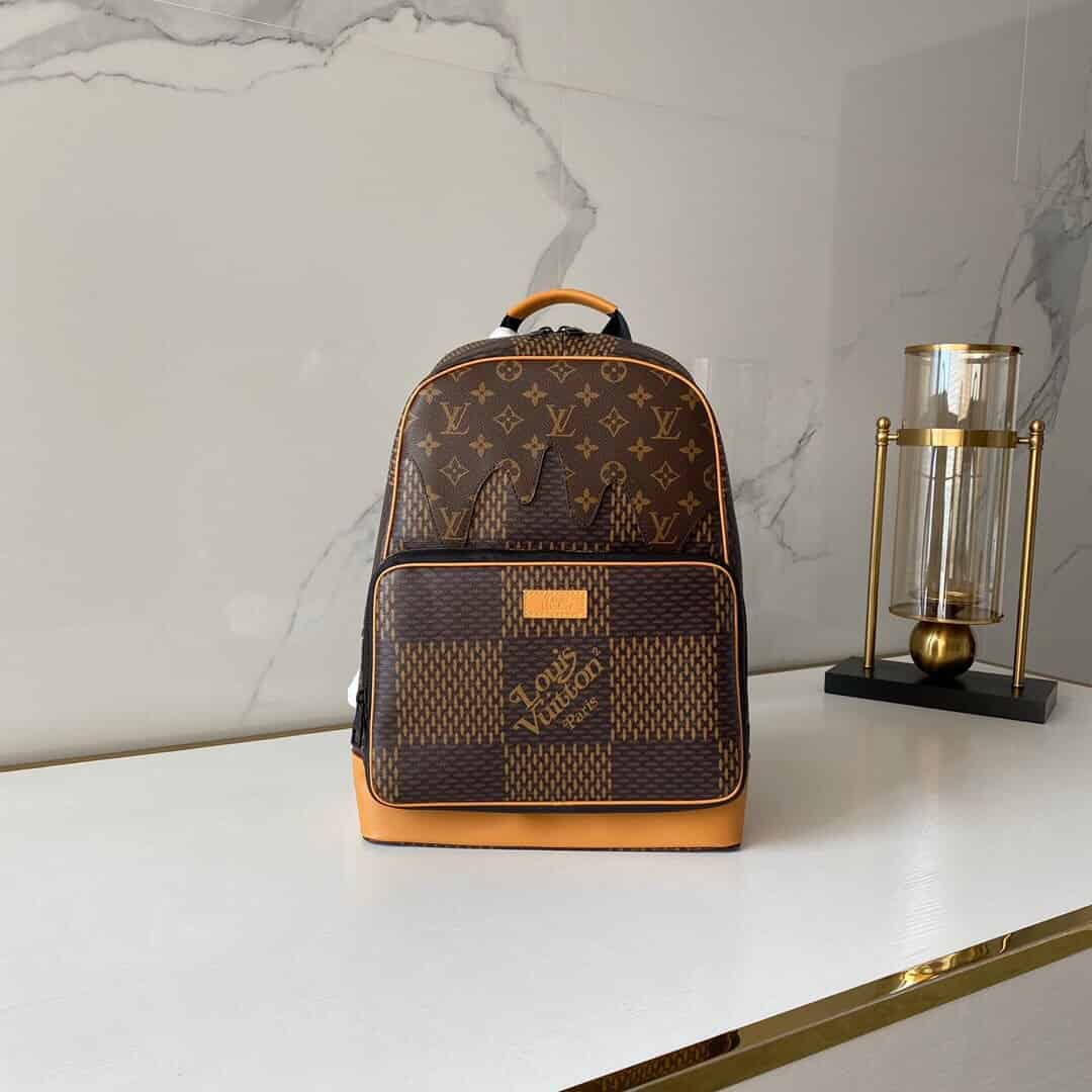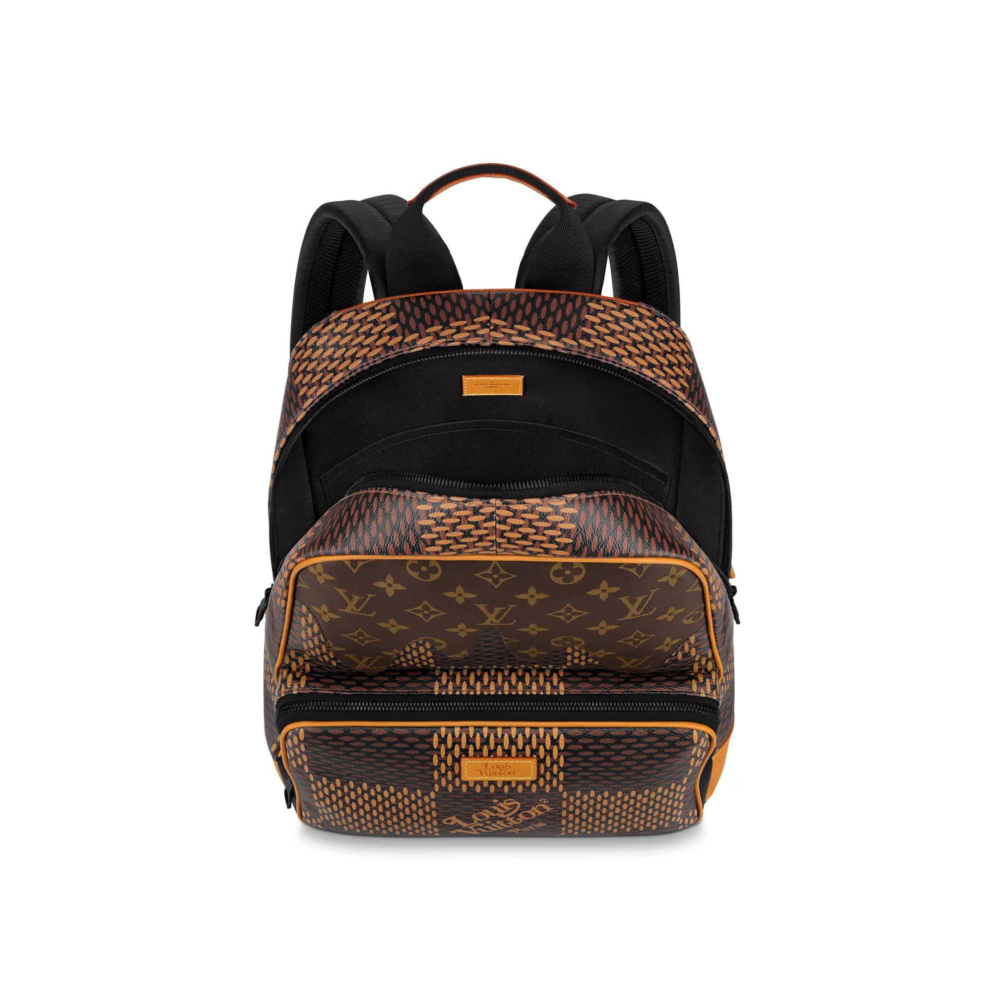Campus 双肩包出自 Virgil Abloh 与日本街头服饰大师 Nigo 的联名胶囊系列。Giant Damier Ebene 涂层帆布搭配天然皮革饰边和金属件,Monogram 帆布为前袋描绘 Nigo 标志性的波浪图案。