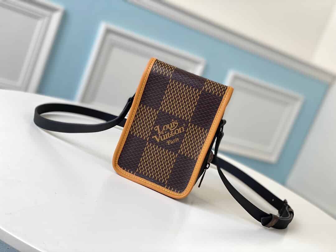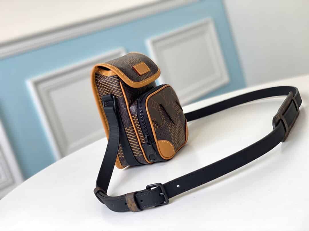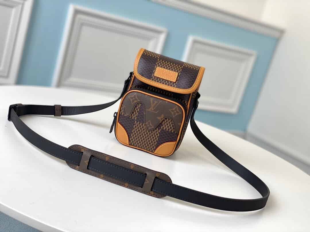 Virgil Abloh 携手多年挚友、街头服饰设计师 Nigo,向 1974 年问世的 Amazone 手袋采撷灵感,打造 Nano Amazone 邮差包。Giant Damier Ebene 帆布与 Monogram 帆布共筑波浪观感,拉链前袋可收纳随行小物。