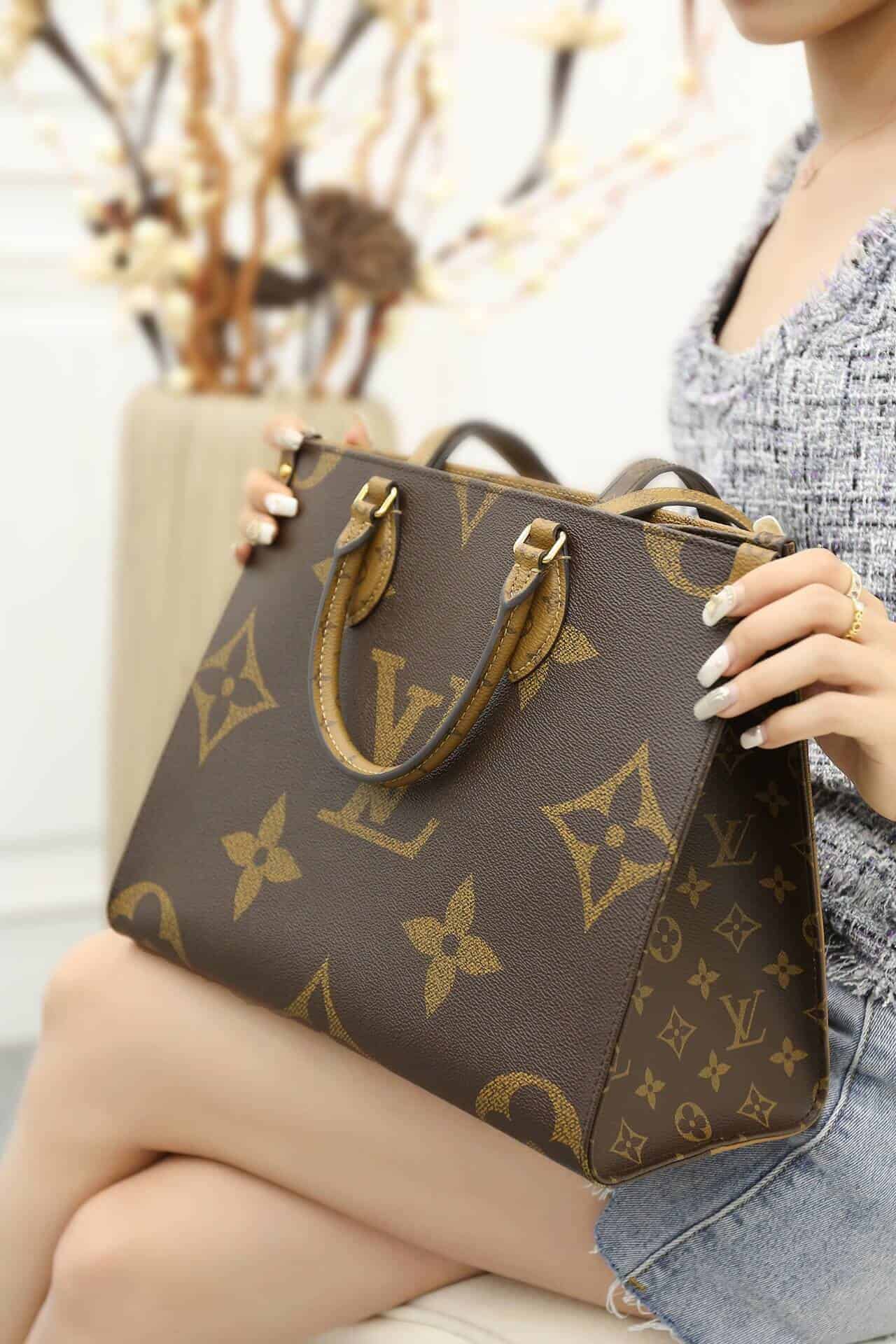 Onthego系列真的是俘虏了男女的购买欲,作为情侣款完全妥妥的,小号完全满足小个子对它的喜爱,三色面料搭配设计,让人感受到了视觉盛宴的震撼,上身效果简直给满分,我们独家拿到的法国原厂料,更是我们出品大货加分,无论是从外观上,颗粒感上,原料始终是原料,是市面上的任何国产料无法模仿的,搭配我们定制的纯钢五金,这款出品大货我敢说,我们相似度达到99%,一定要去专柜对比,能把一个出品大货做到这个级别,我们十分骄傲!!