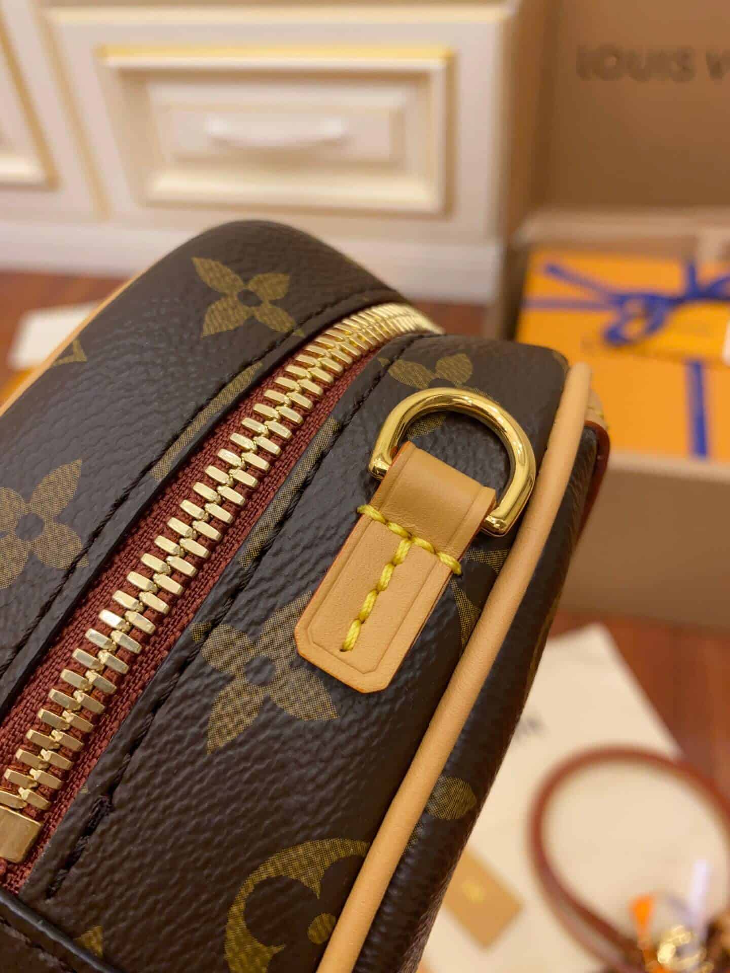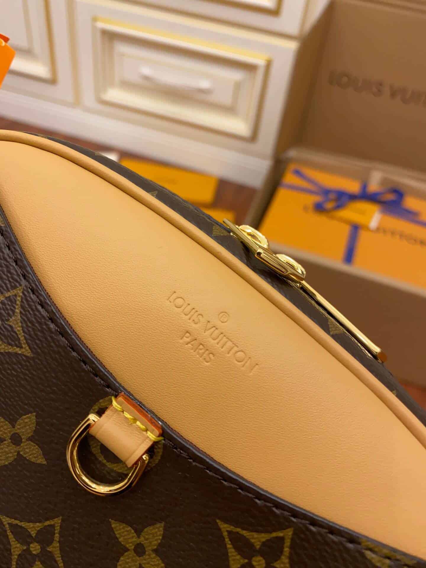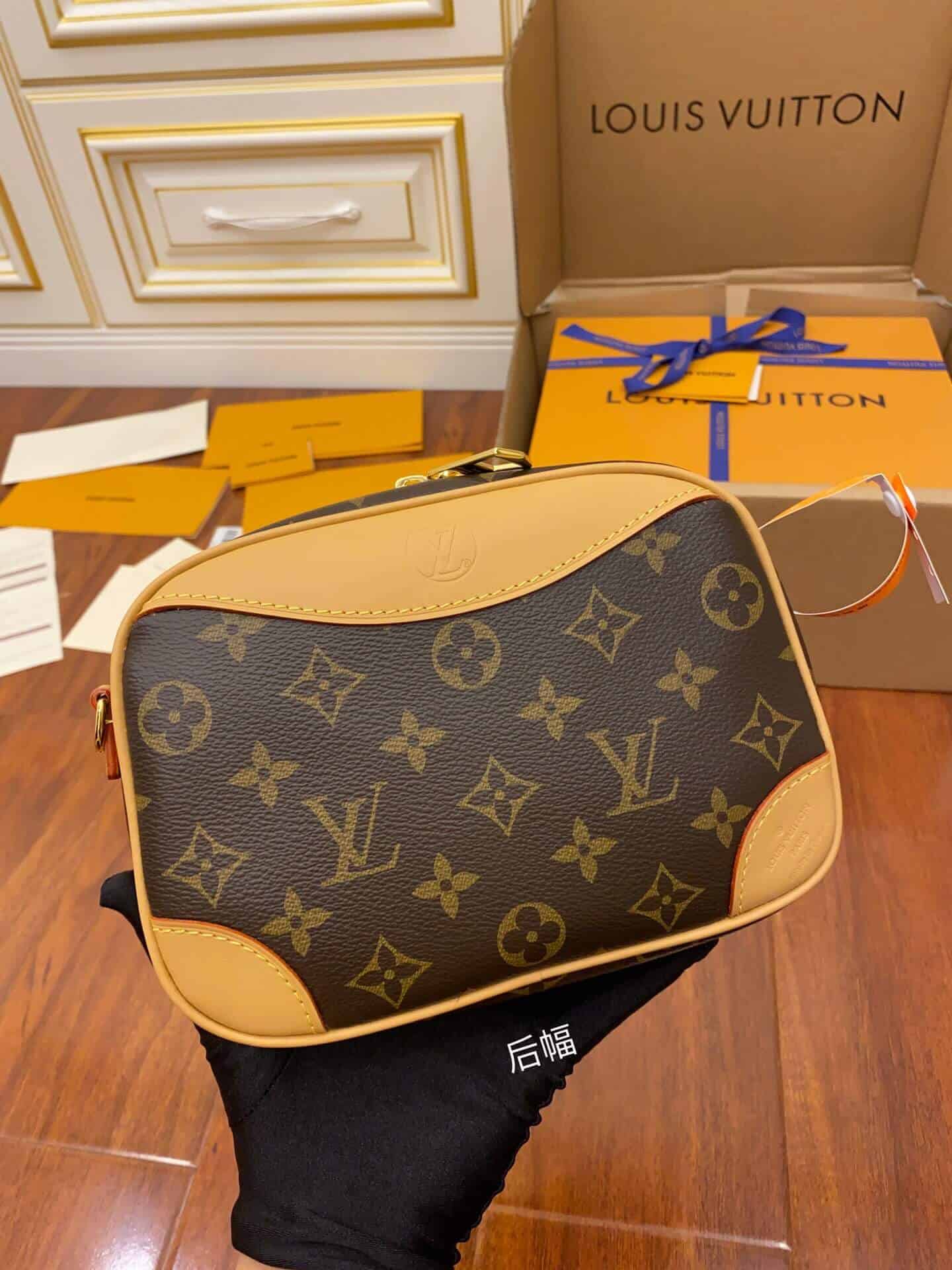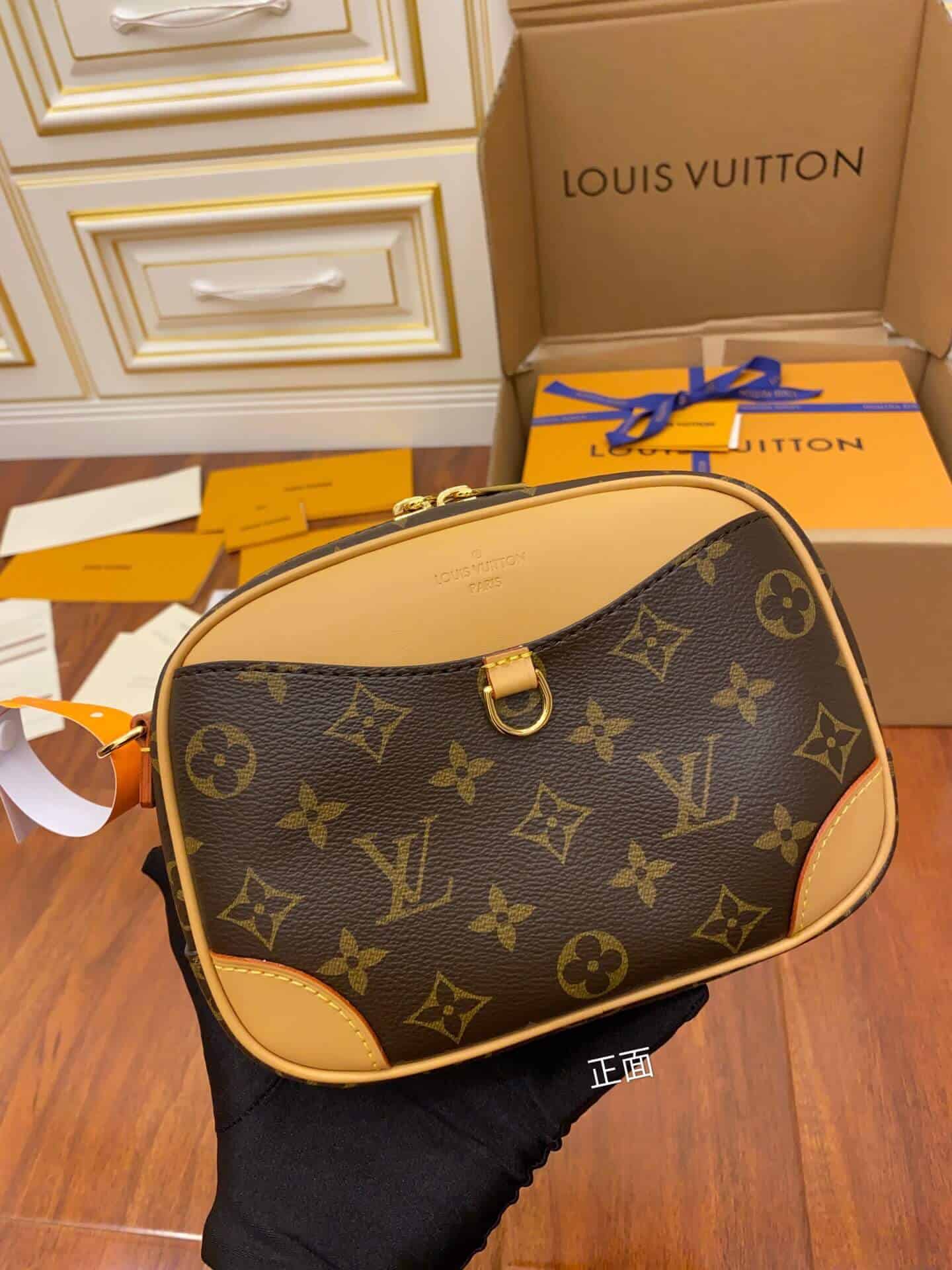 Nicolas Ghesquière 于 2020 秋冬推出 Deauville 迷你手袋,展现经典 Deauville 手袋的袖珍版本。Monogram 帆布和天然皮革饰边打造紧凑轻盈的相机包构型,搭配可调节皮革肩带,无论肩背斜挎均可流露复古韵味。