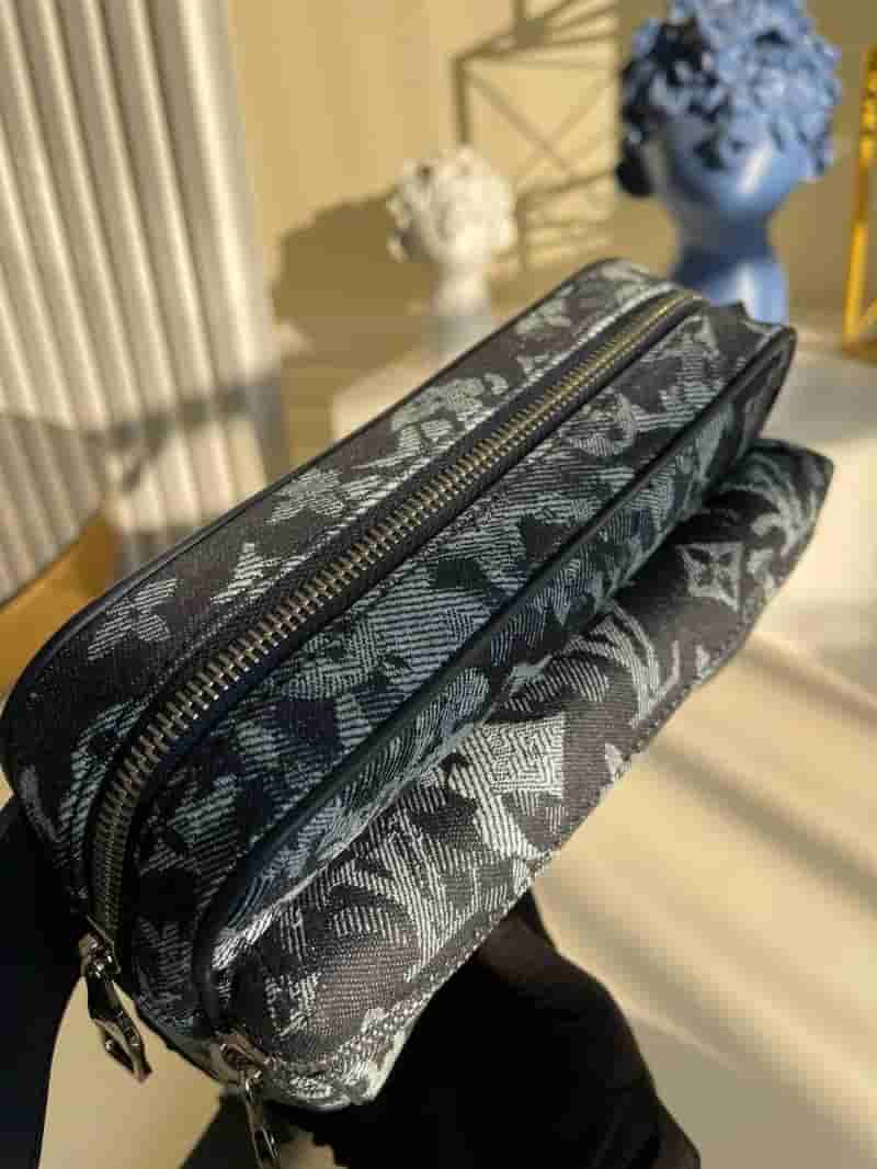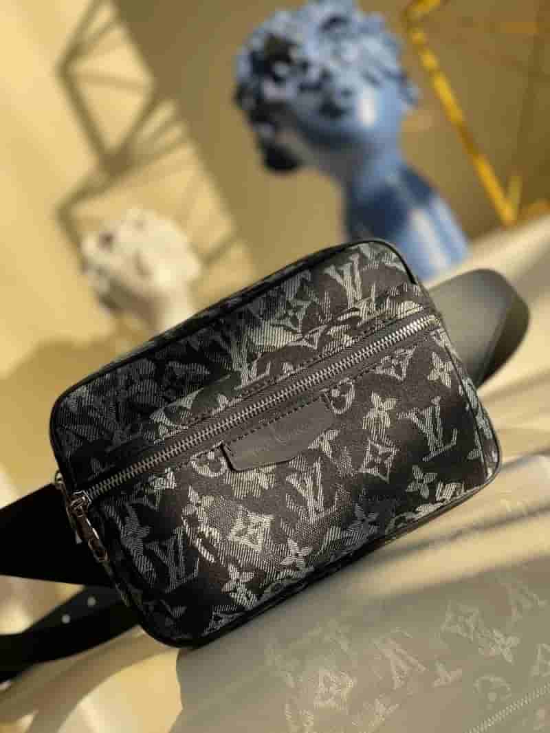 Outdoor 腰包取材 Monogram Tapestry 帆布,展现 Virgil Abloh 对经典 Monogram 图案新颖诠释。中央拉链隔层和前袋稳妥存放日常所需,可调节腰带方便系于腰间或胯部,解放双手跃入动感生活。